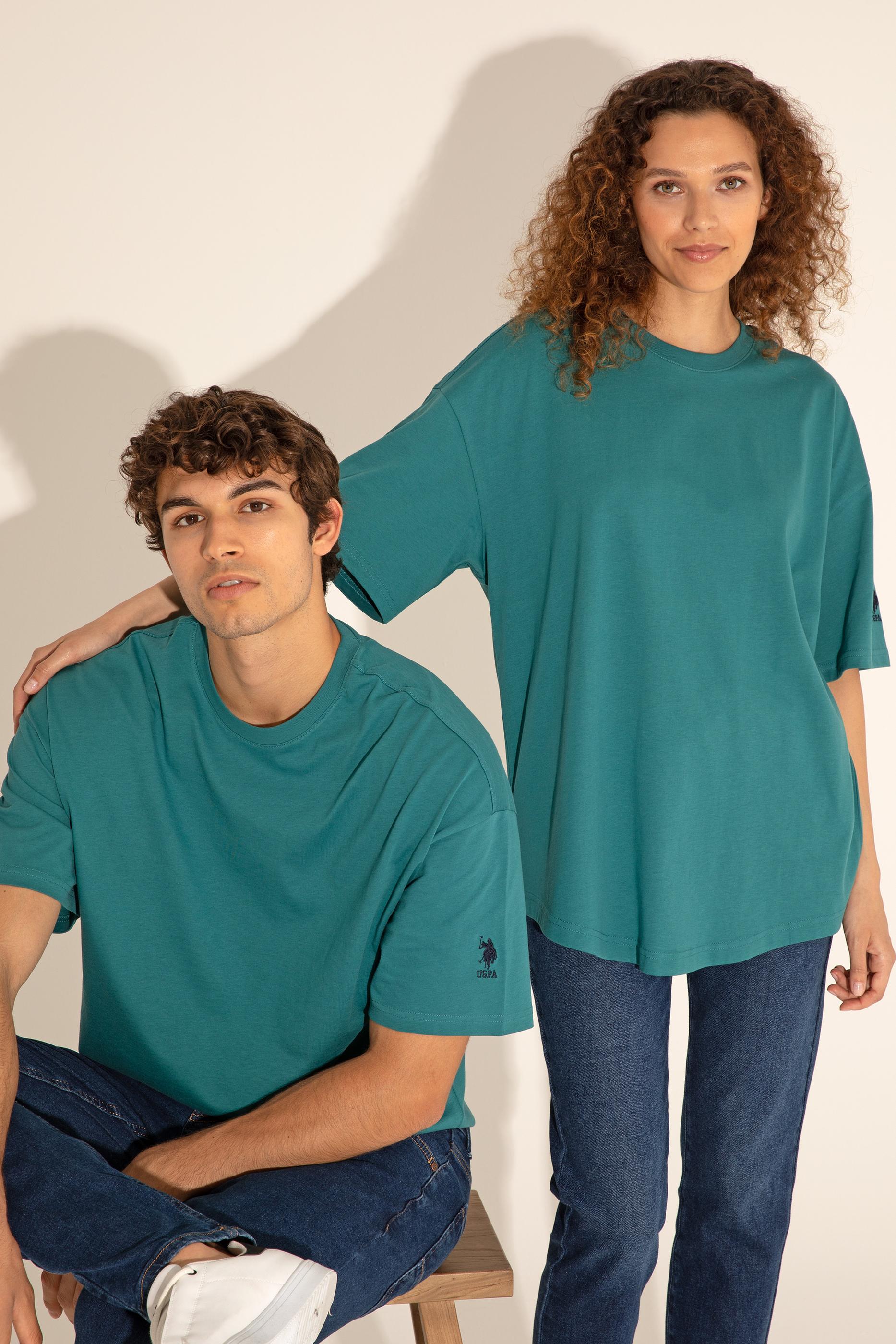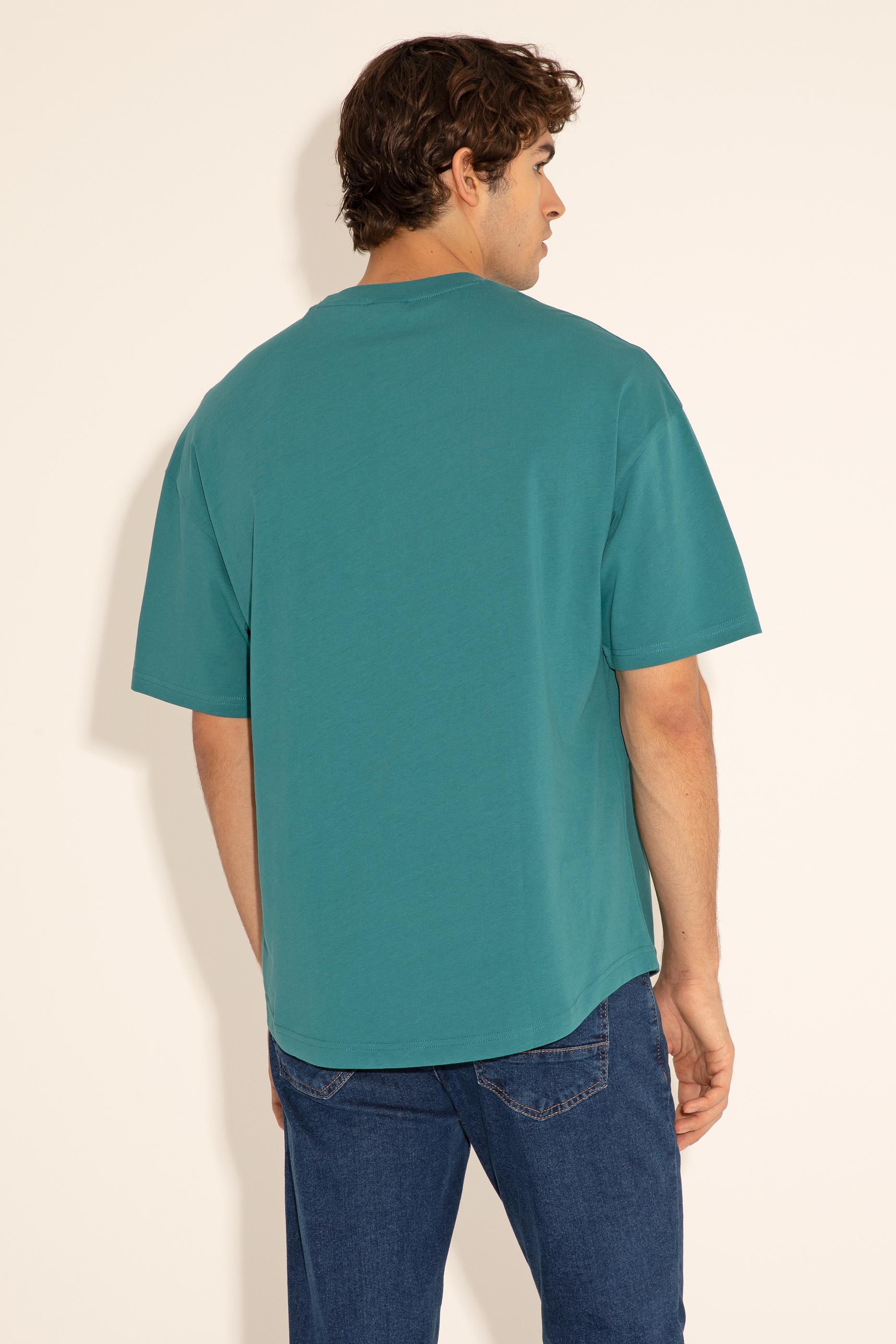 Koyu Yeşil Bisiklet Yaka Long Fit Tişört