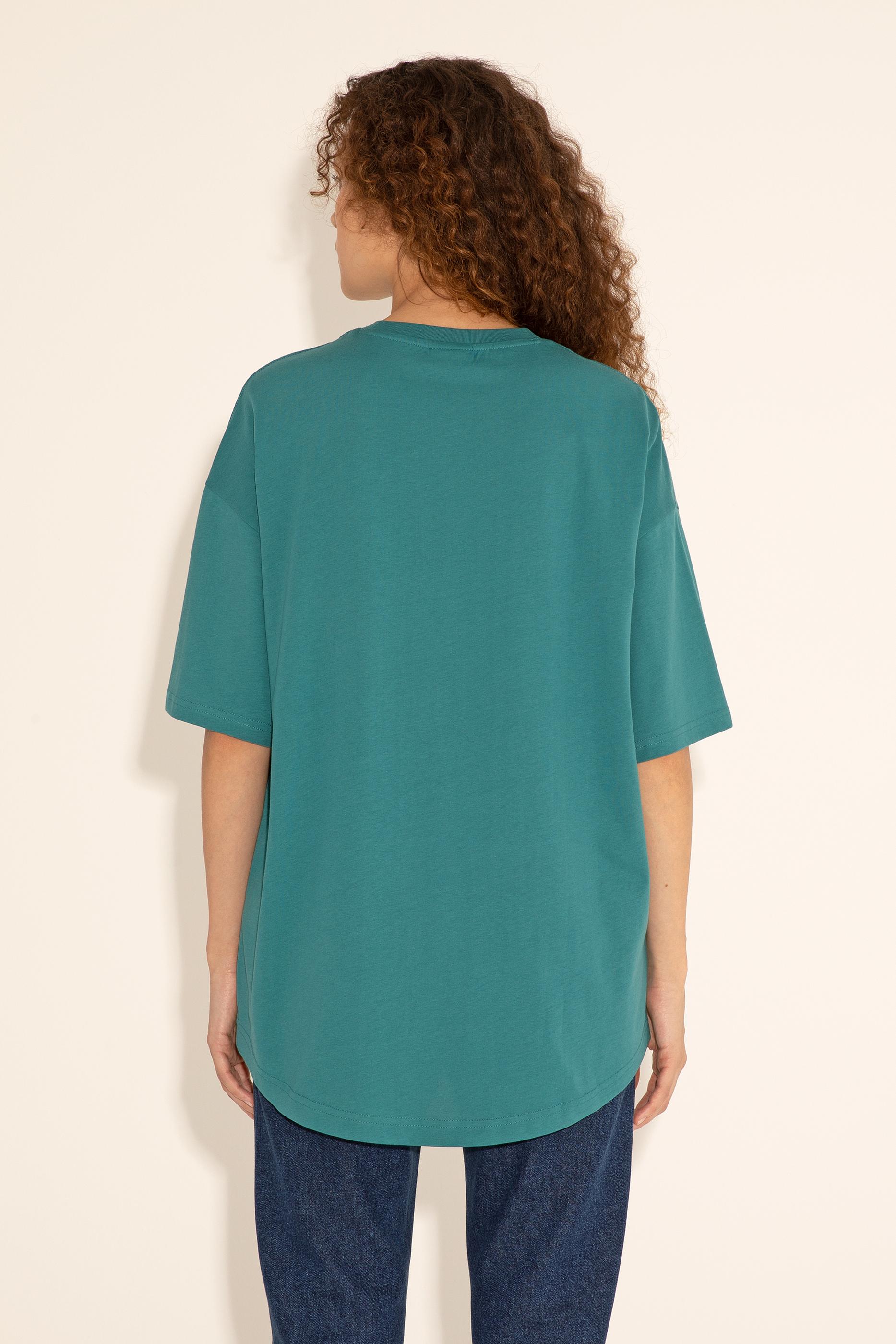 - Koyu Yeşil Bisiklet Yaka Long Fit Tişört