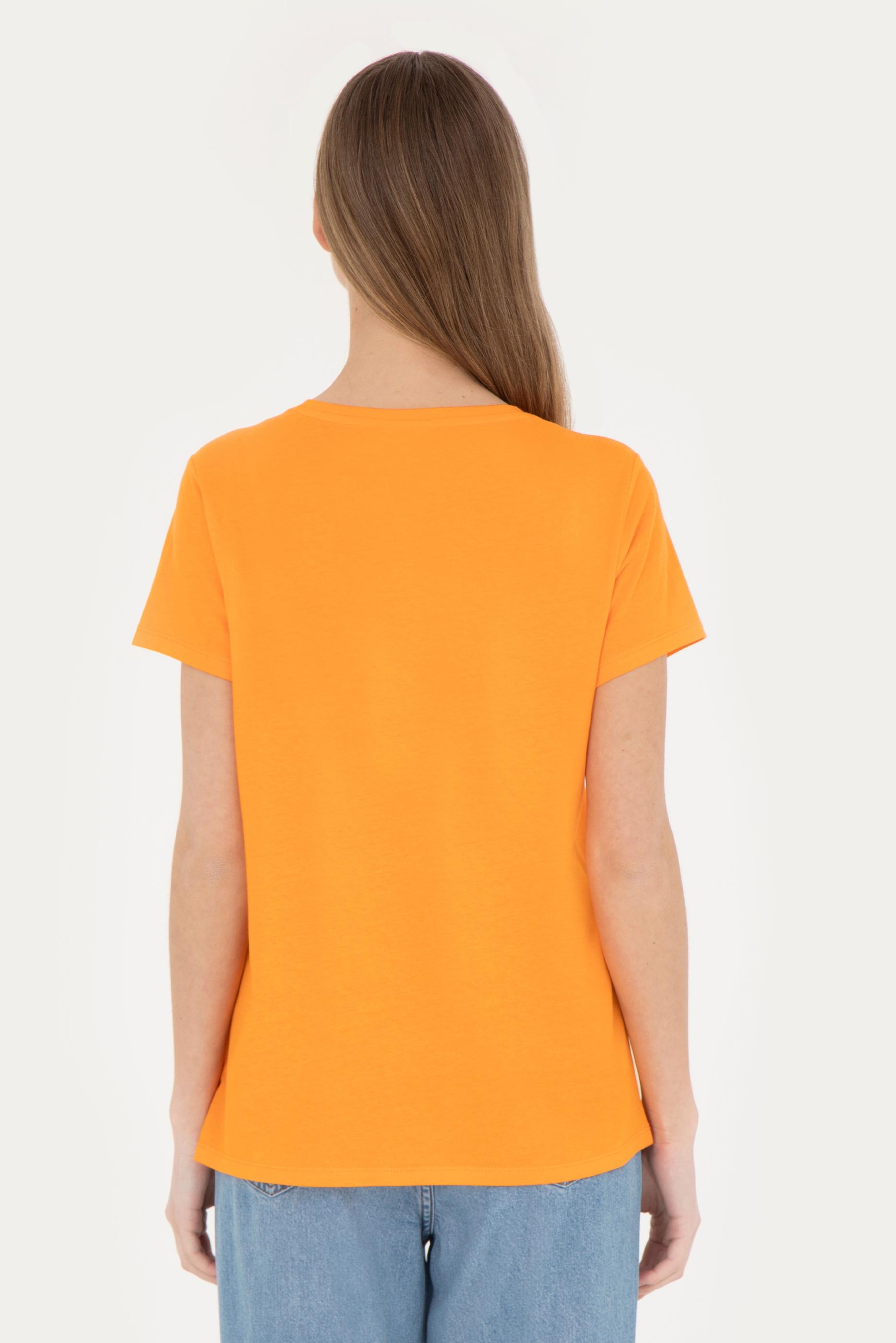 Kadın Turuncu Bisiklet Yaka Tişört