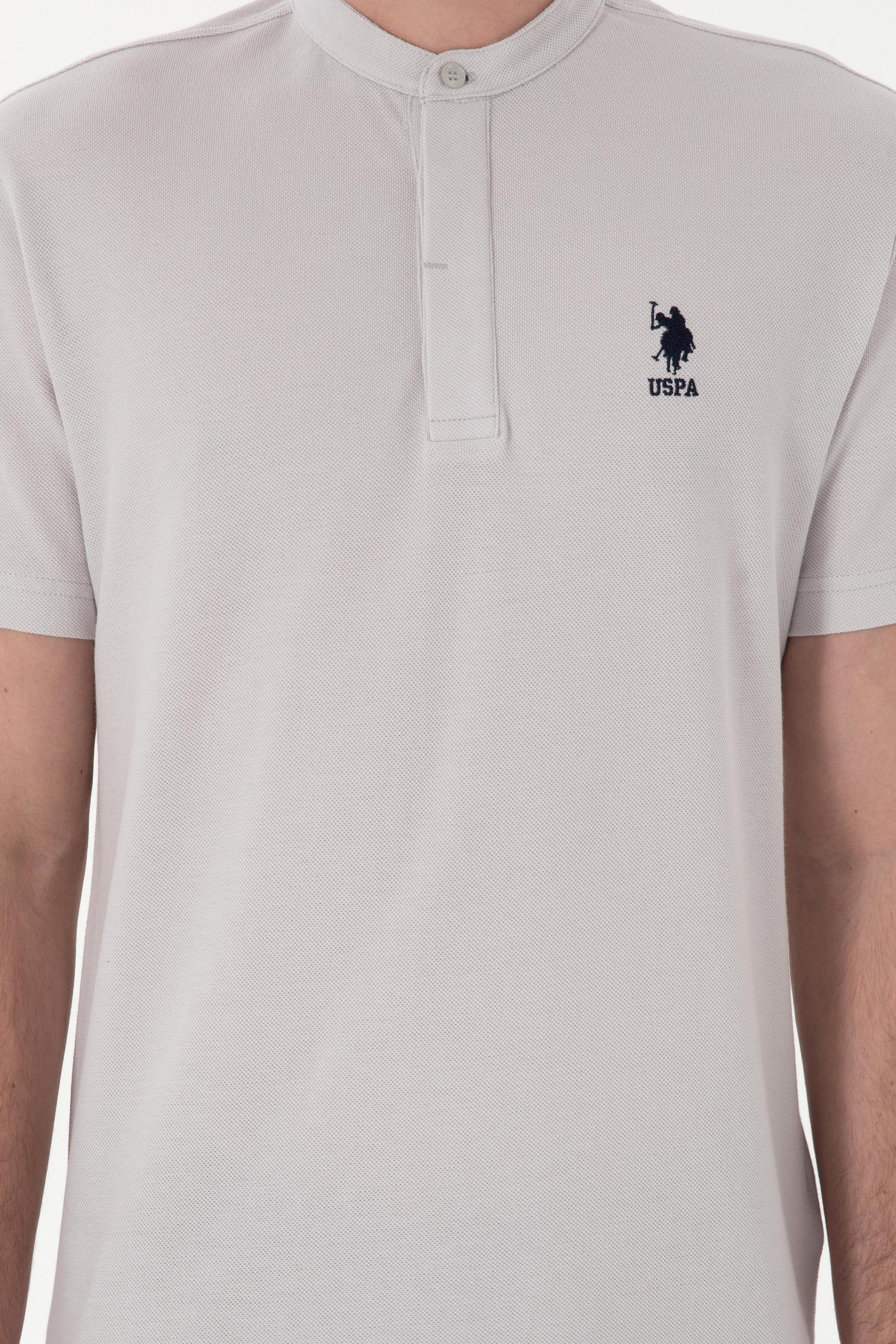 Erkek Regular Fit Hakim Yaka Açık Gri Tişört