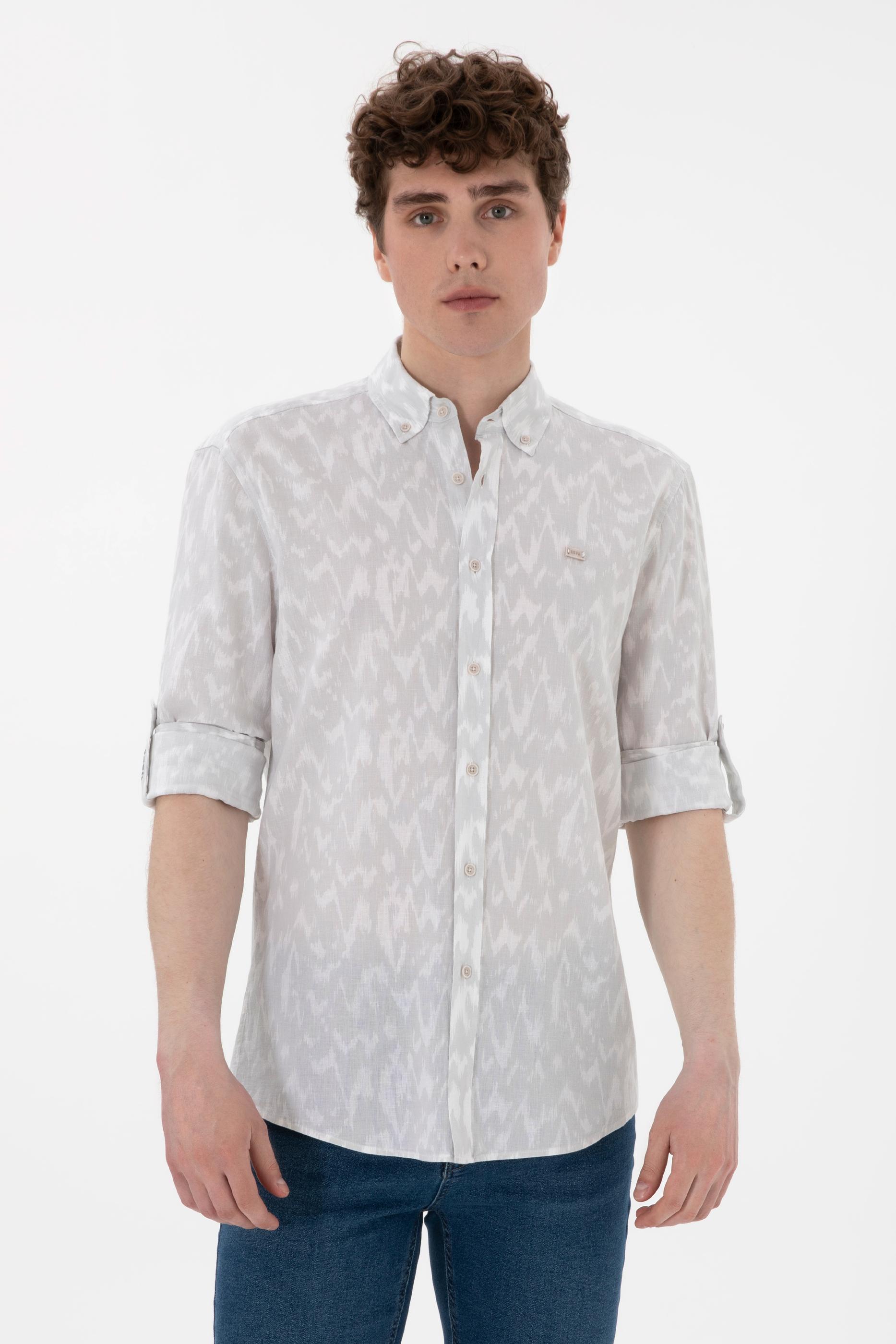 Erkek Açık Gri Uzun Kollu Gömlek