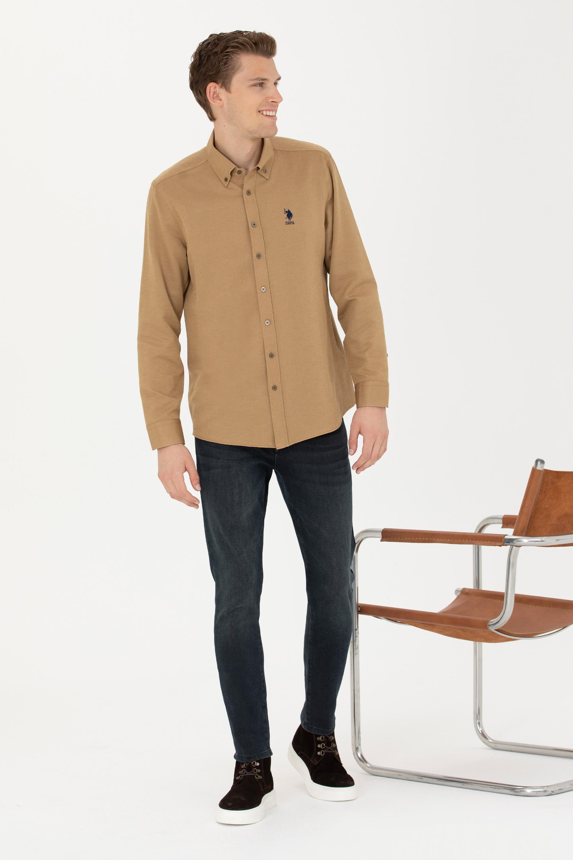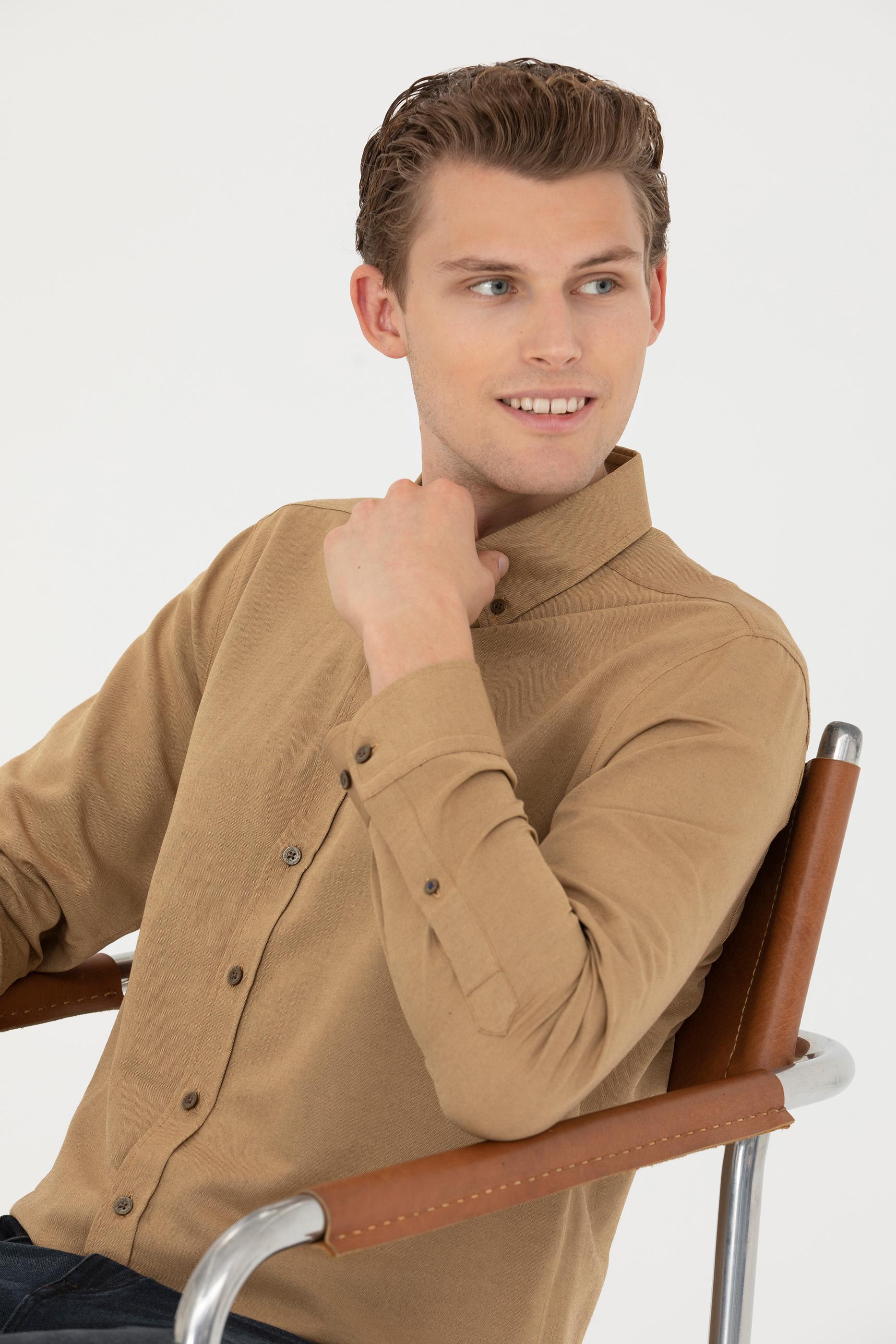 Erkek Açık Haki Uzun Kollu Basic Gömlek