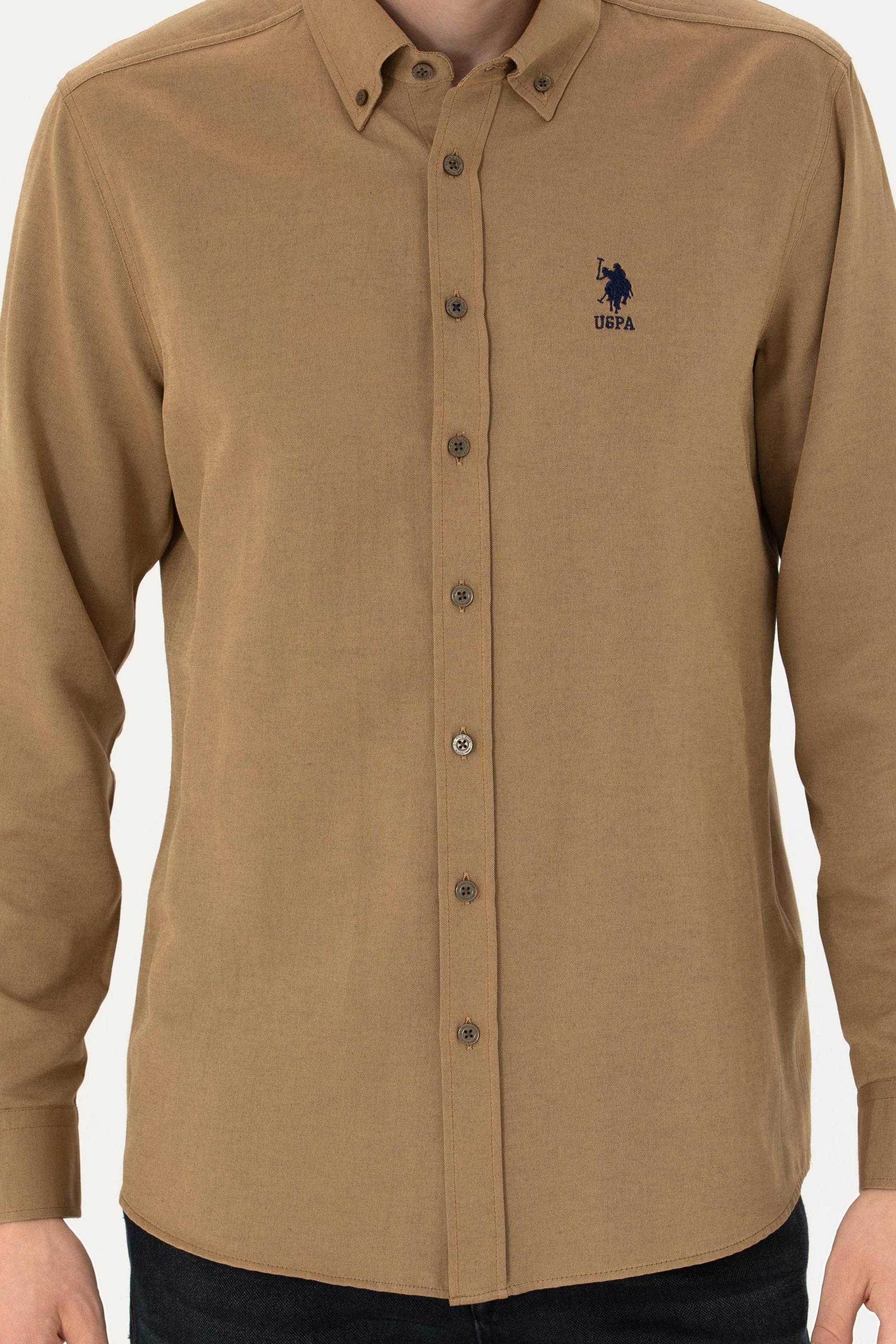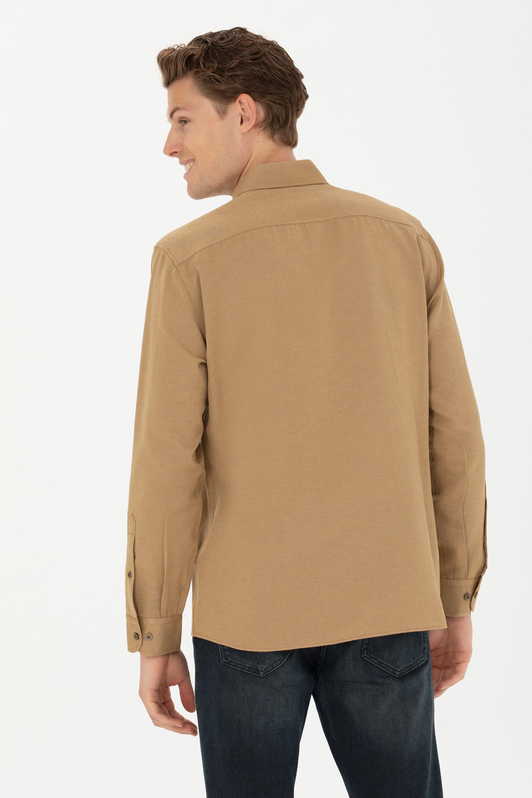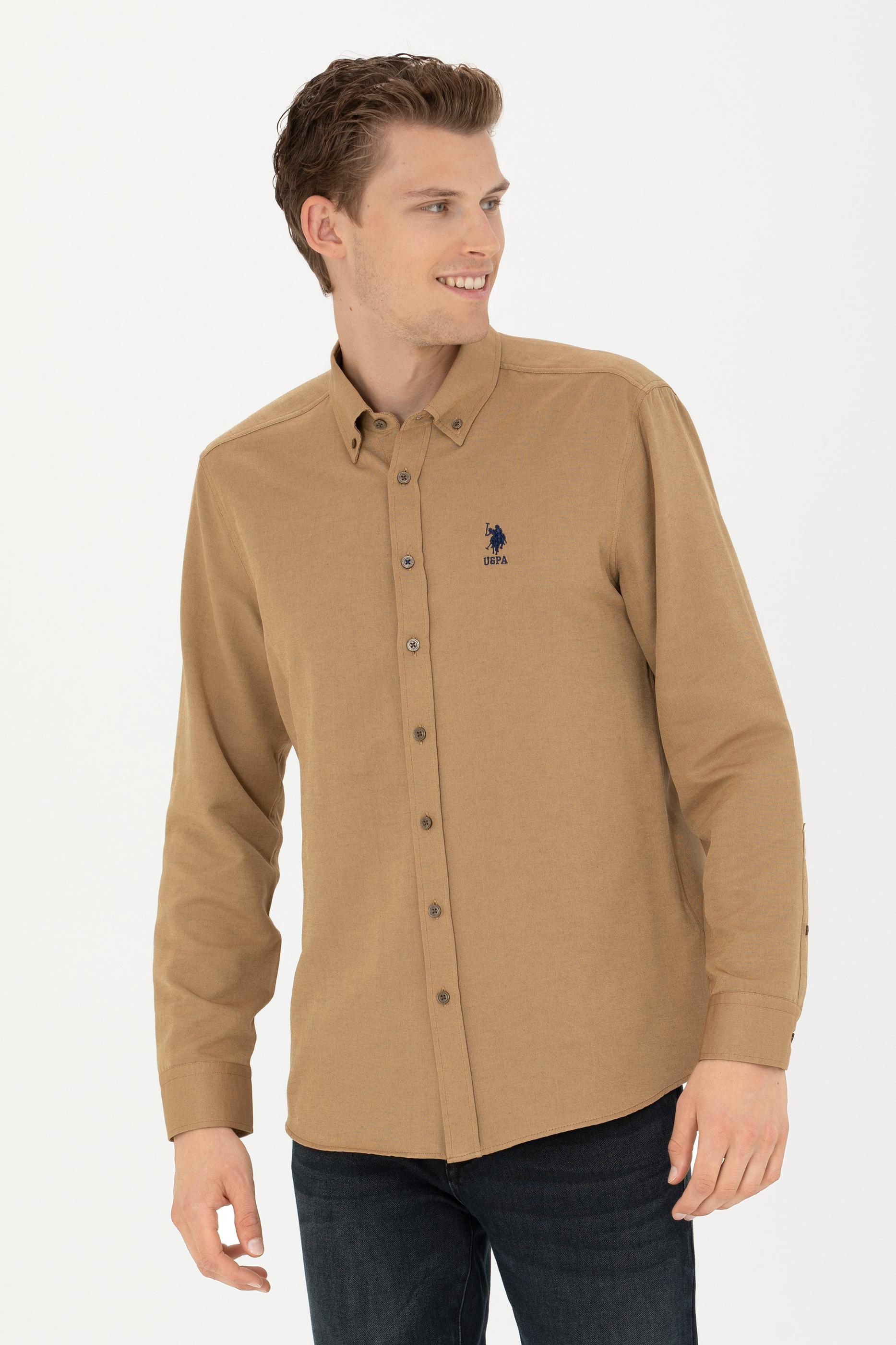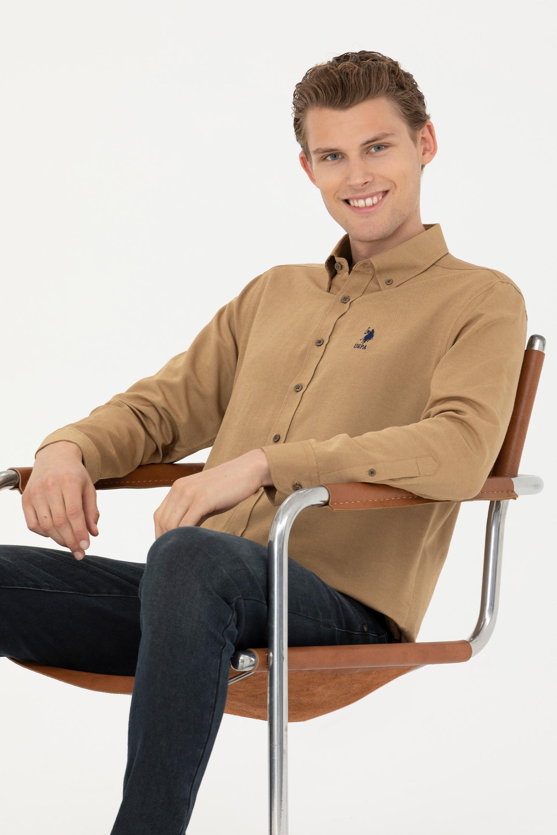 - Erkek Açık Haki Uzun Kollu Basic Gömlek