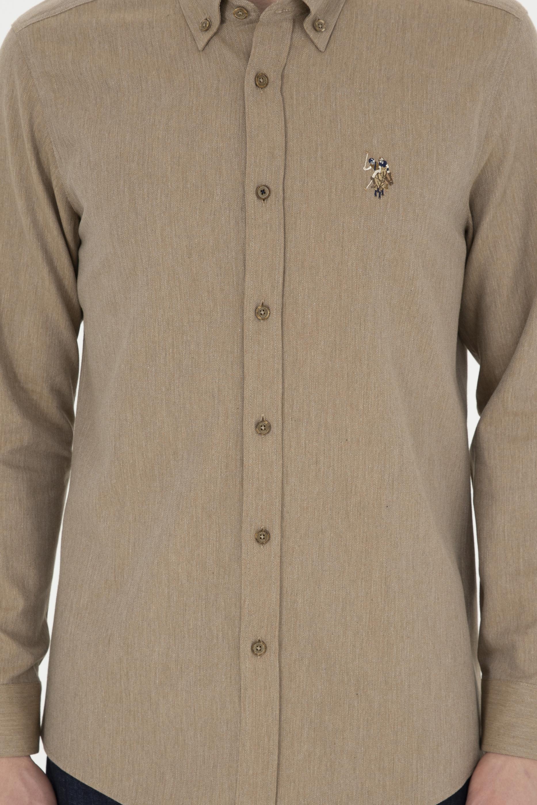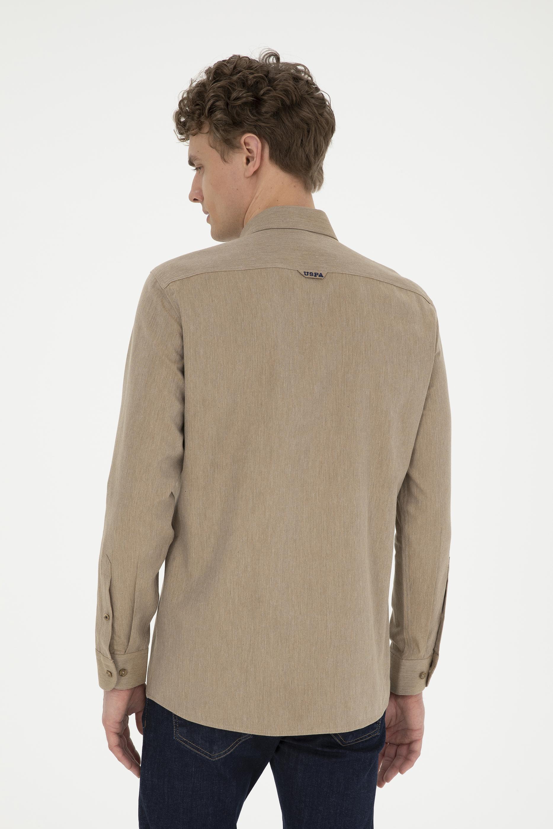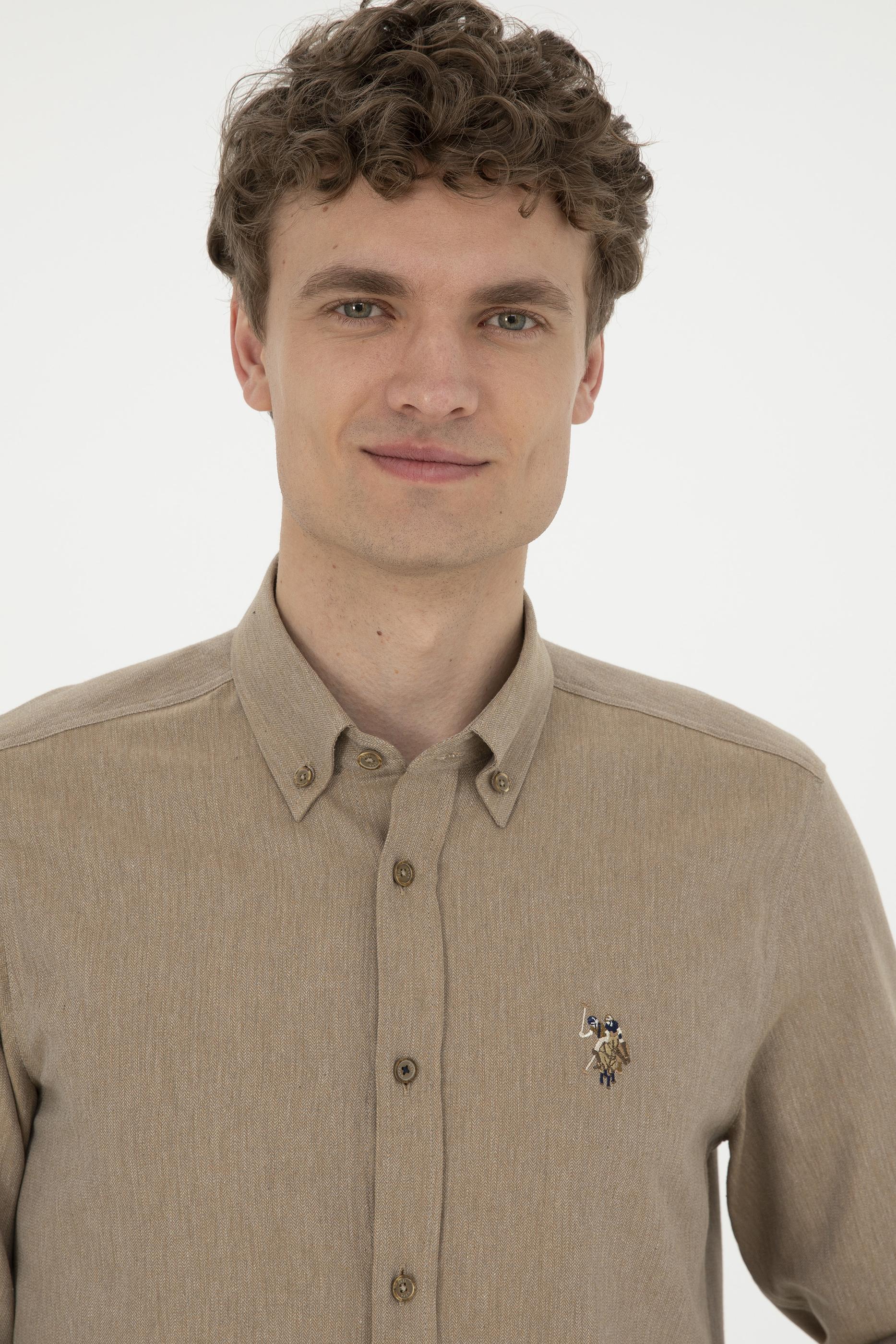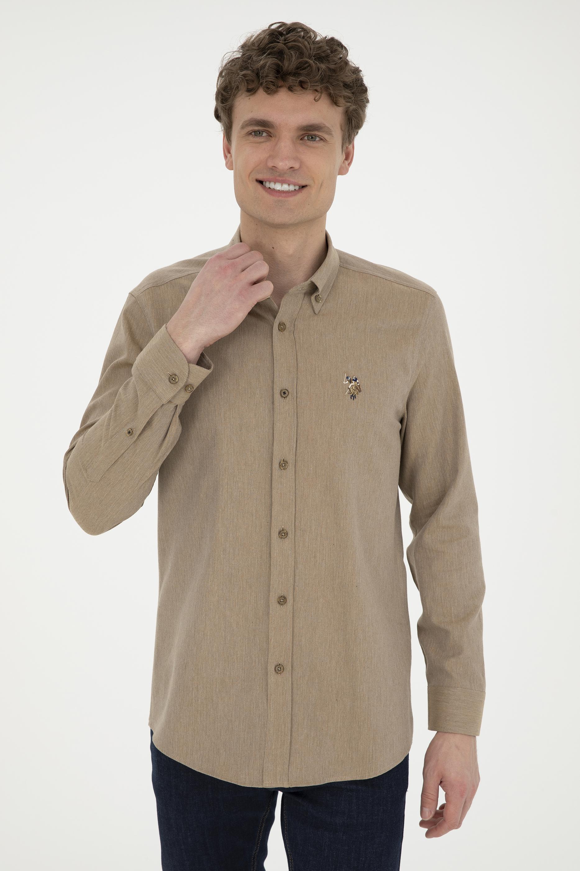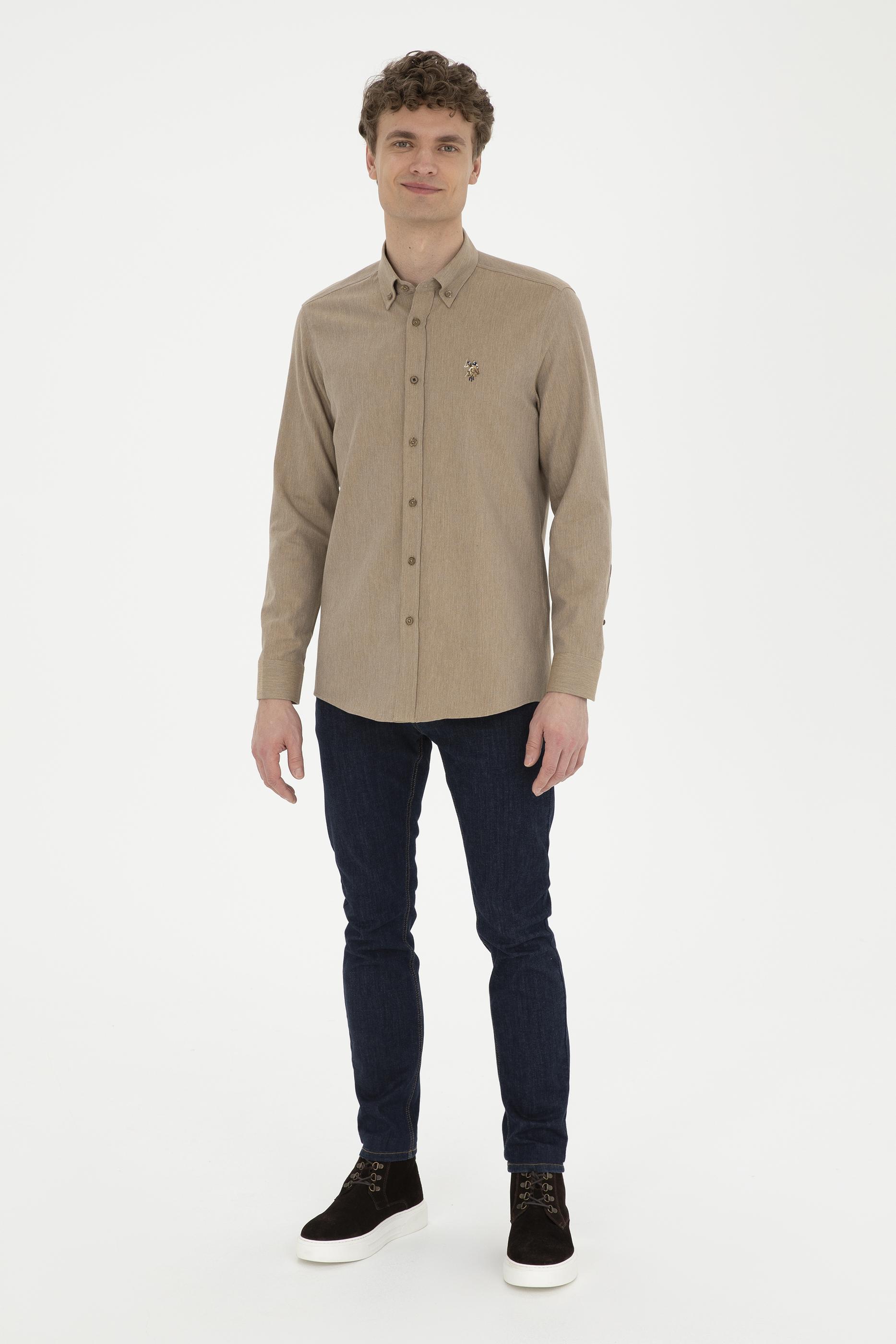 Erkek Açık Haki Uzun Kollu Basic Gömlek