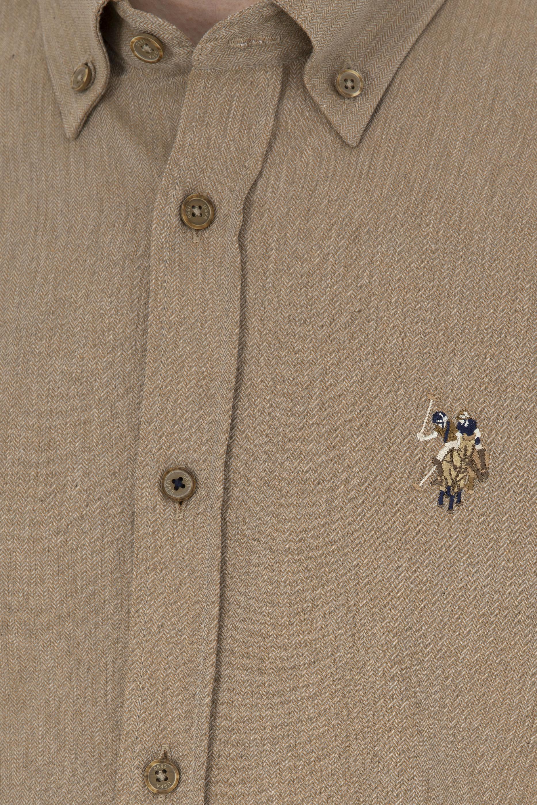 - Erkek Açık Haki Uzun Kollu Basic Gömlek