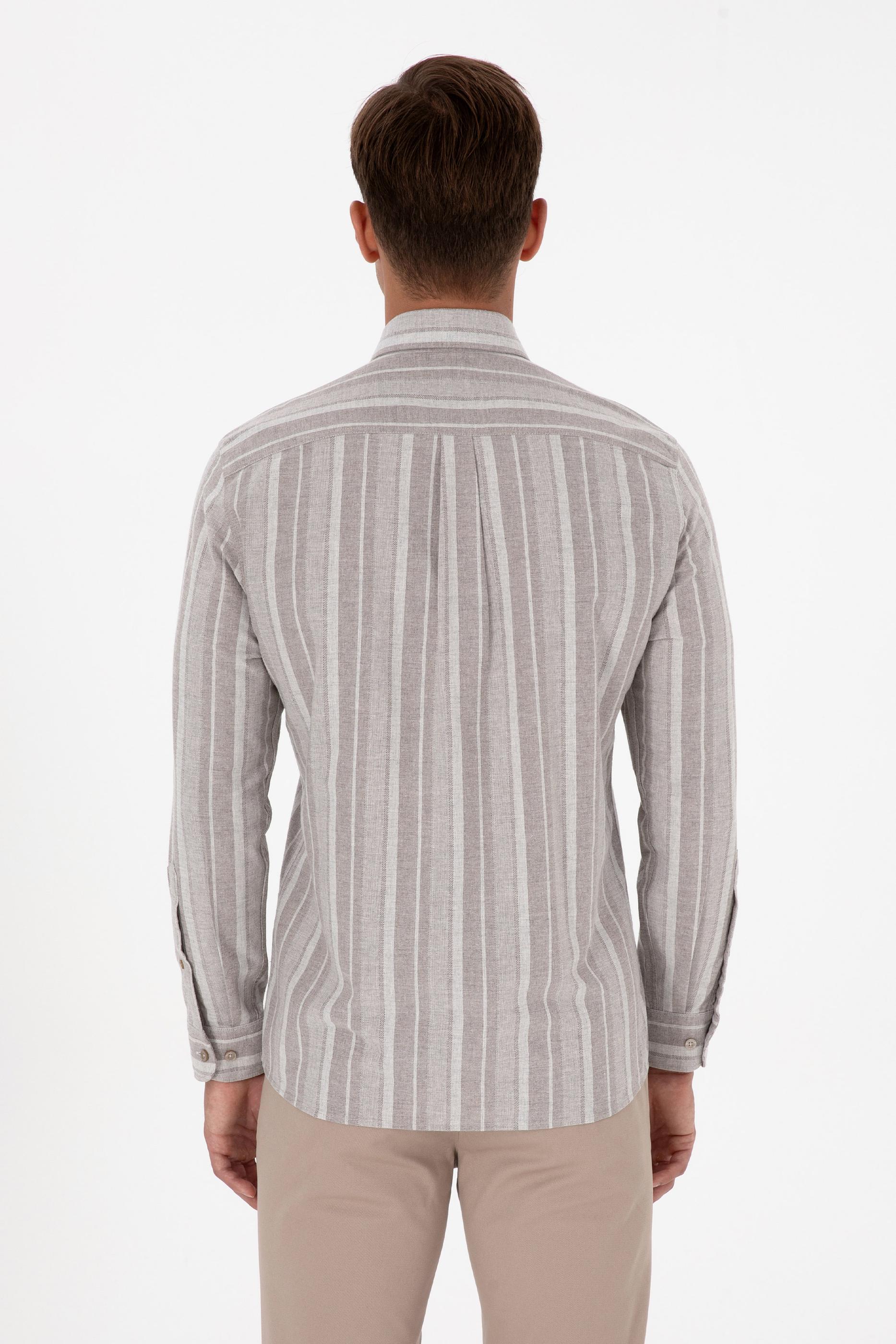 Erkek gömlek, açık kahverengi tonları ve çizgili deseniyle modern bir görünüm sunar. Regular fit kalıbı vücudu sıkmadan rahat bir oturuş sağlar, gün boyu konforlu bir kullanım imkânı verir. Uzun kollu tasarımı klasik bir şıklık kazandırırken, polo yaka detayı modele zarif bir hava katar. Düğmeli kapama sistemi pratik kullanım sağlarken, çizgili deseni gömleğe dinamik ve dikkat çekici bir stil kazandırır. Jean ve chino pantolonlarla kombinlenerek günlük şıklık elde edilebilir, klasik pantolonlarla ise ofis ya da özel davetlerde kullanılabilir. Zamansız tasarımı sayesinde farklı mevsimlerde tercih edilebilecek, gardırobun öne çıkan parçalarından biridir.