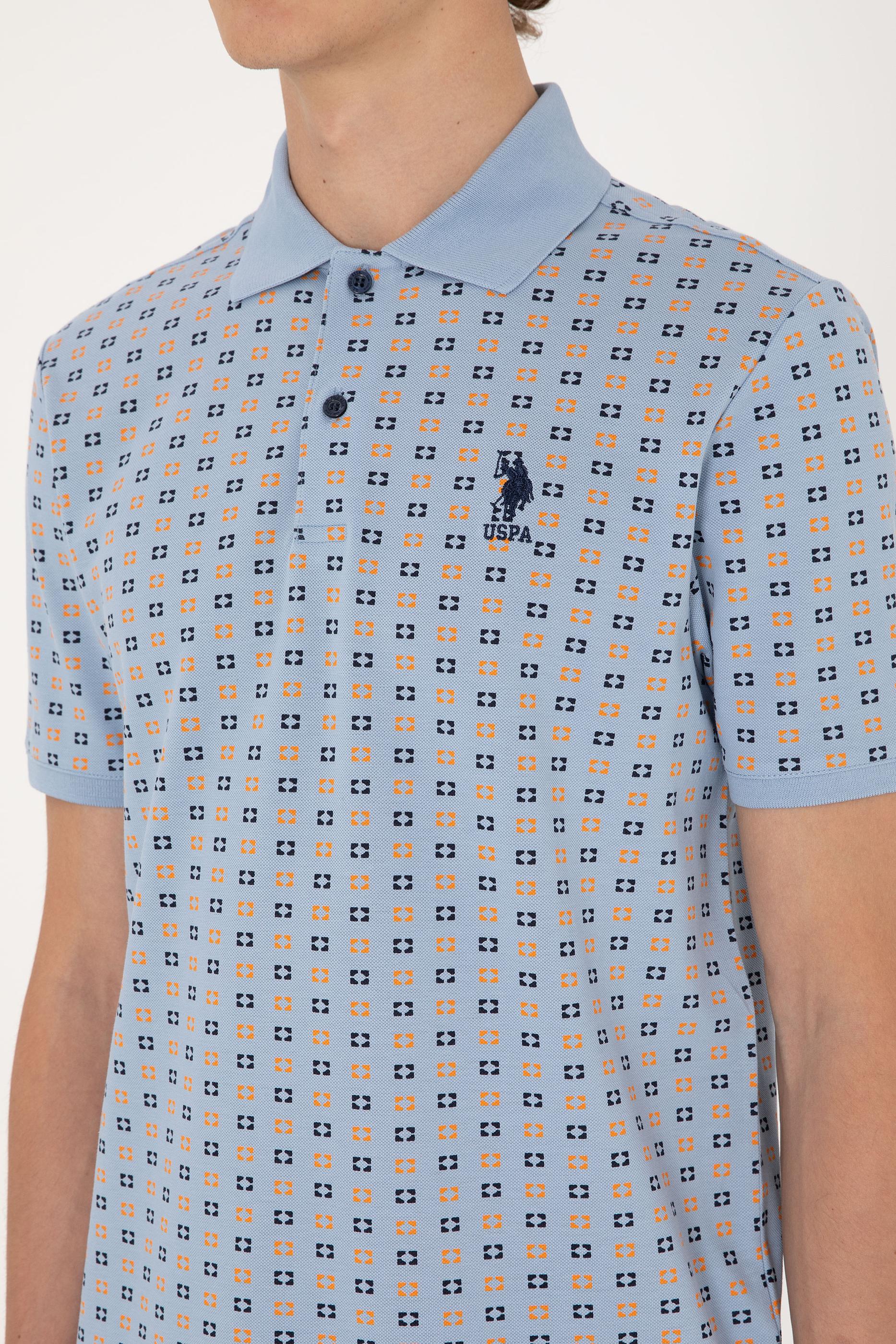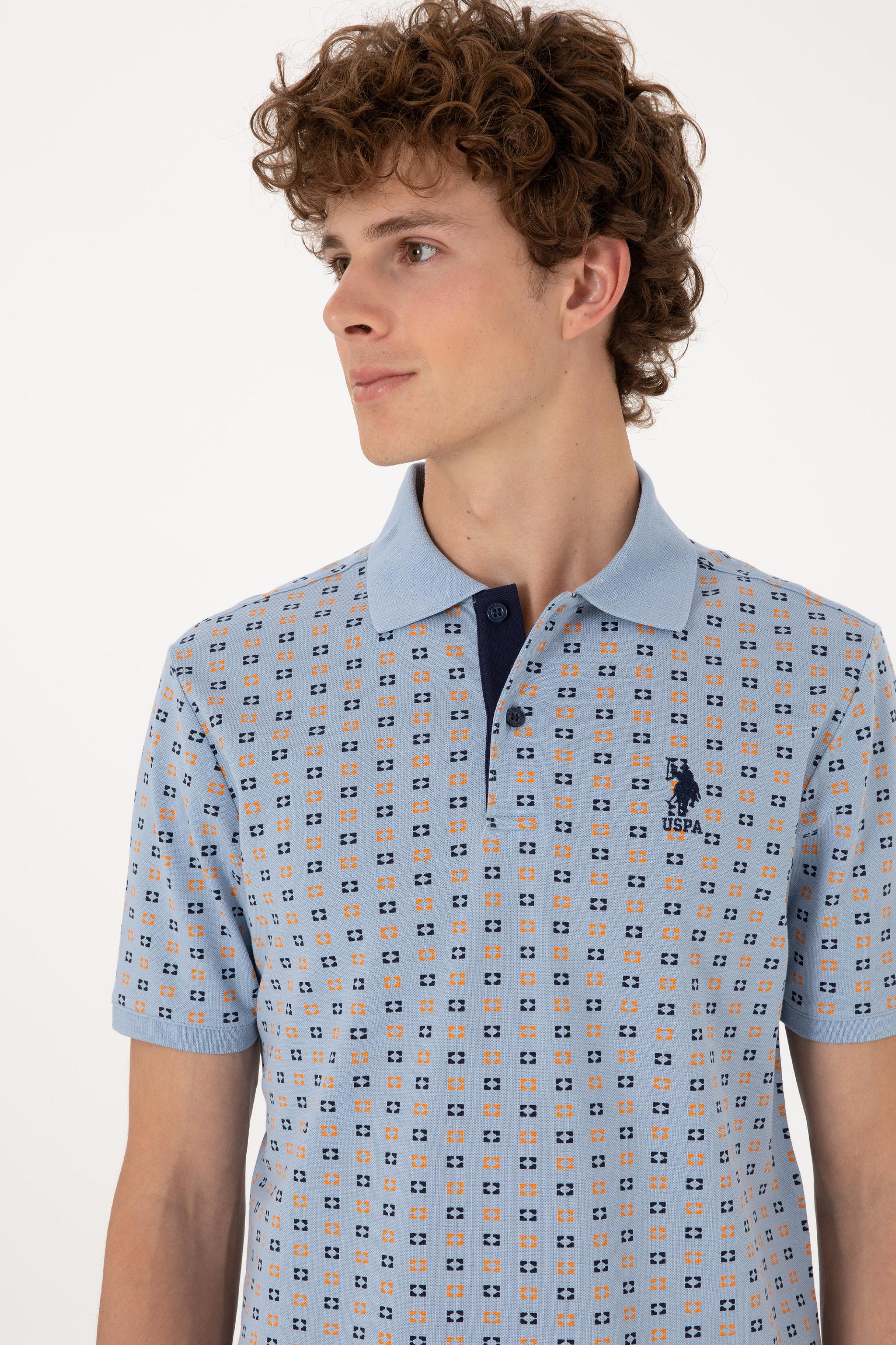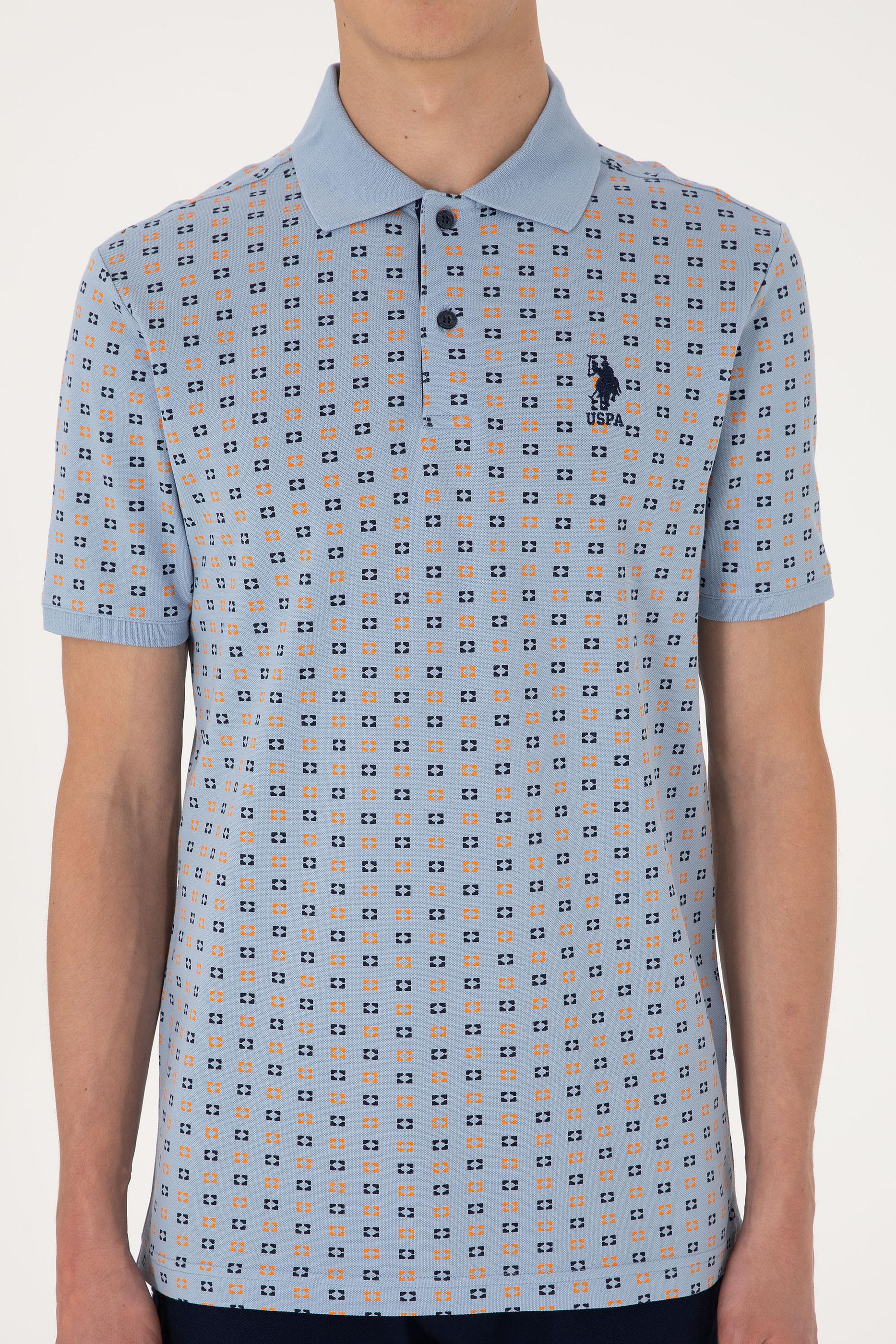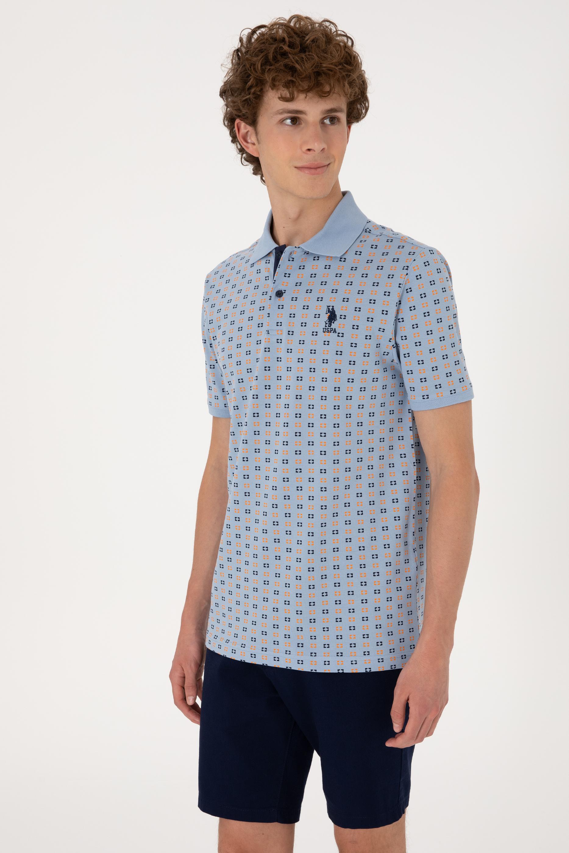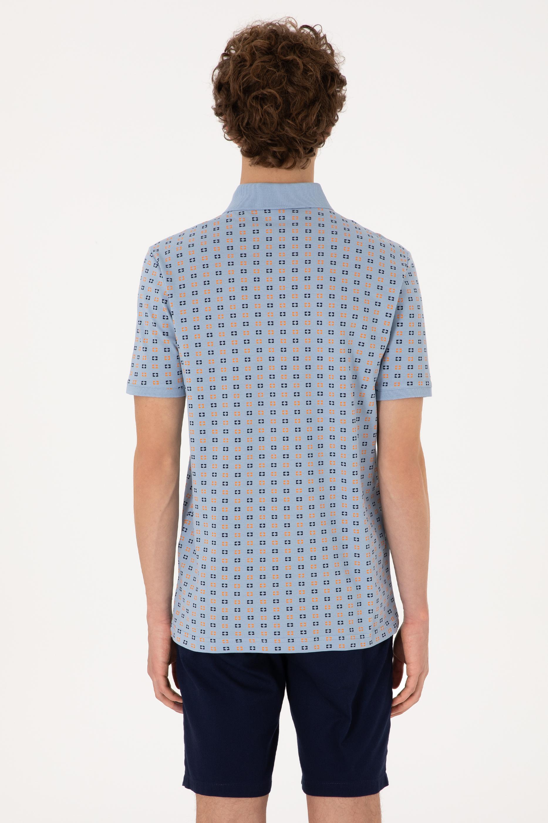 Erkek Regular Fit Açık Mavi Polo Yaka Desenli Tişört