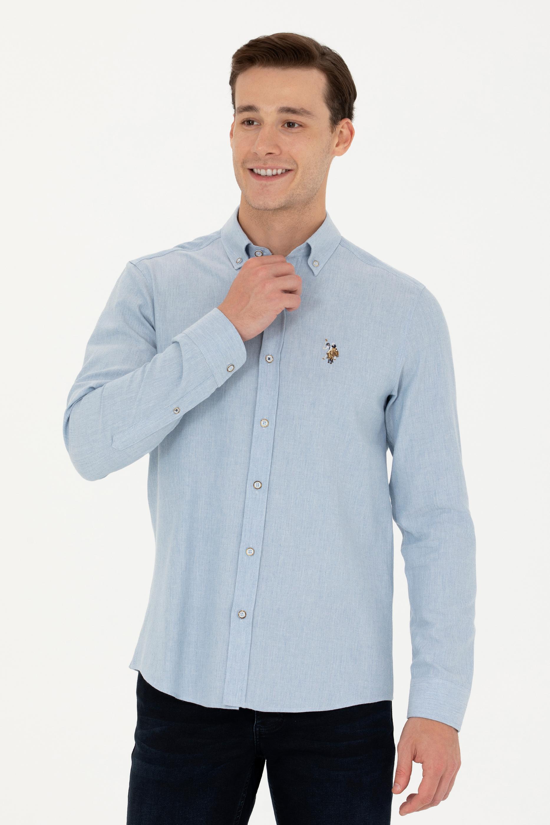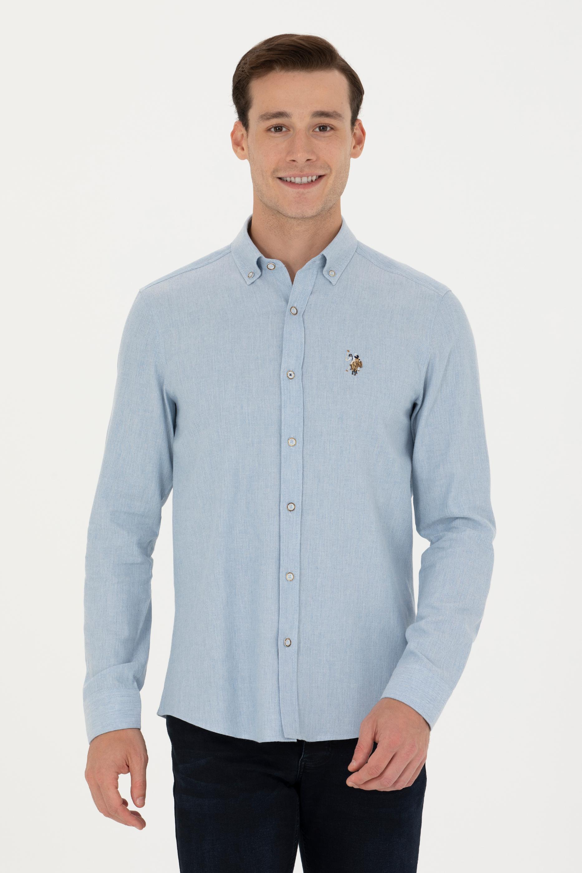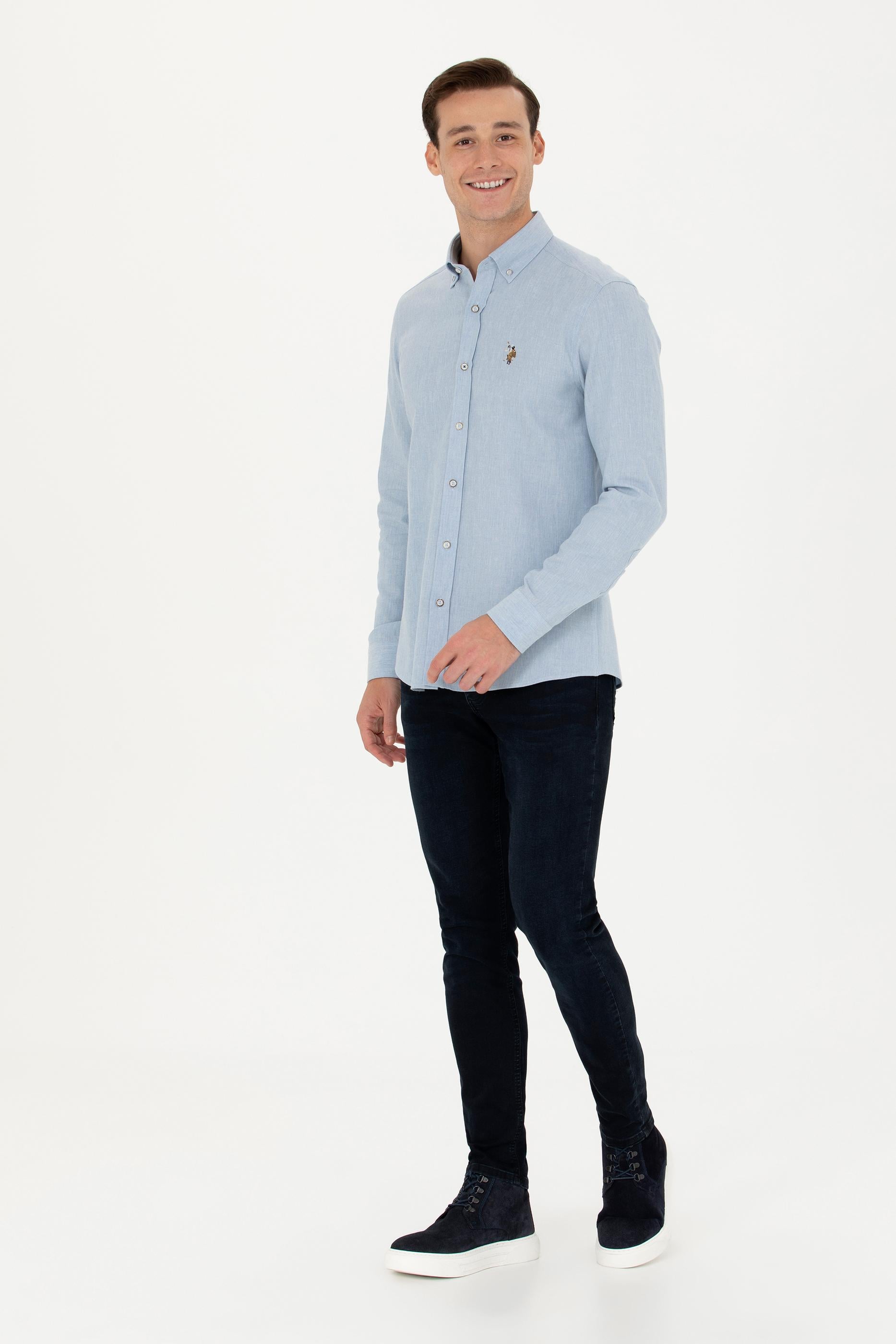 Erkek Açık Mavi Uzun Kollu Basic Gömlek