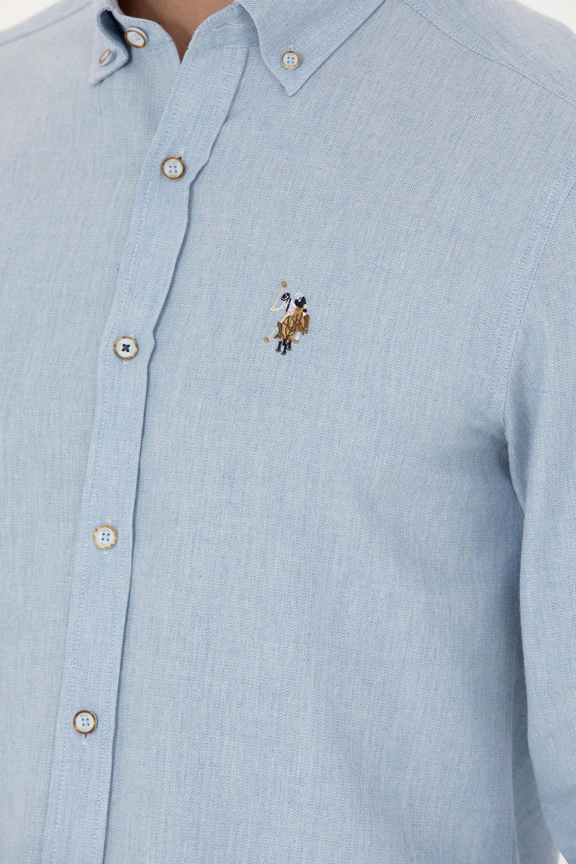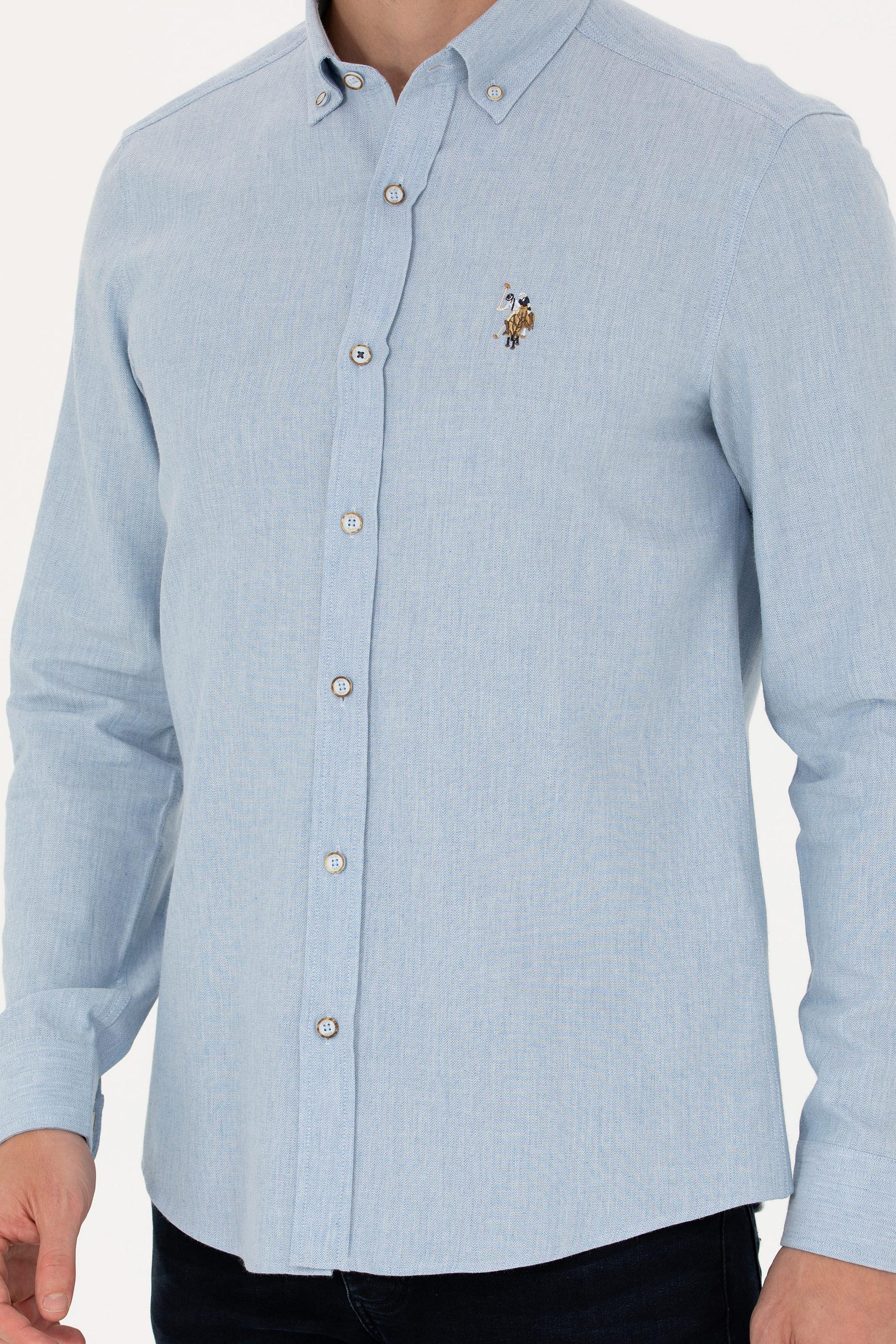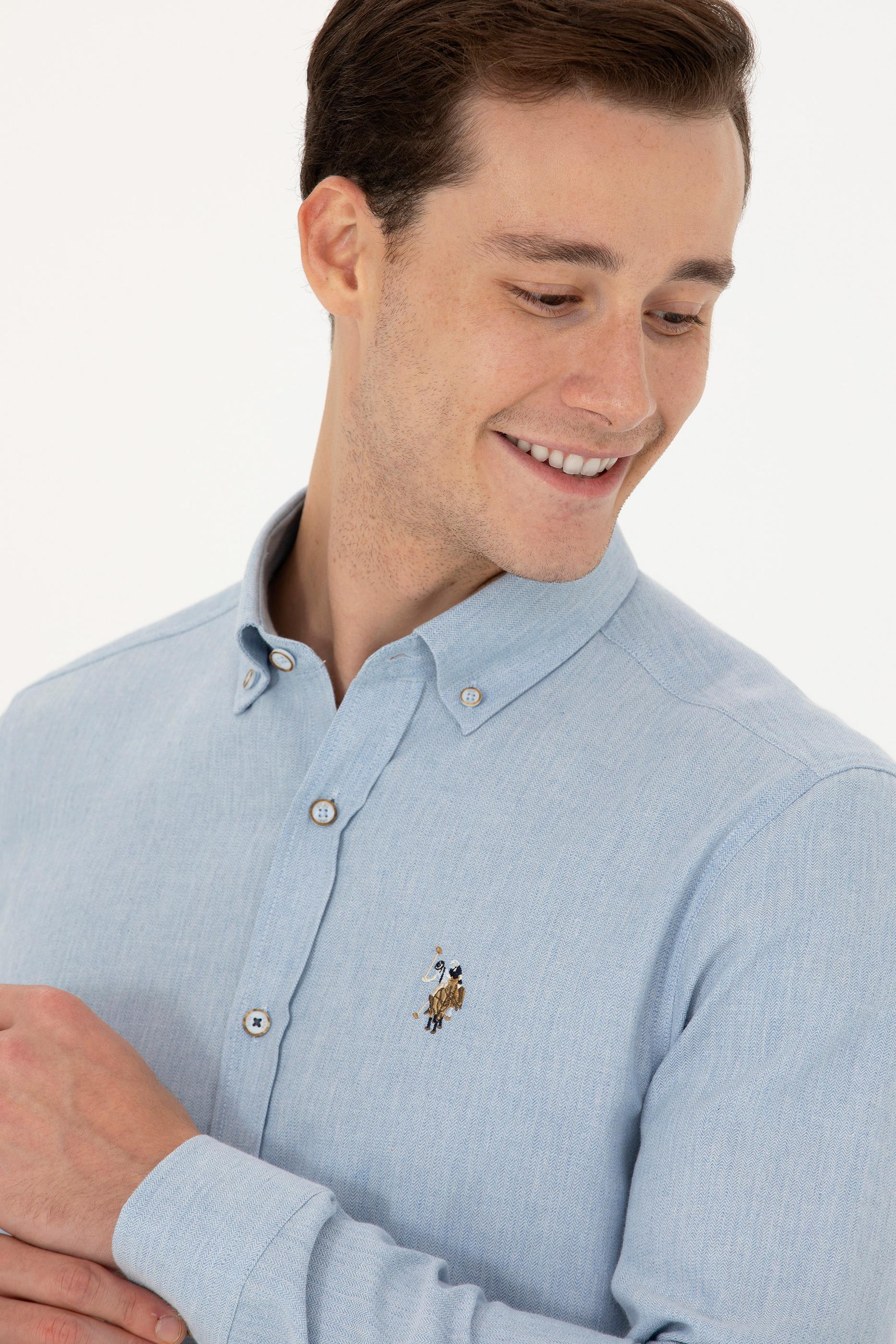 Erkek Açık Mavi Uzun Kollu Basic Gömlek