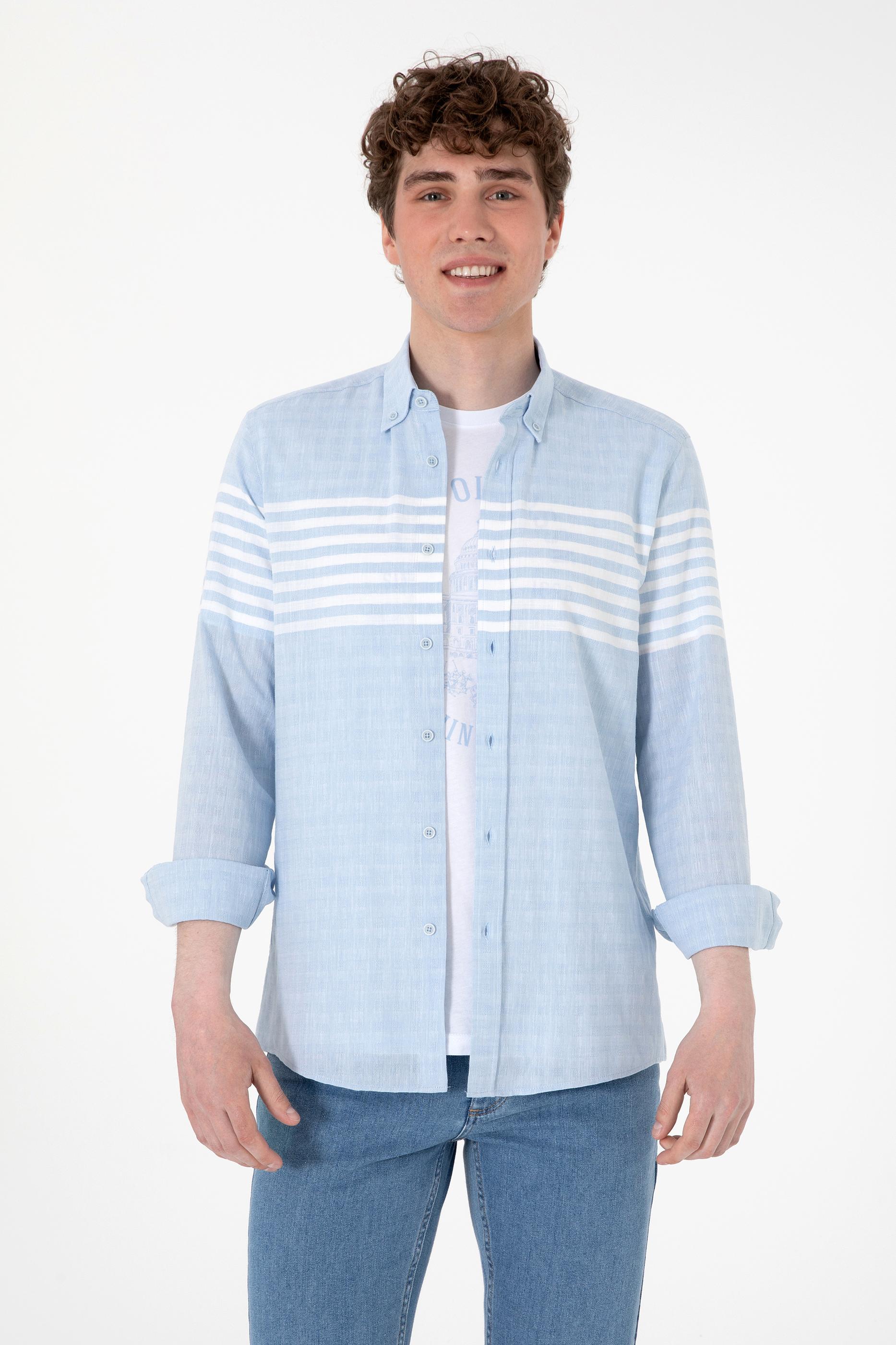 Erkek Açık Mavi Uzun Kollu Gömlek