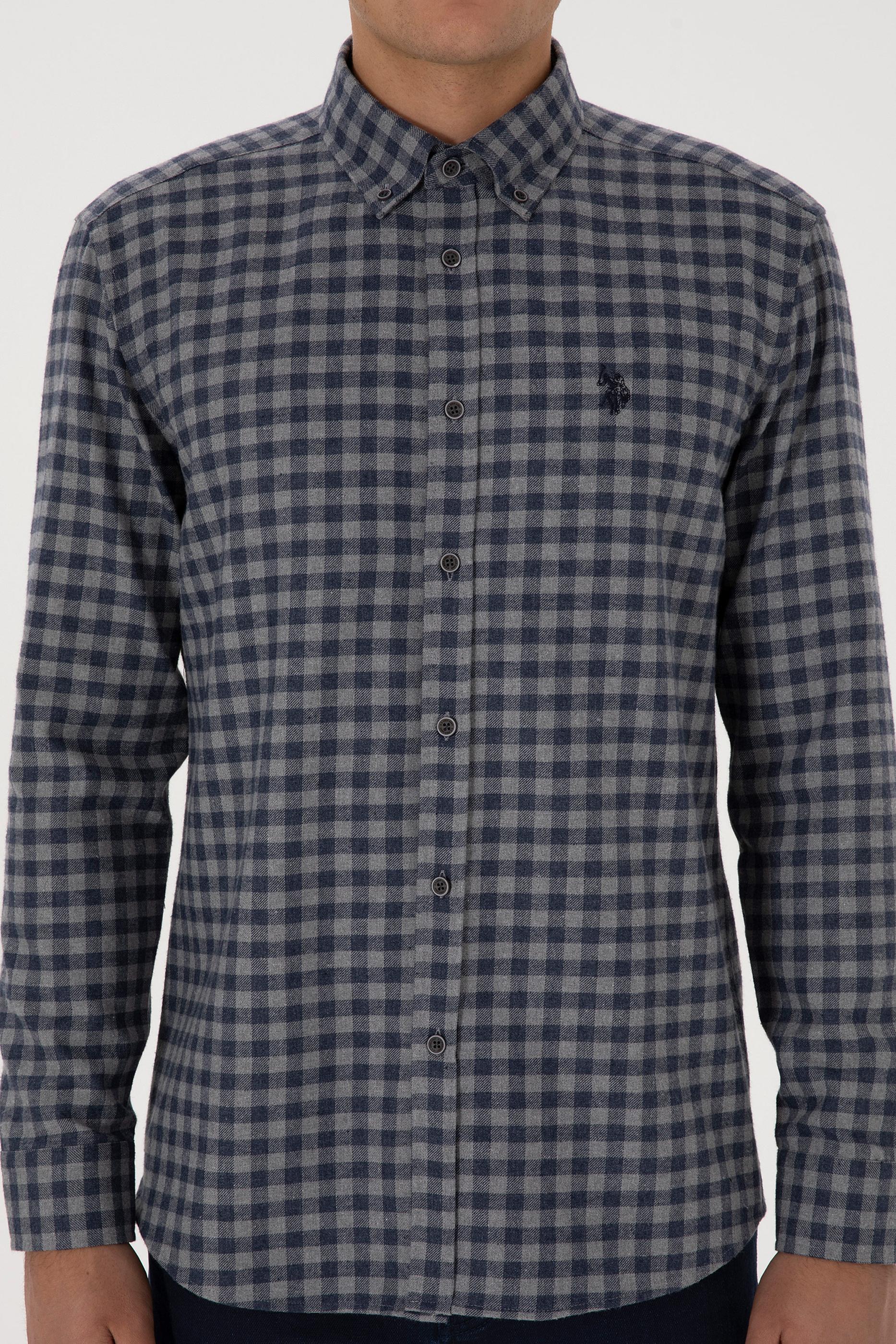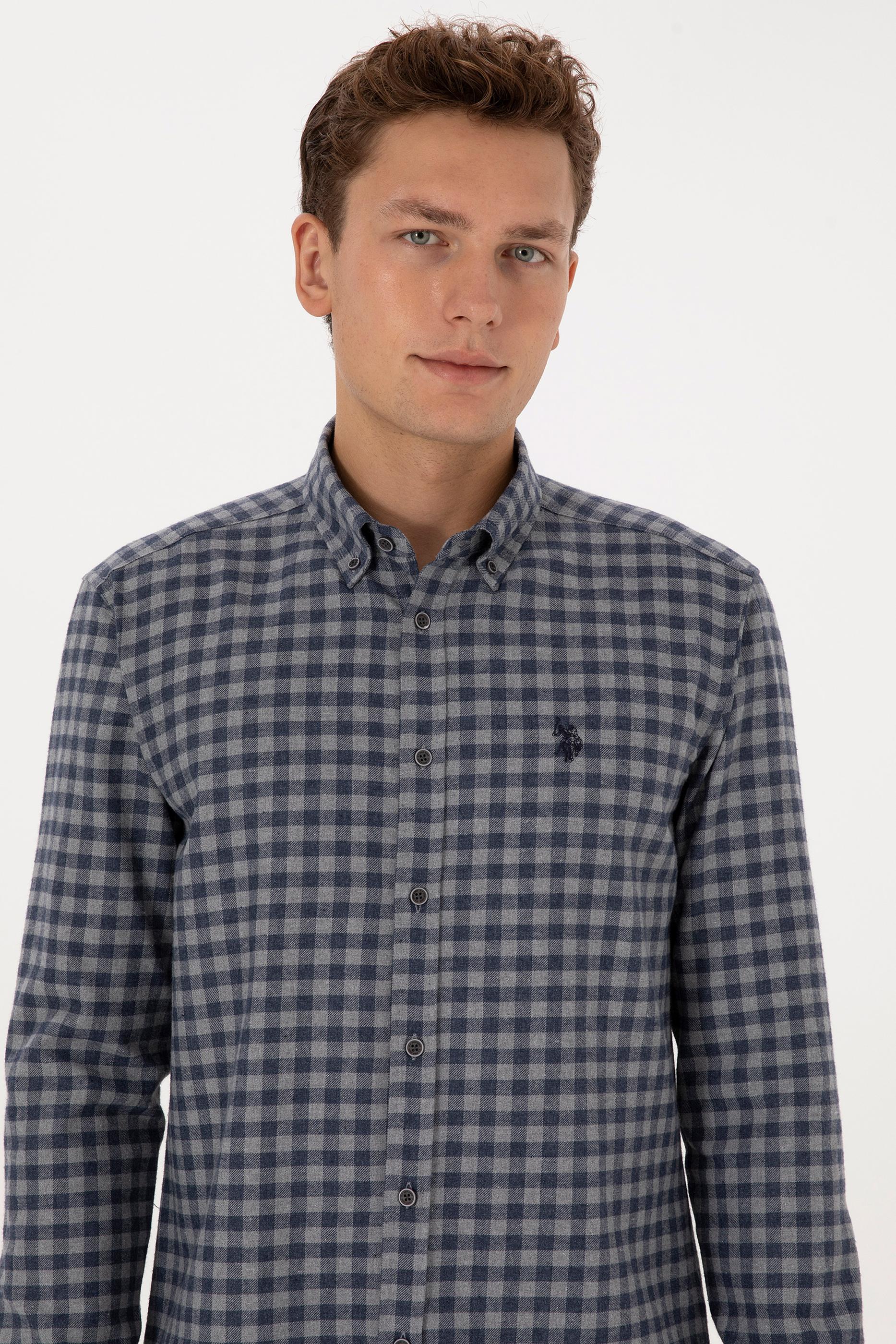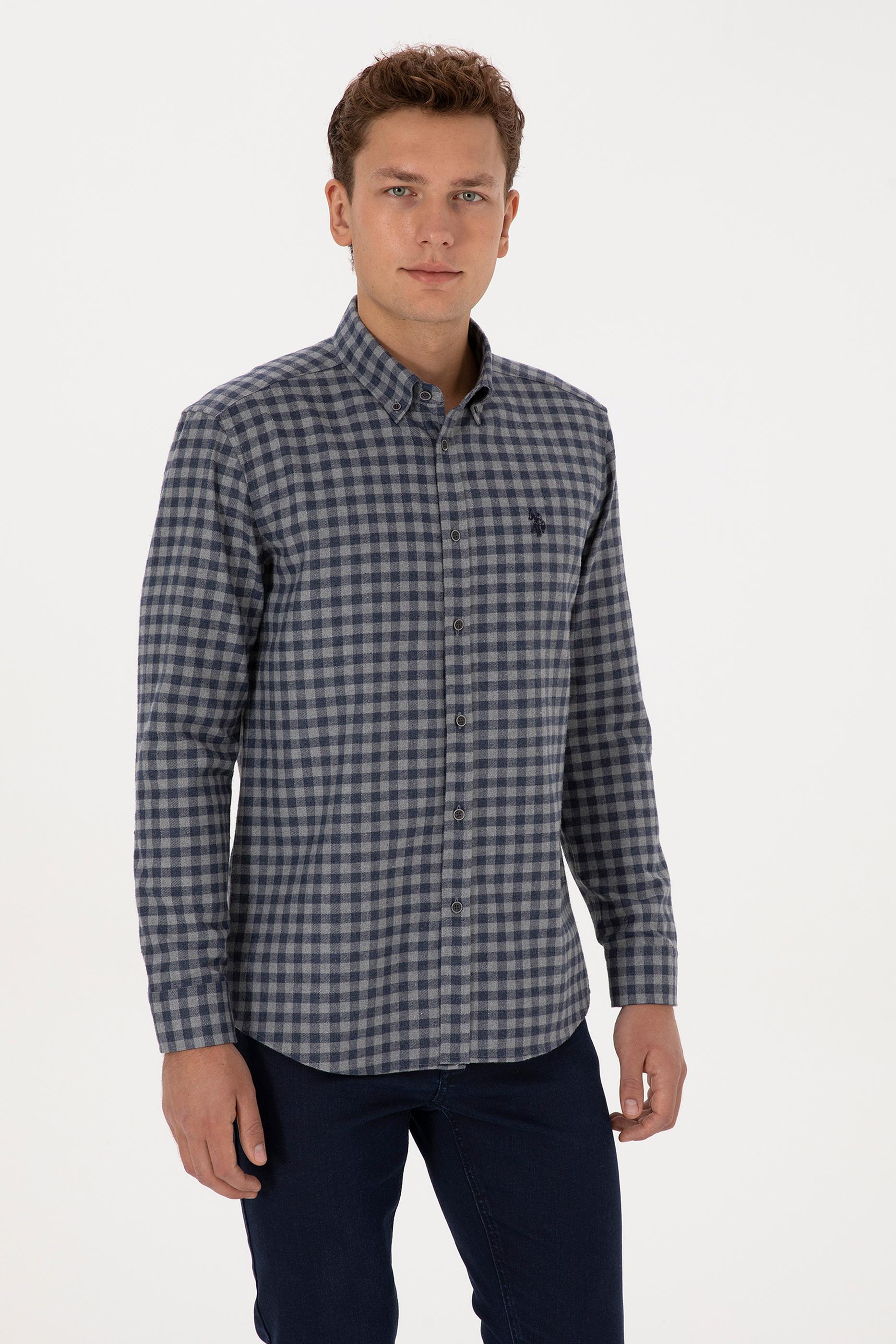 Erkek Lacivert Uzun Kollu Kareli Gömlek