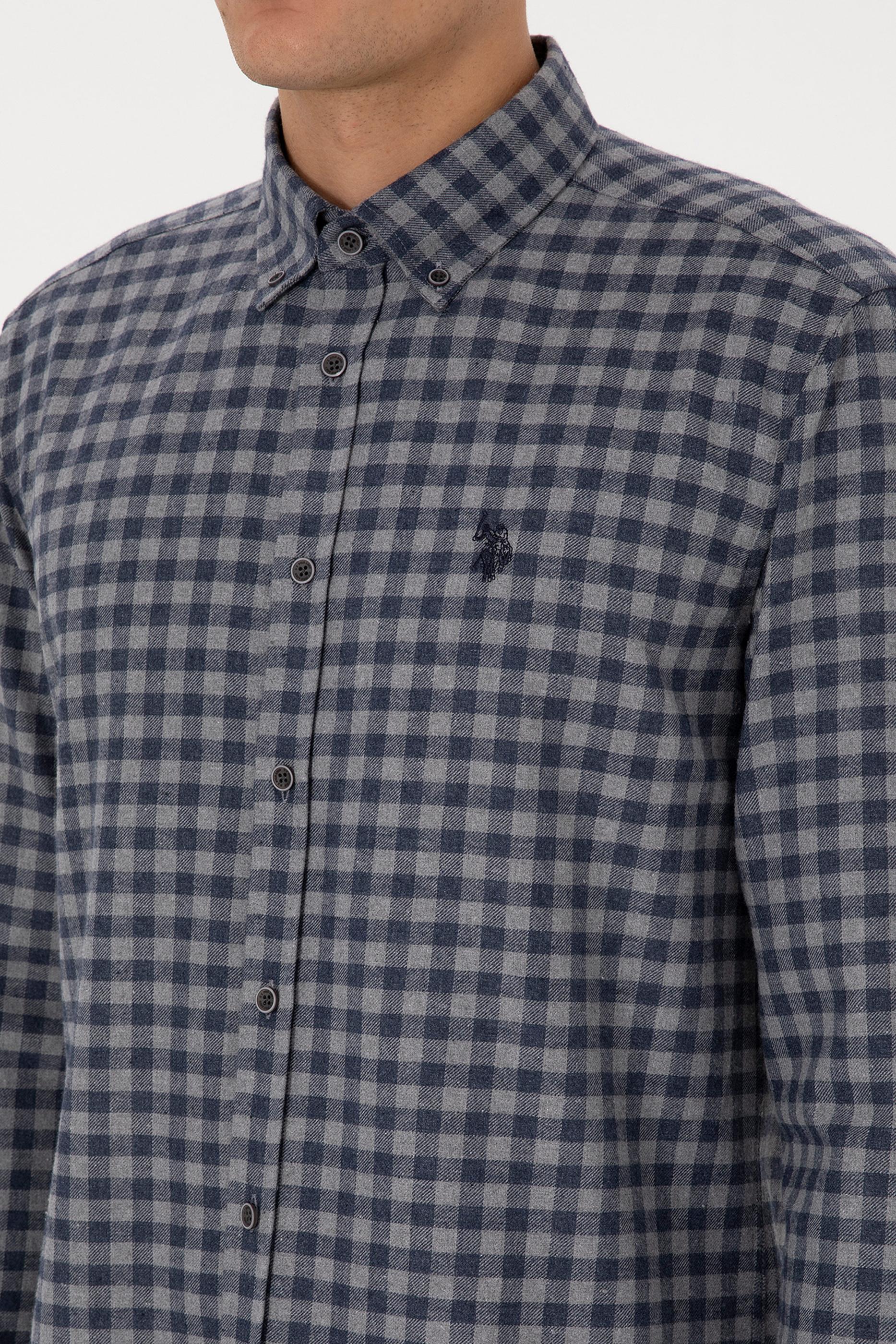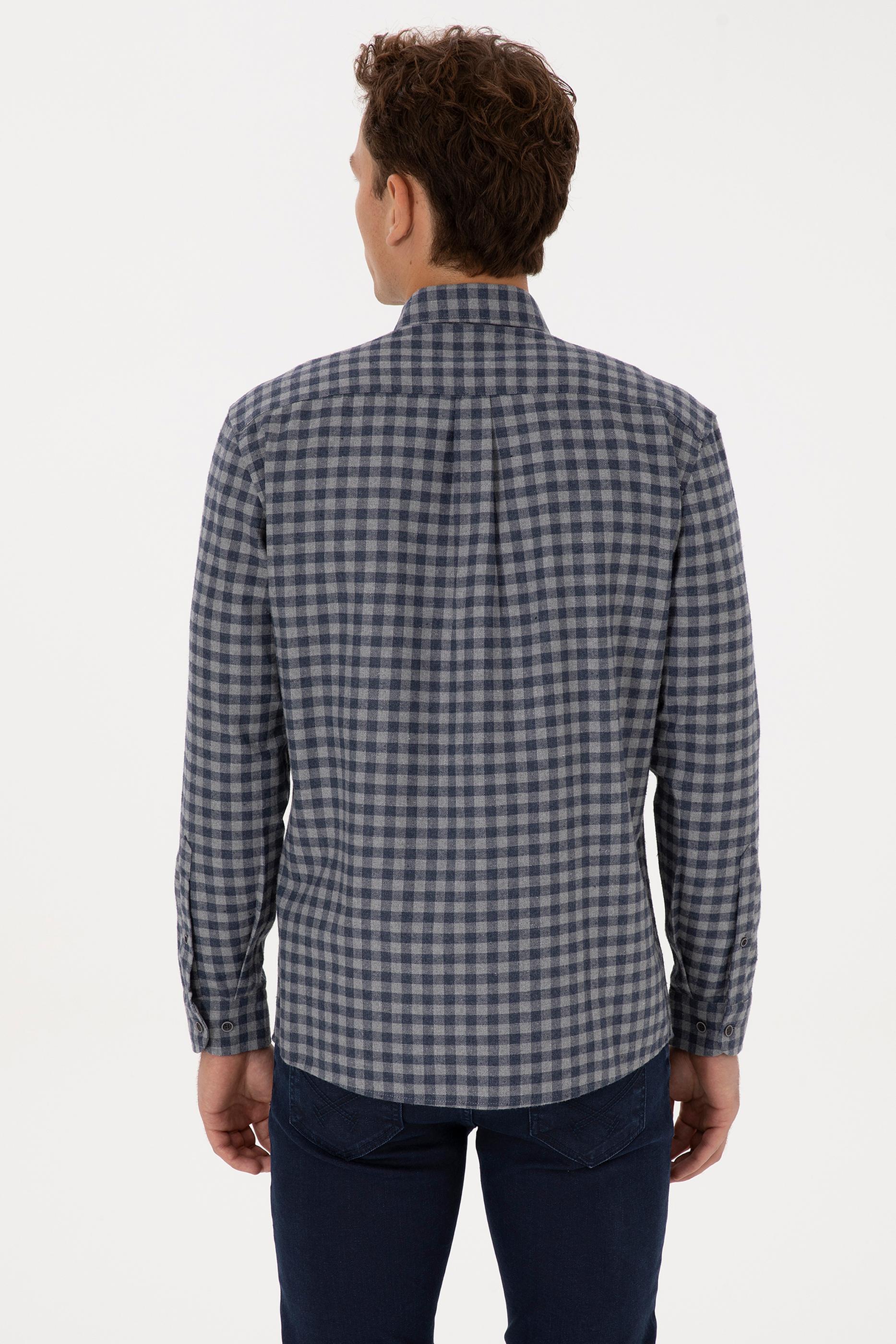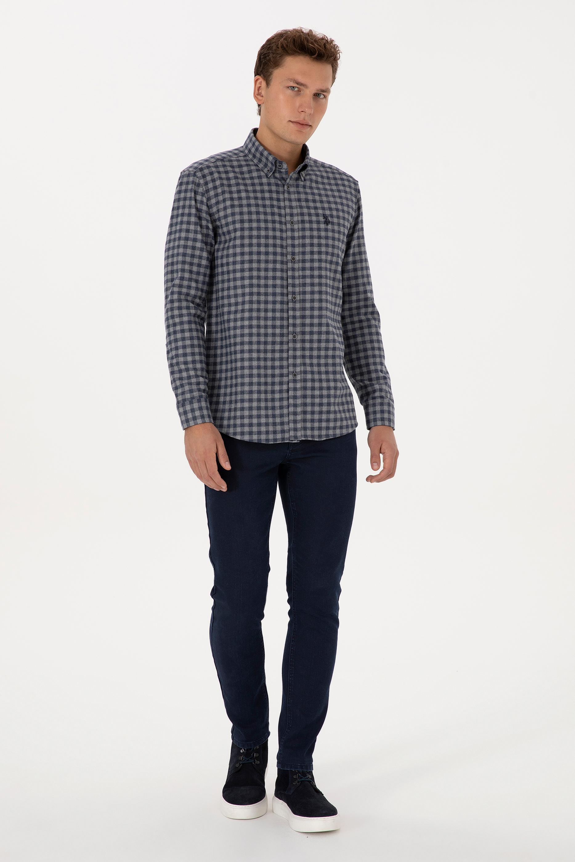 Erkek Lacivert Uzun Kollu Kareli Gömlek