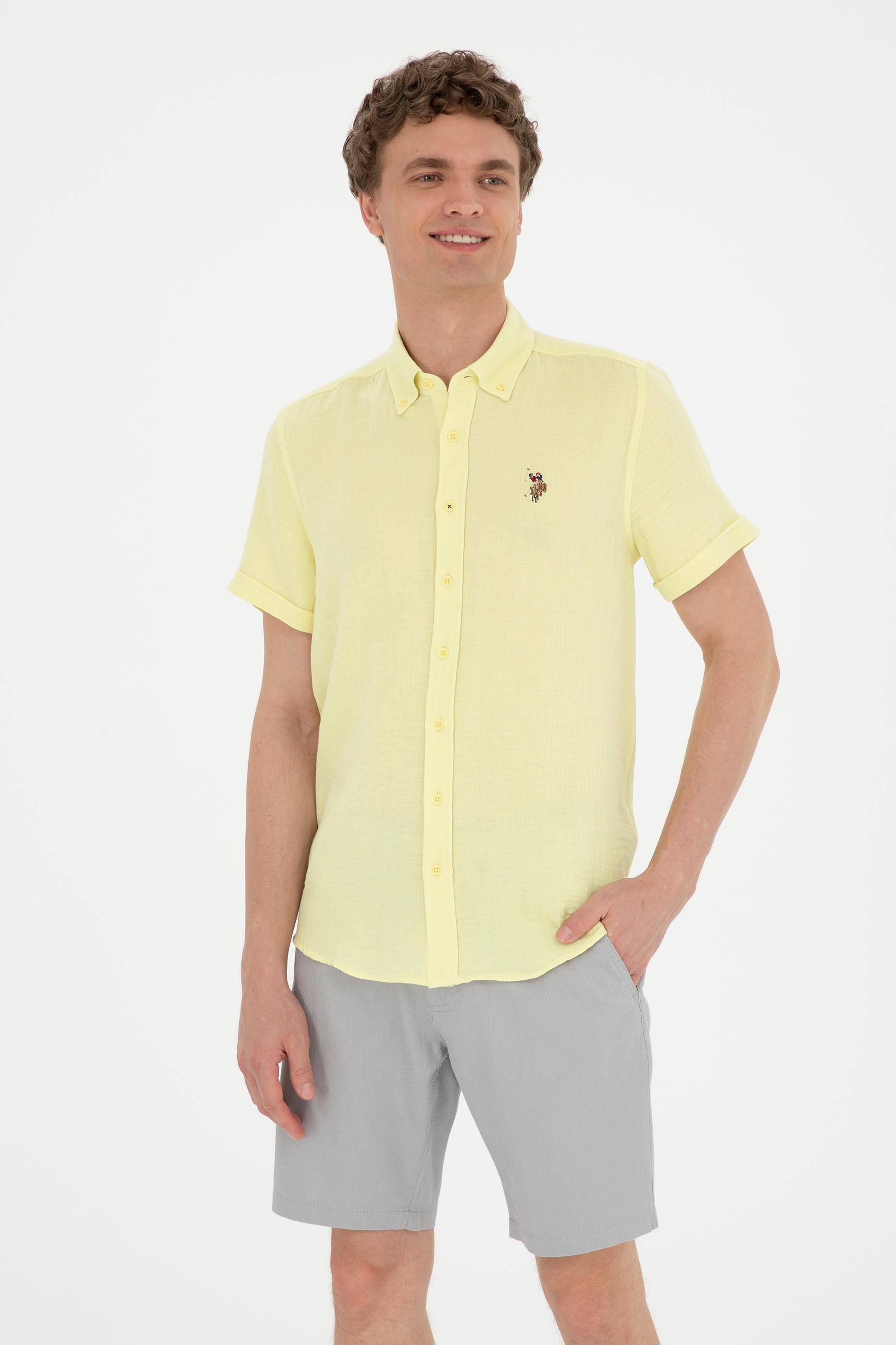 Erkek Açık Sarı Kısa Kollu Gömlek
