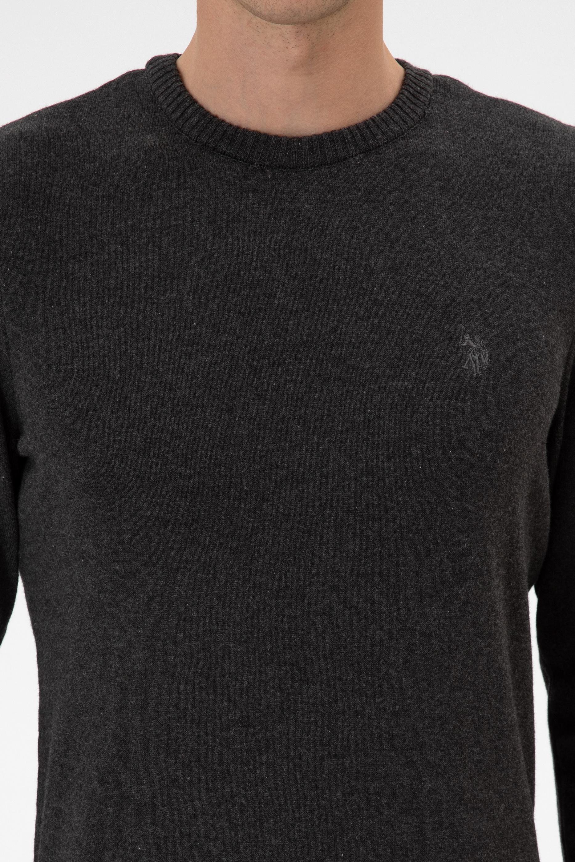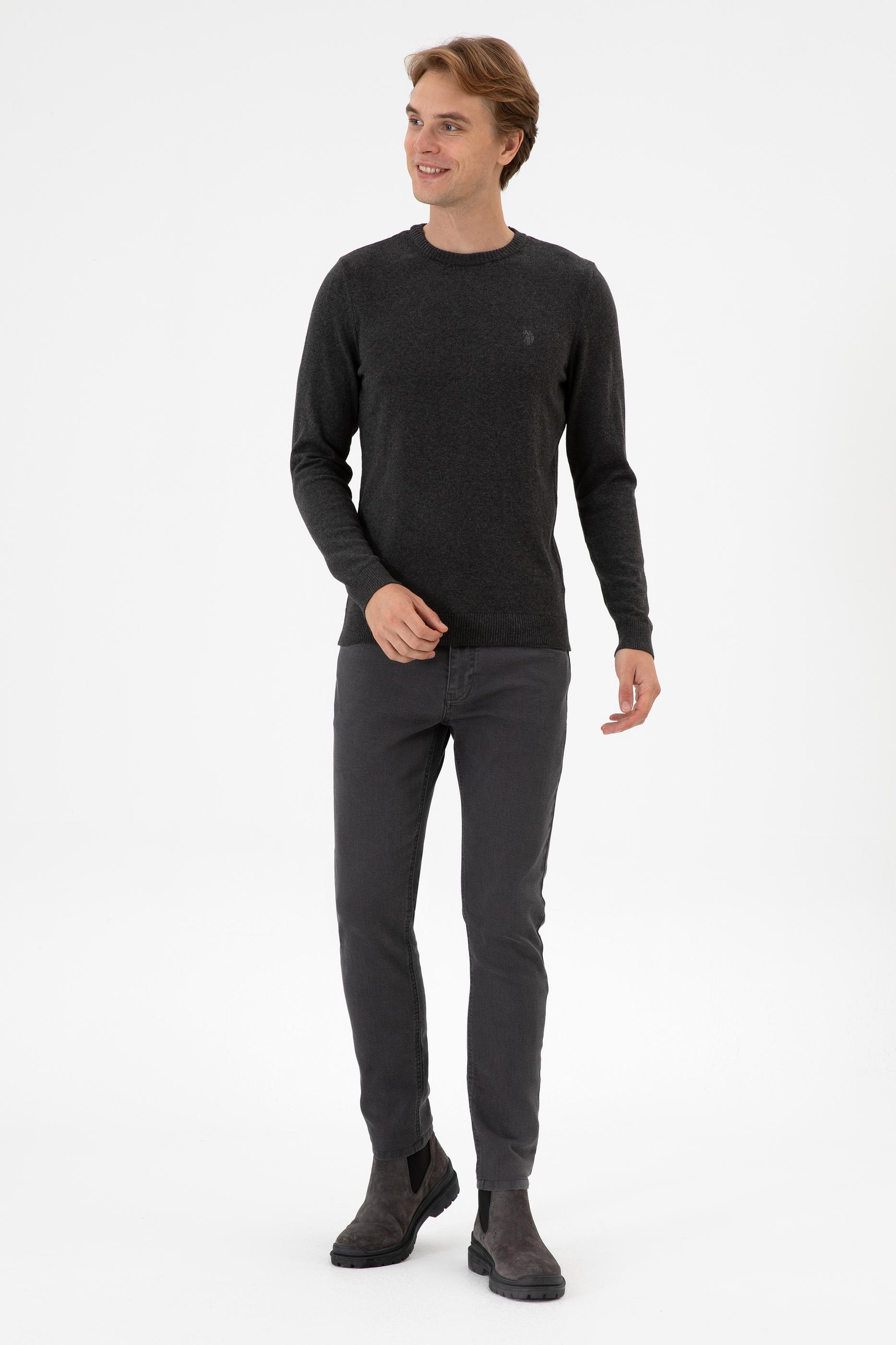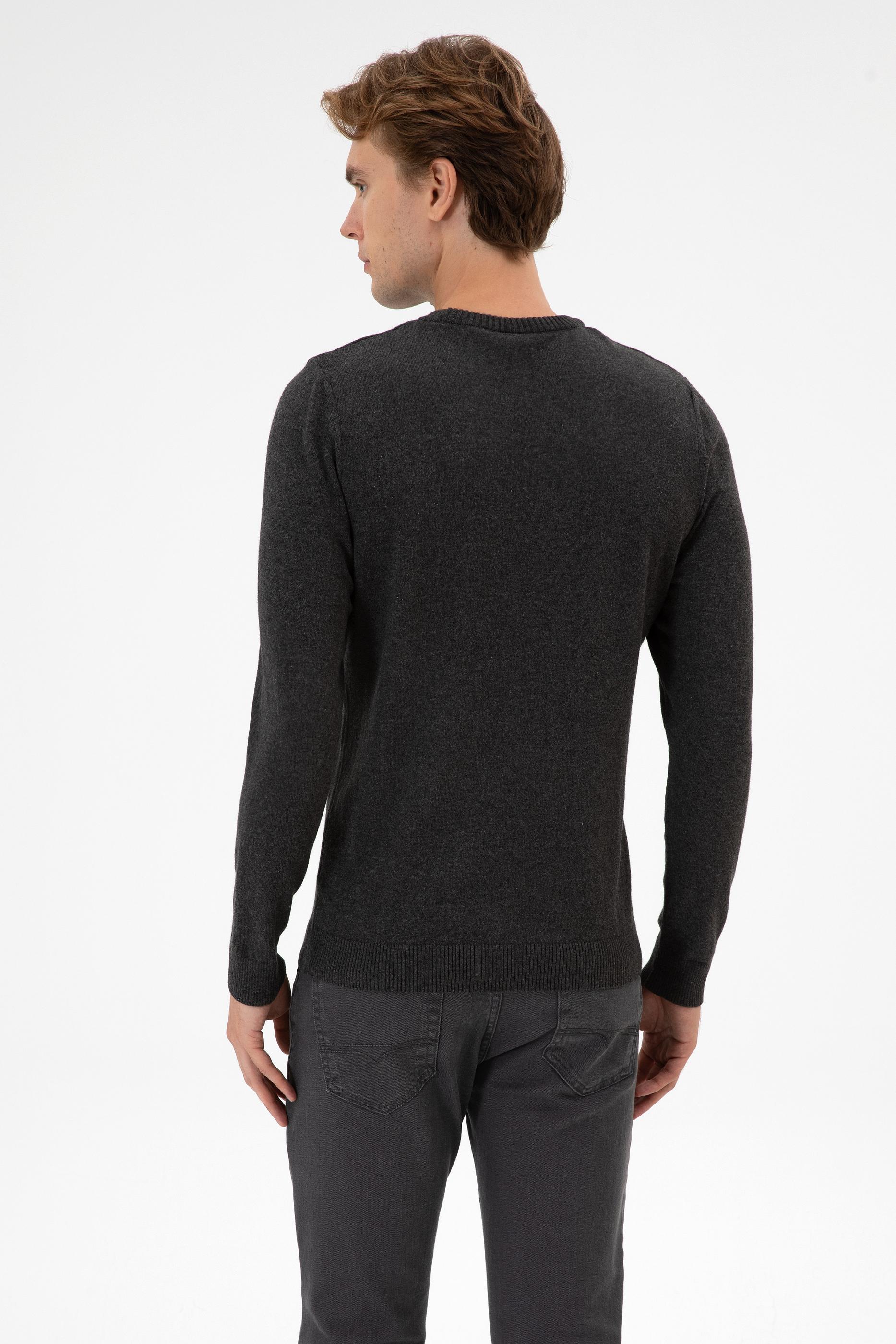 - Erkek Slim Fit Bisiklet Yaka Antrasit Melanj Basic Kazak