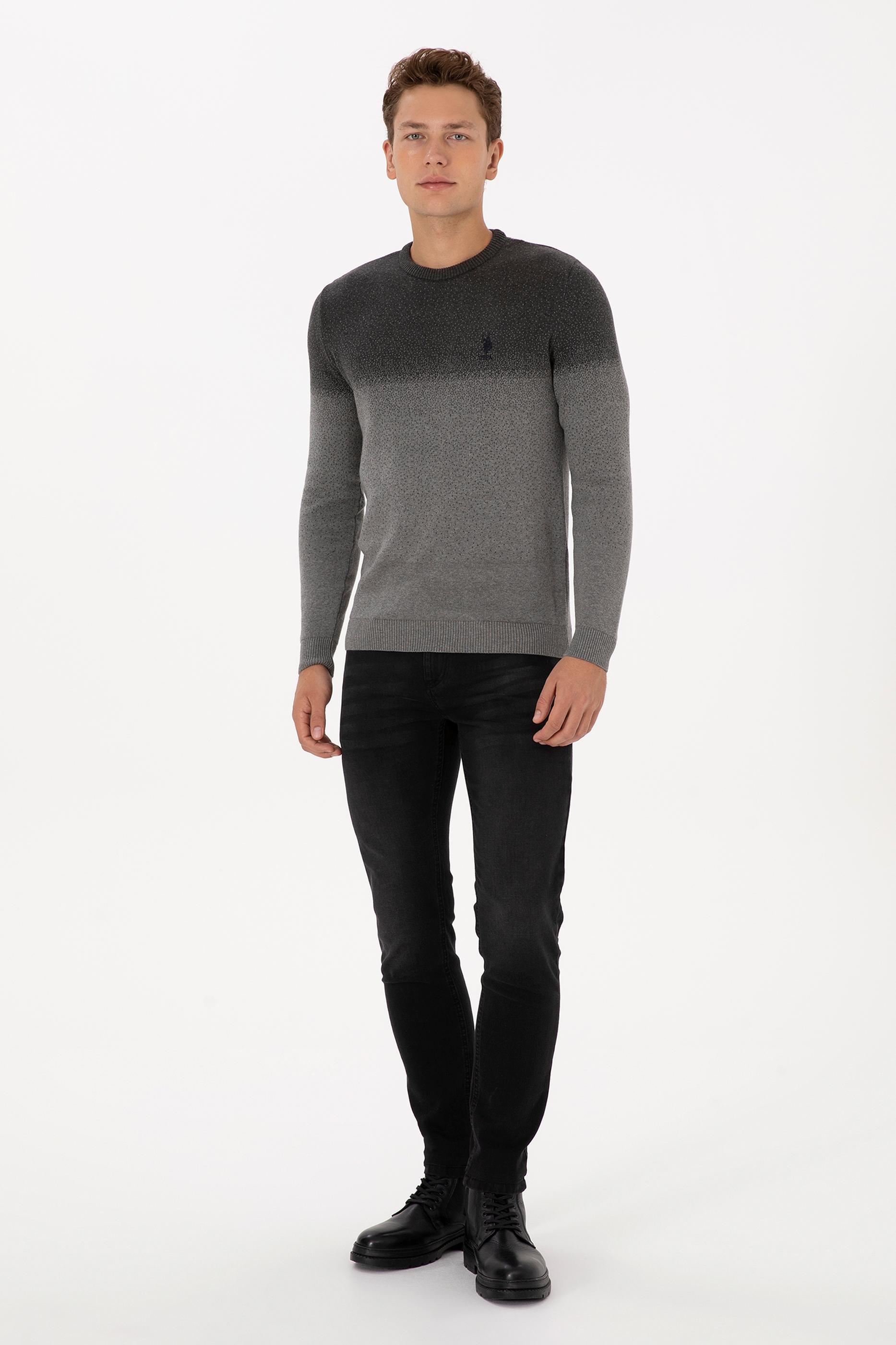 Erkek Regular Fit Bisiklet Yaka Antrasit Melanj Kazak