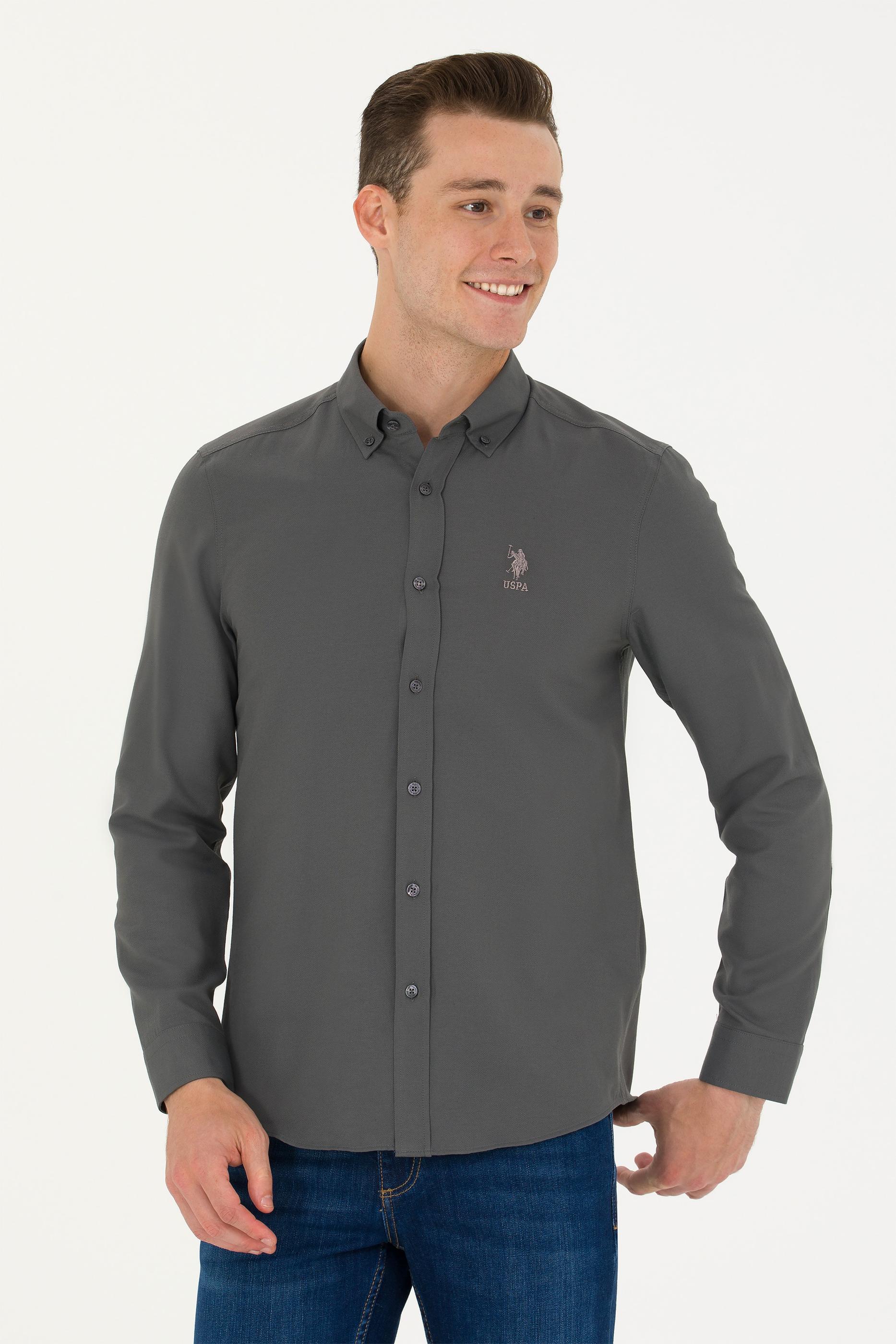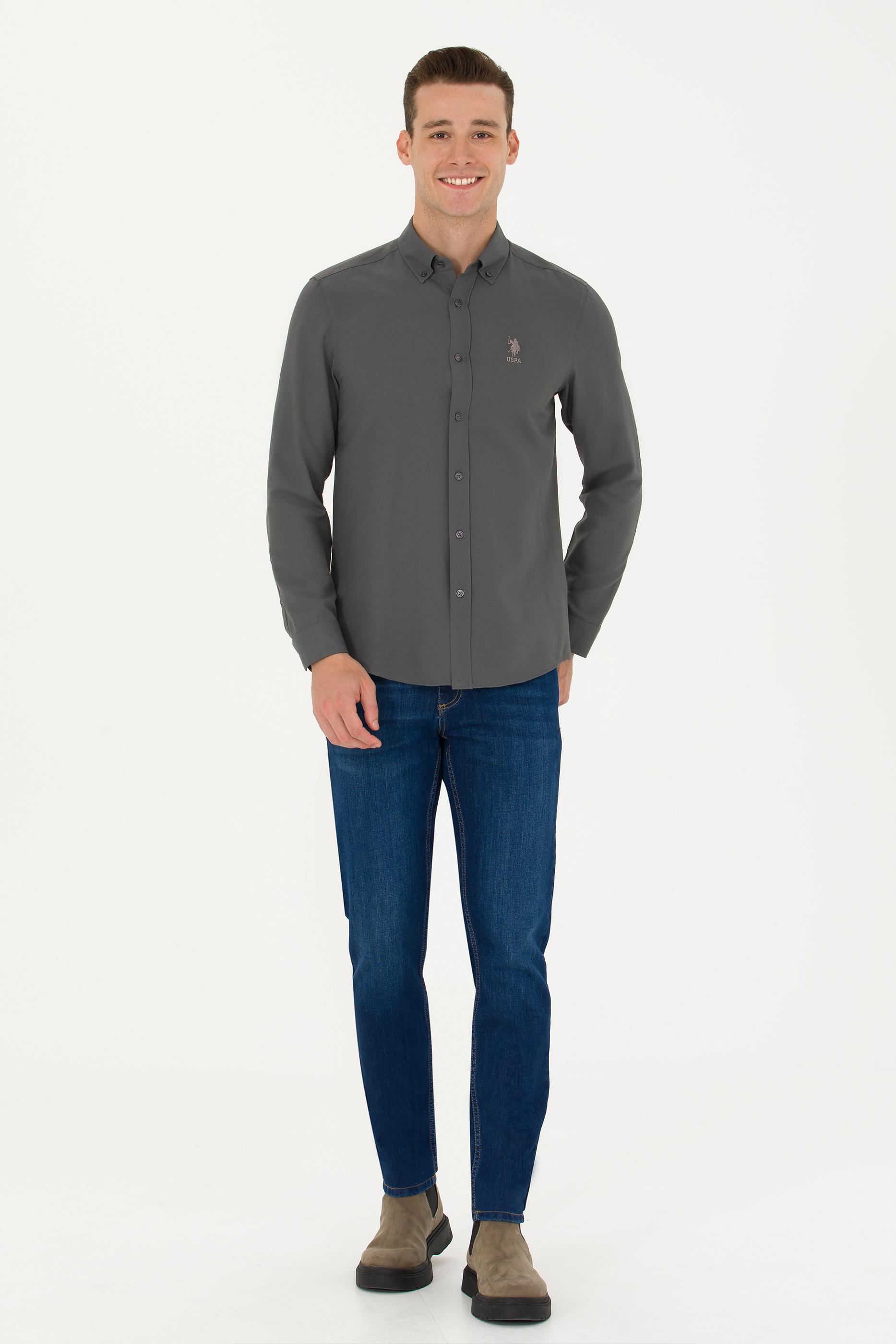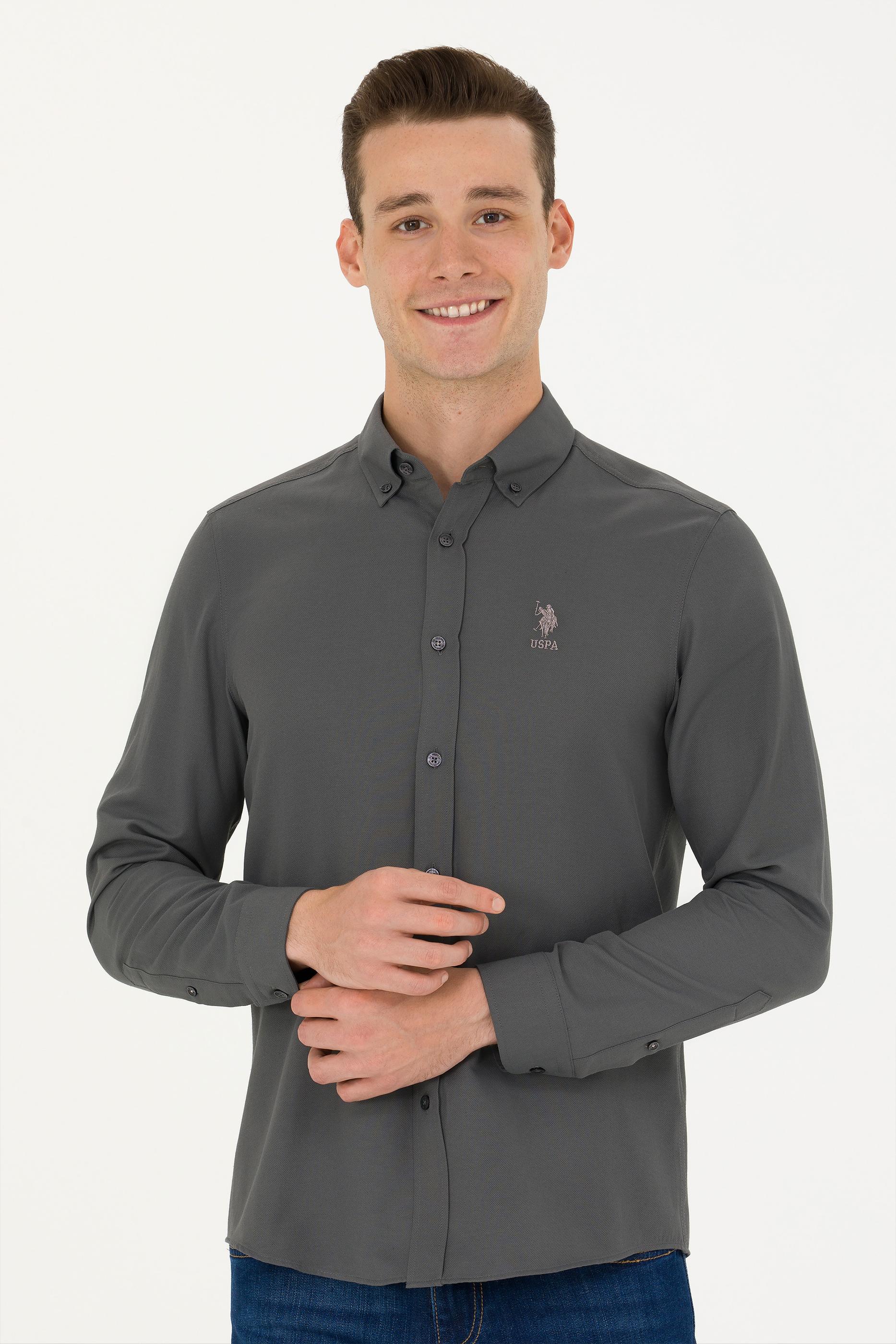 - Erkek Antrasit Uzun Kollu Basic Gömlek