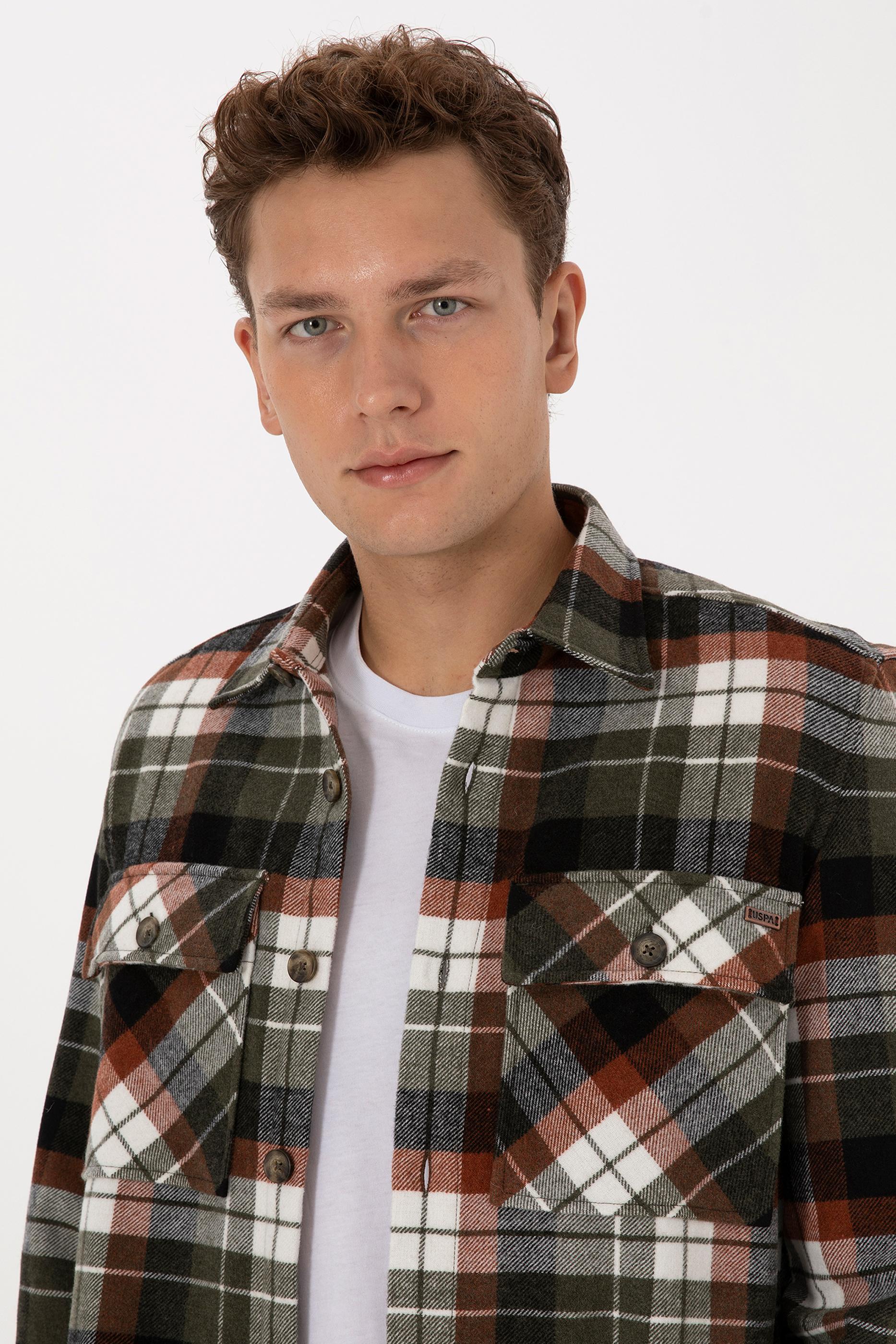 - Erkek Bakır Ekoseli Uzun Kollu Siyah Gömlek