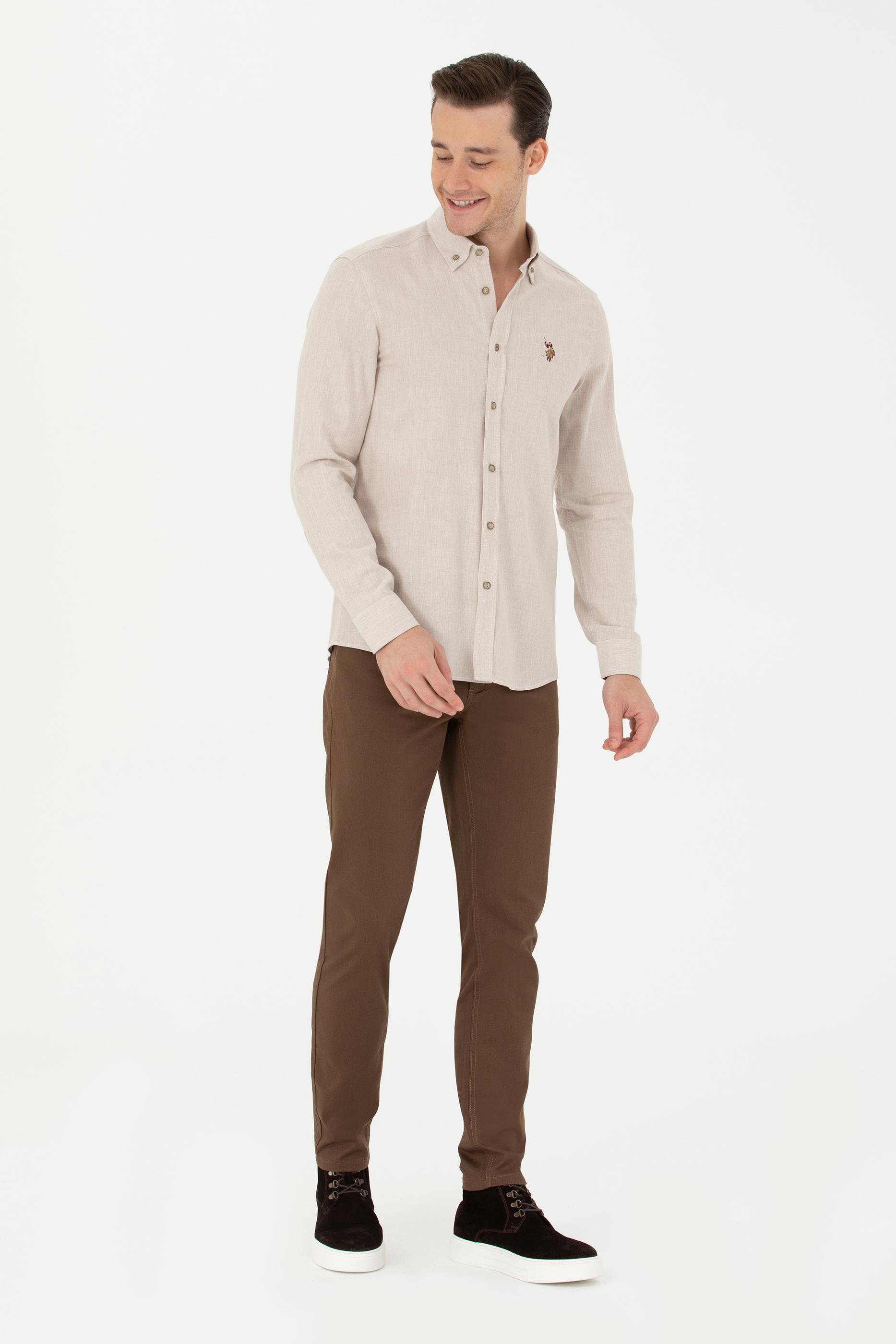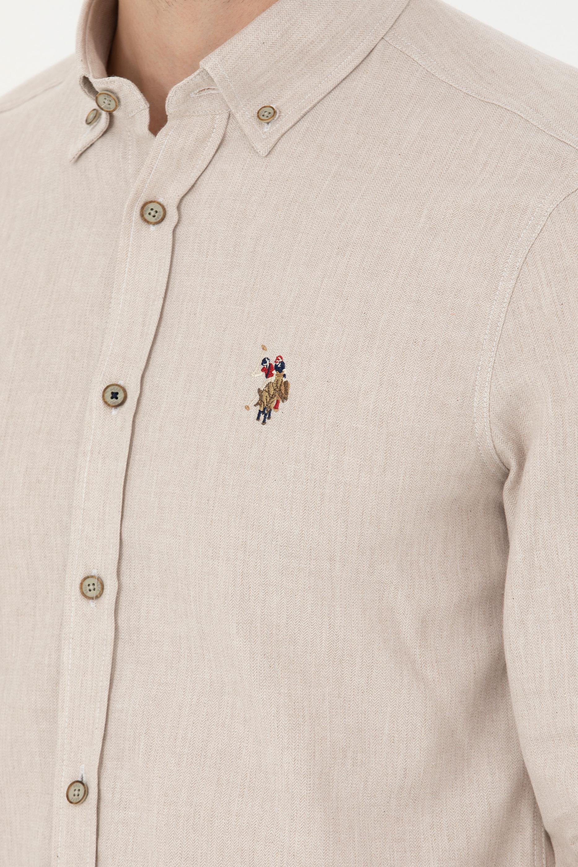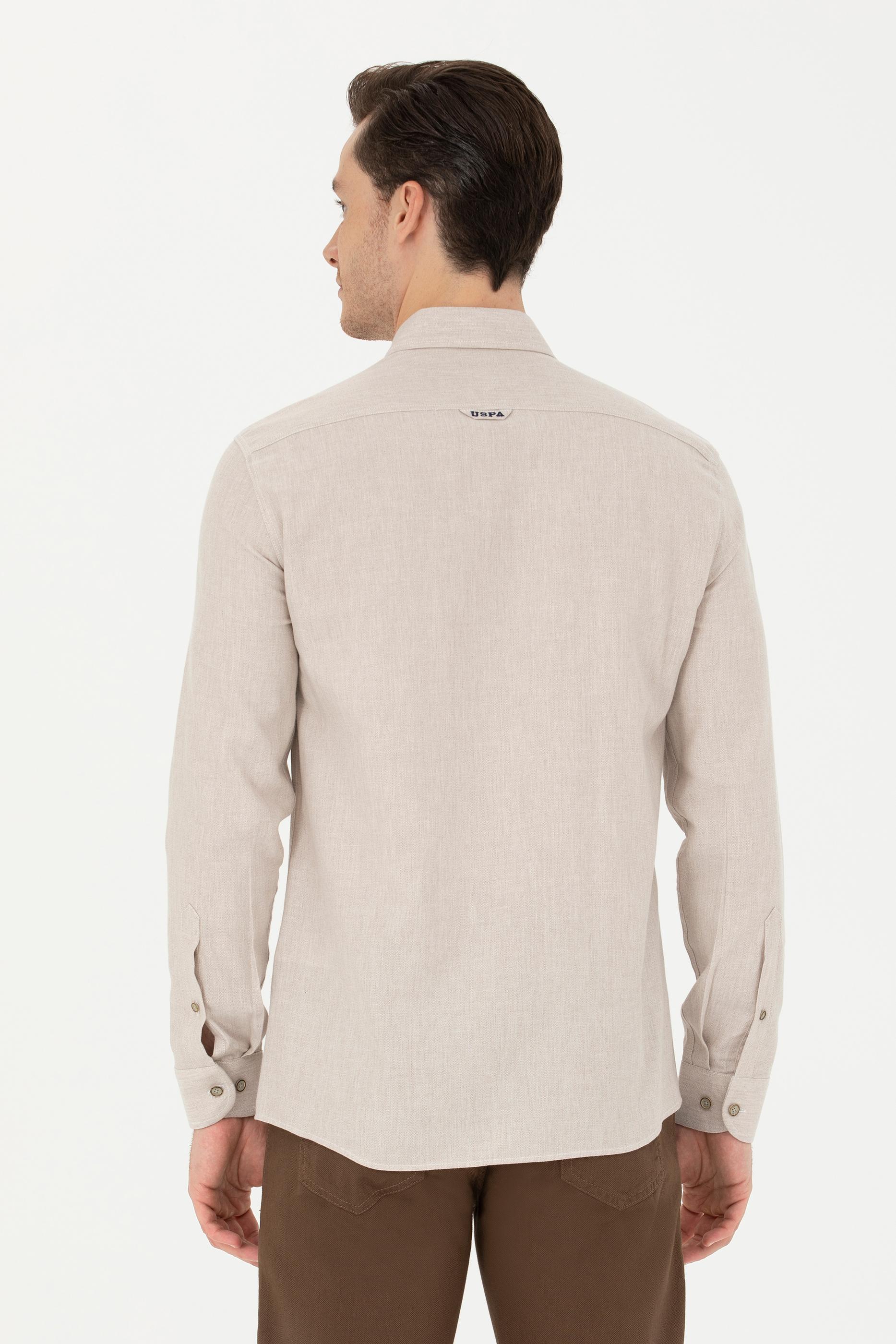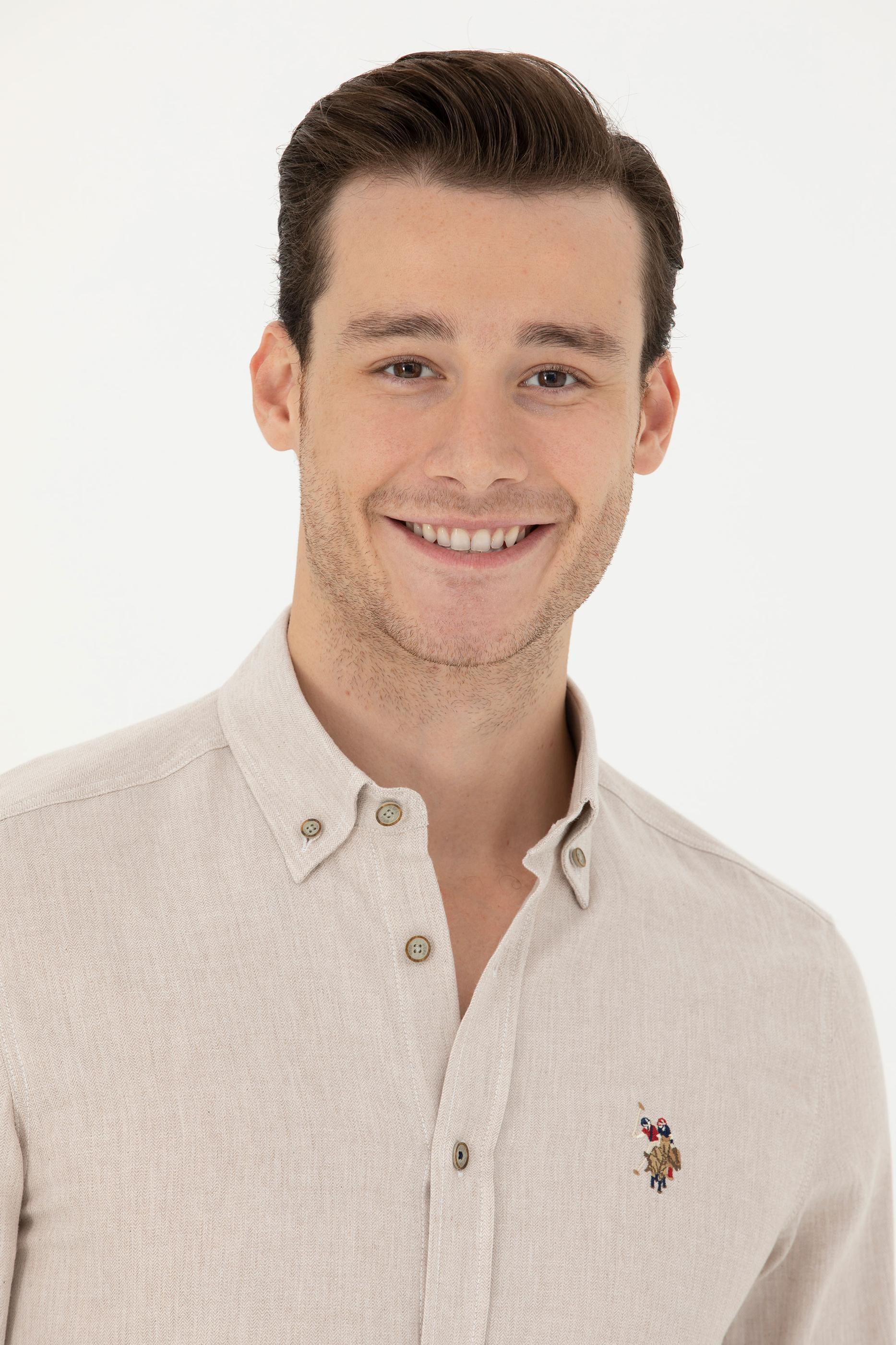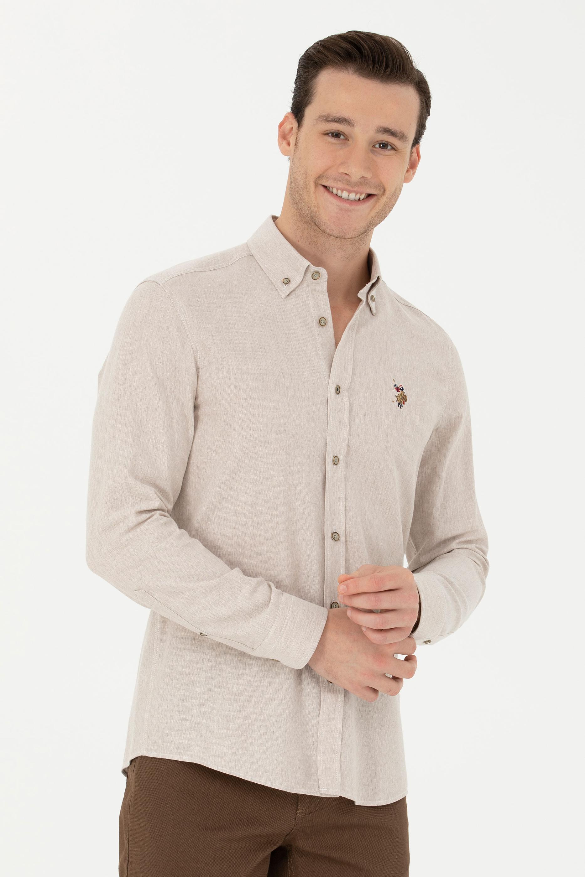- Erkek Bej Uzun Kollu Basic Gömlek