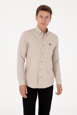 - Erkek Bej Uzun Kollu Basic Gömlek