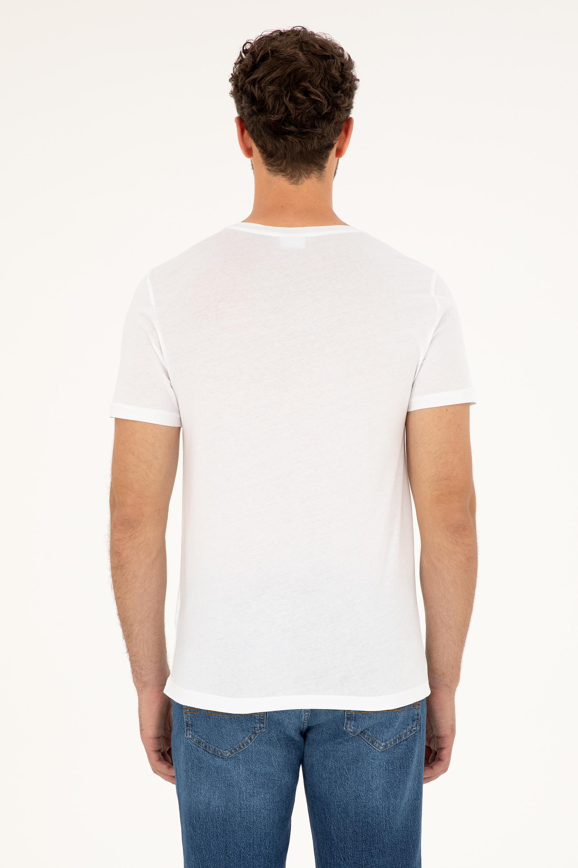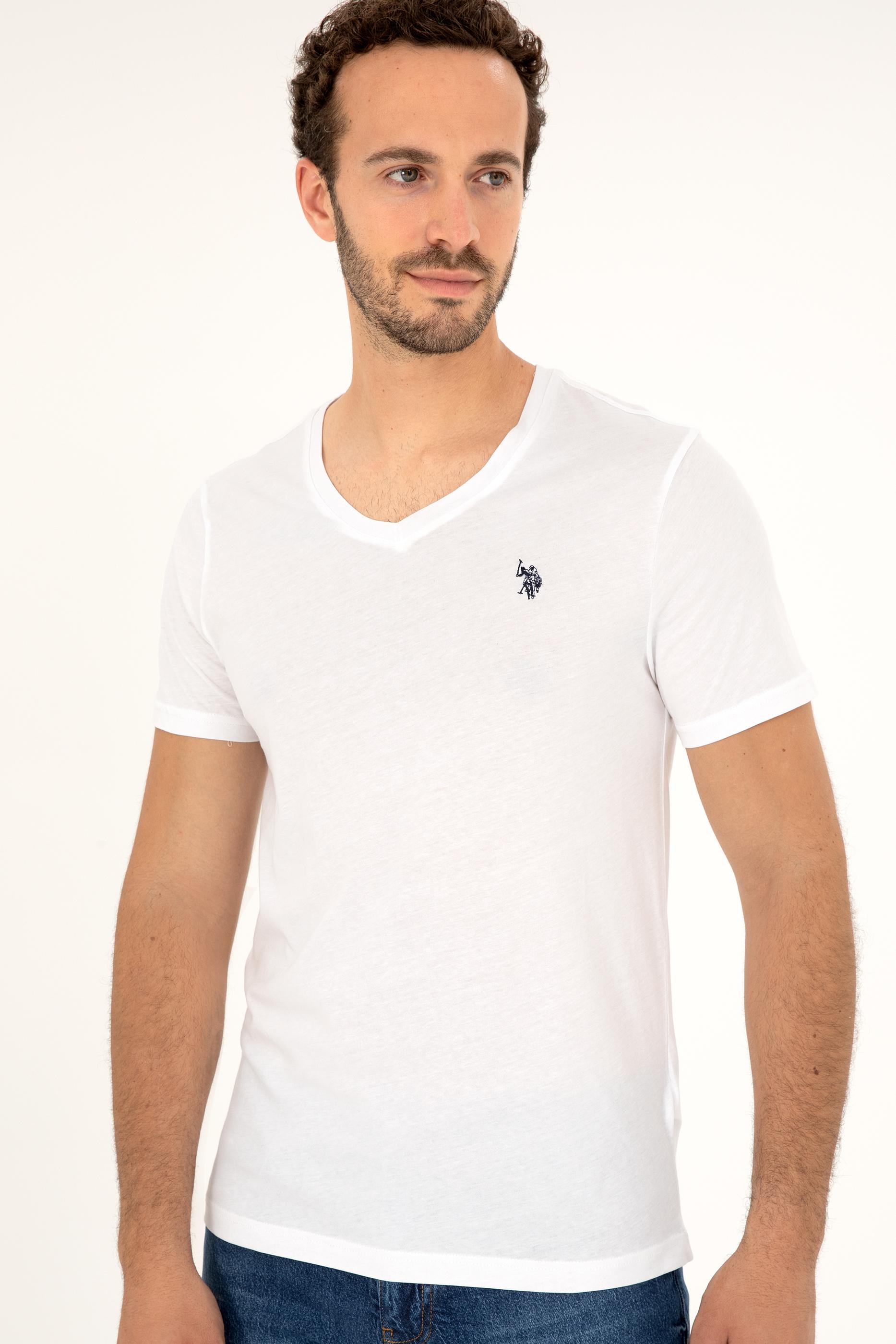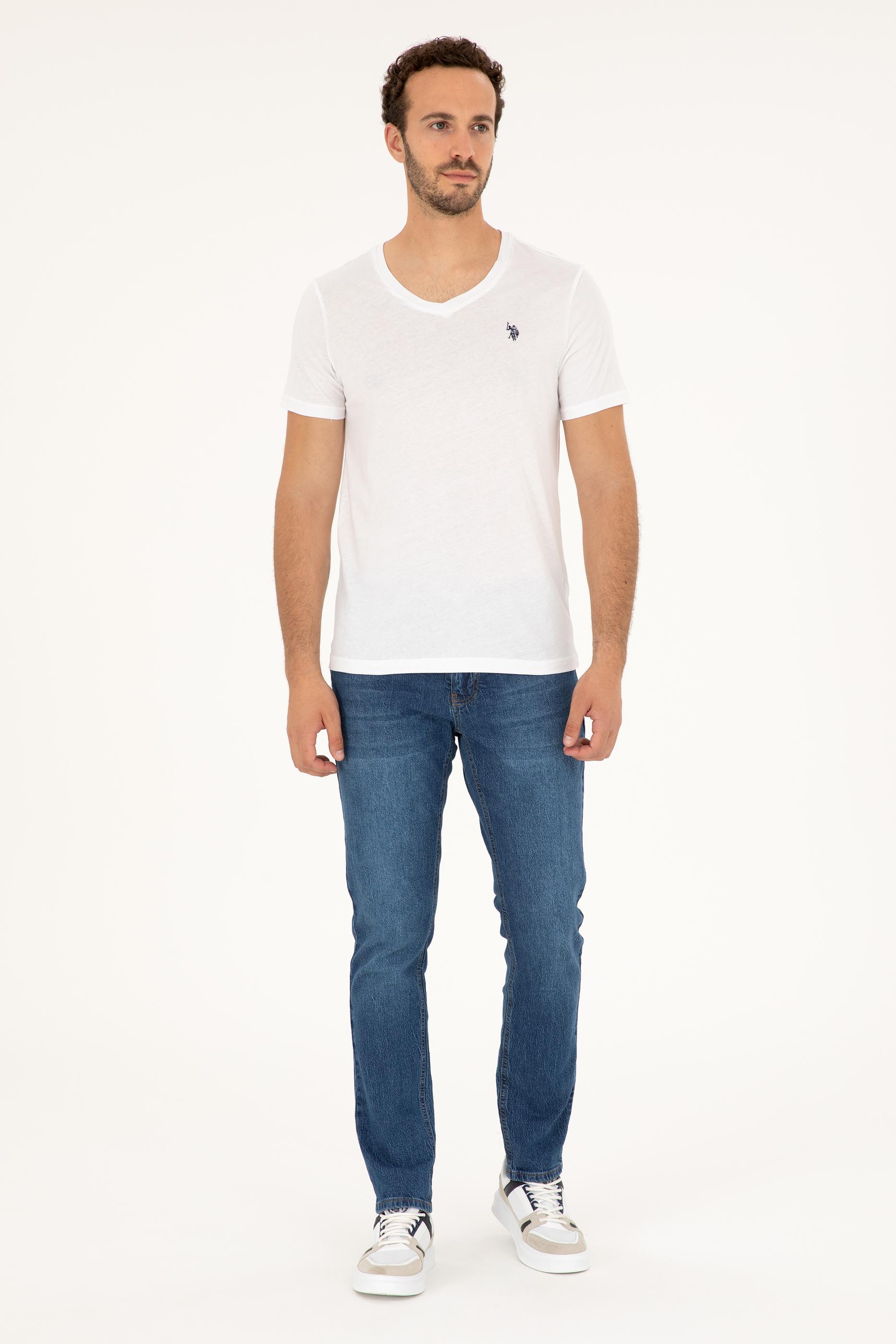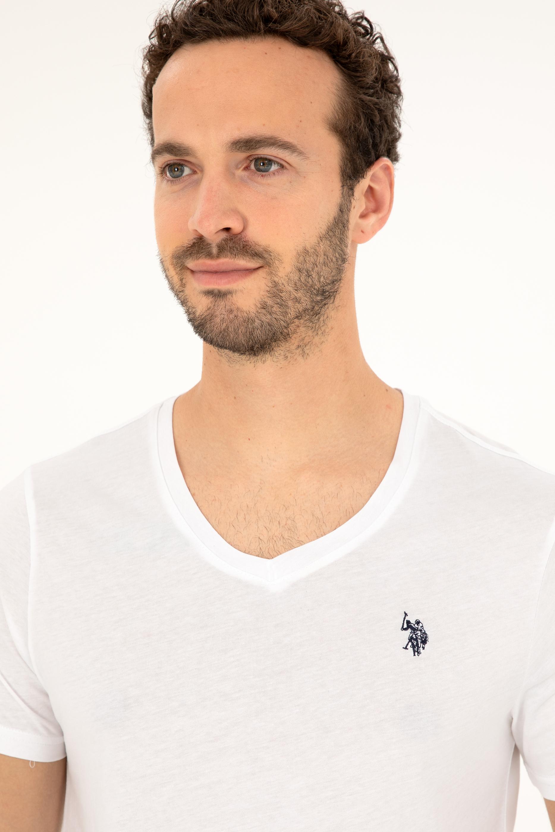 Erkek Slim Fit V Yaka Beyaz Basic Tişört