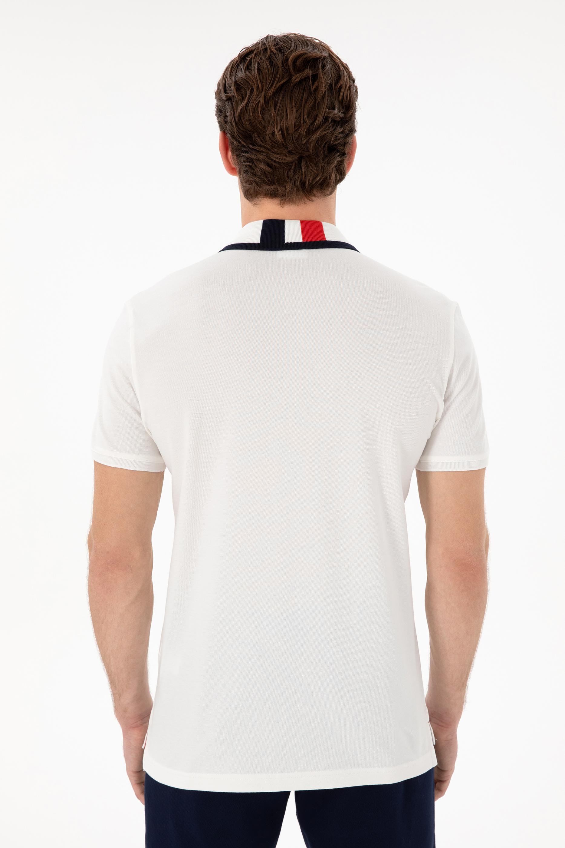 - Erkek Slim Fit Polo Yaka Beyaz Basic Tişört