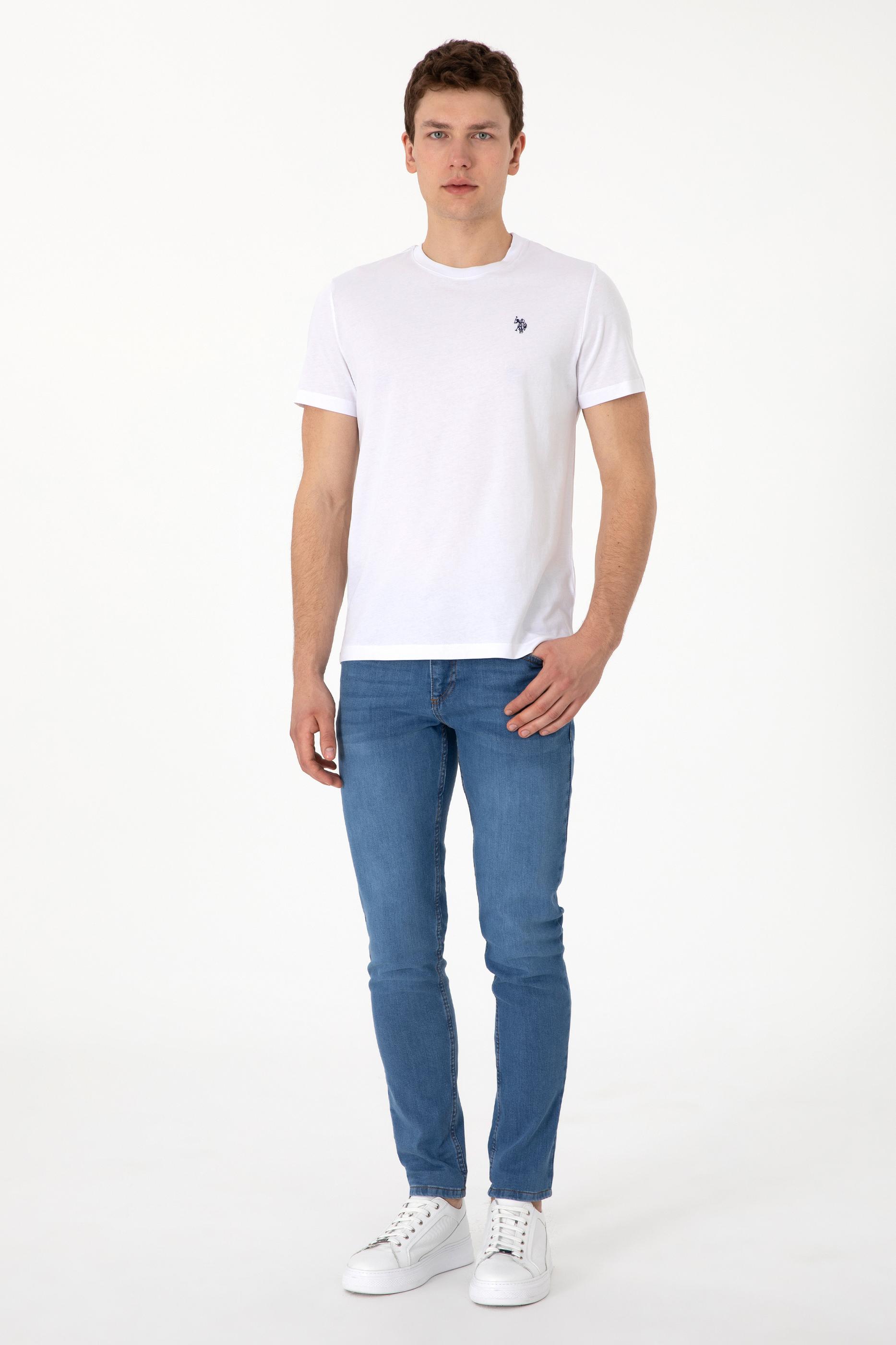 Temiz ve sofistike bir görünüm arayanlar için tasarlanan bu beyaz U.S. Polo Assn. tişört, sade şıklığın simgesi niteliğindedir. %100 pamuklu kumaşı sayesinde doğal hava geçirgenliği sunarak, sıcak günlerde dahi ferah bir kullanım sağlar. Regular fit kalıbı vücuda dengeli bir oturuş kazandırırken, esnek yapısıyla hareket özgürlüğünü destekler. Göğüs hizasına zarifçe işlenmiş lacivert logo, markanın ikonik mirasını çağdaş çizgilerle buluşturur. Bisiklet yaka detayı ise ürünü sade ve klasik kılarak, günlük stilde olduğu kadar smart casual kombinlerde de rahatlıkla tercih edilebilir. Denim pantolonlar, kanvas şortlar ya da basic sneaker’larla kolayca uyum sağlayan bu model, gardırobunuza zamansız ve işlevsel bir katkı sunar.