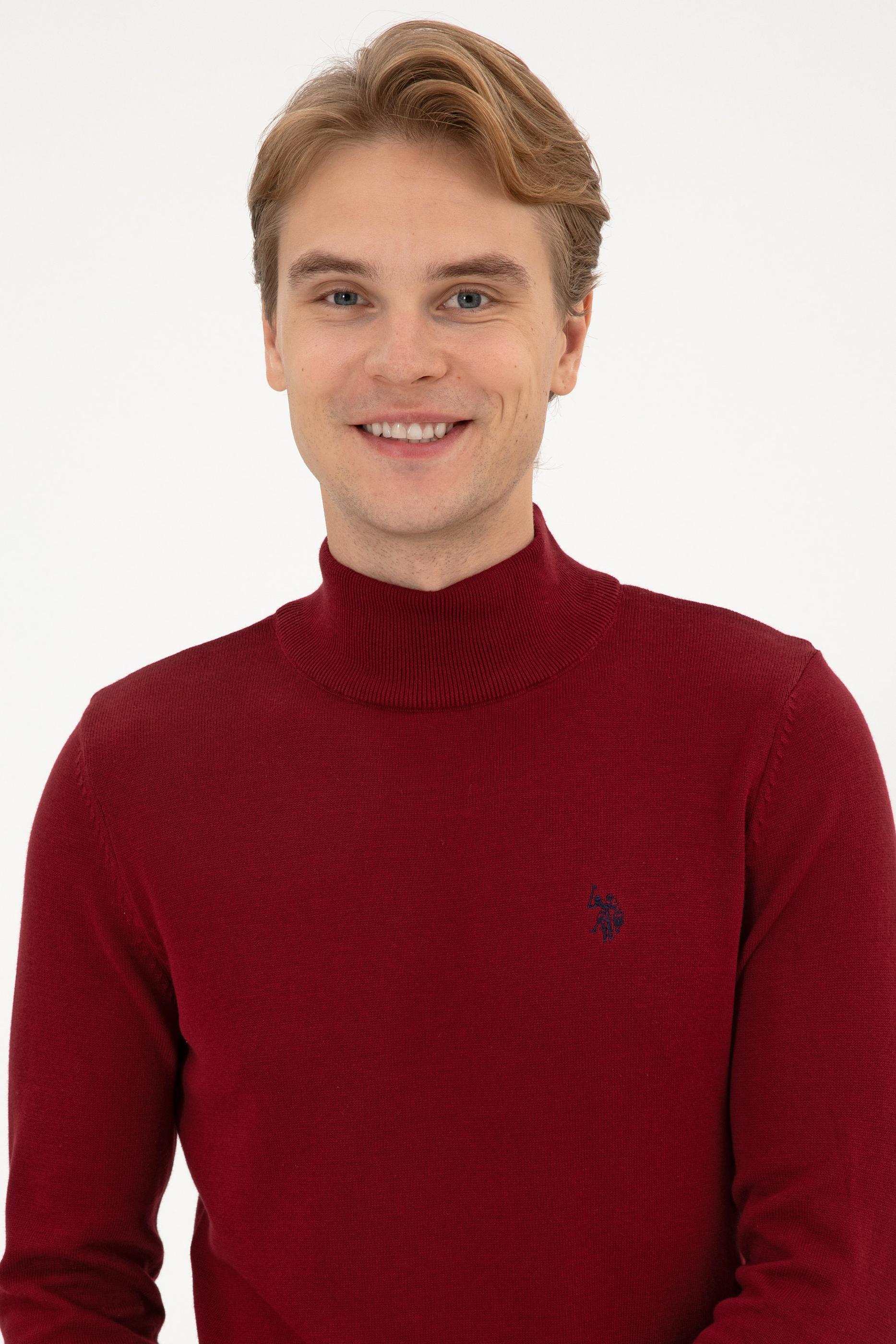 Erkek Slim Fit Boğazlı Bordo Basic Kazak