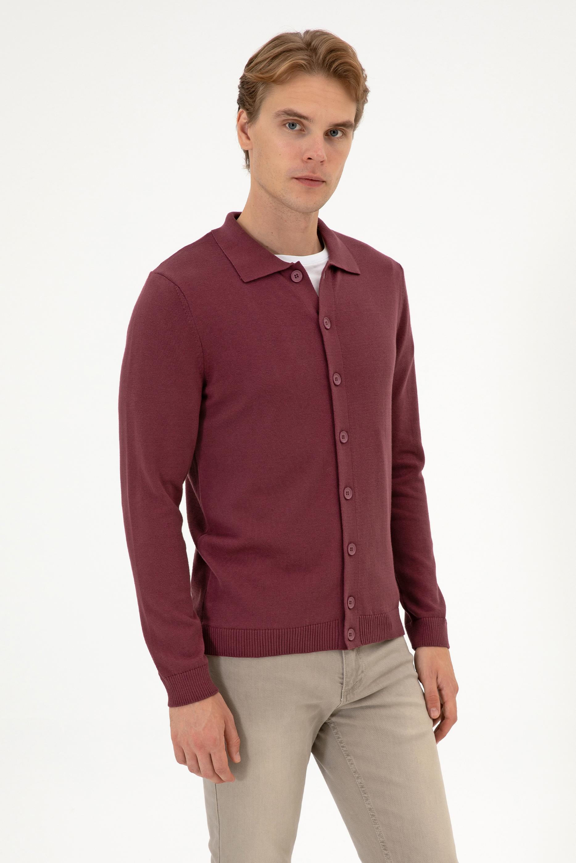 Erkek Bordo Basic Triko Hırka