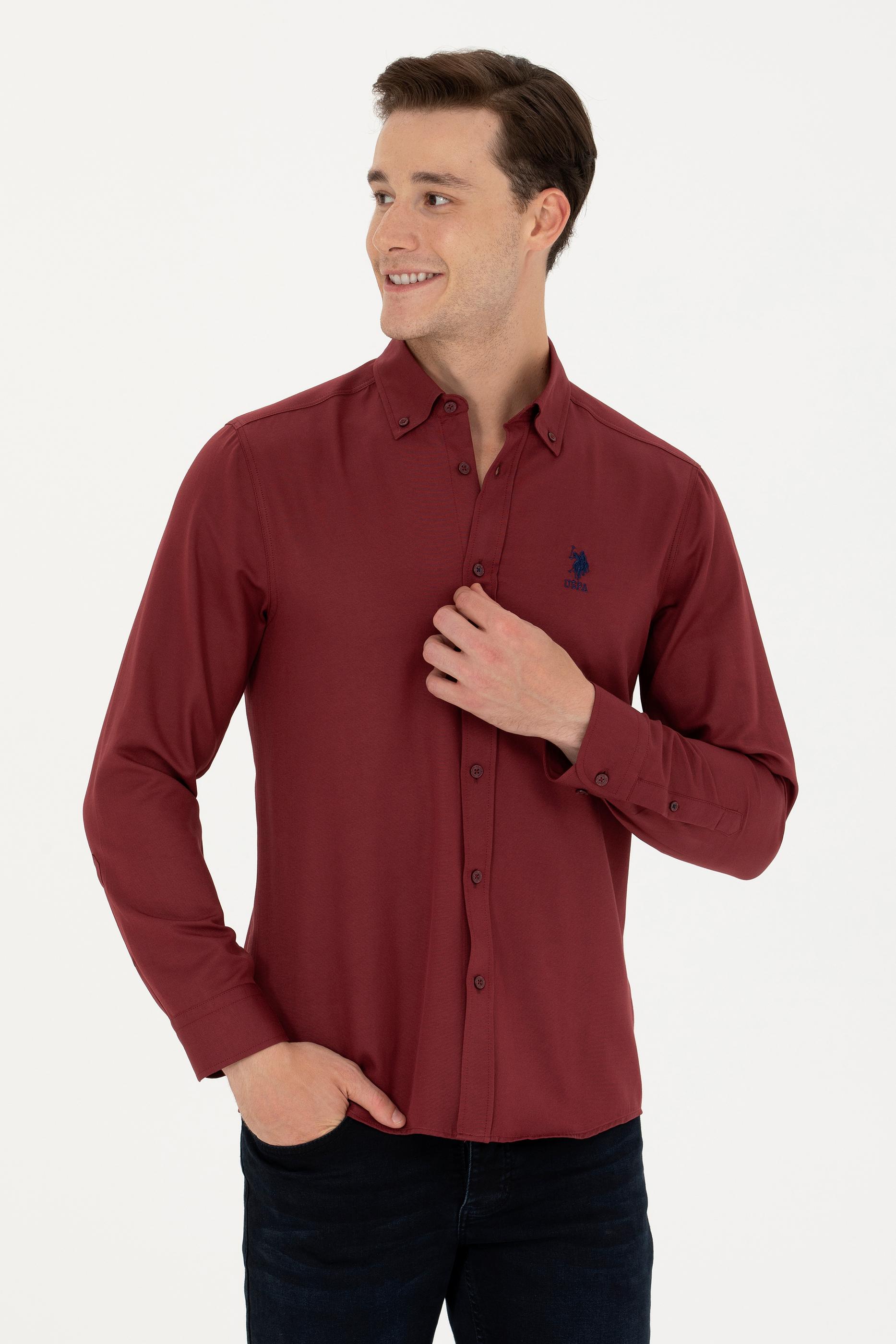 Erkek Bordo Uzun Kollu Basic Gömlek
