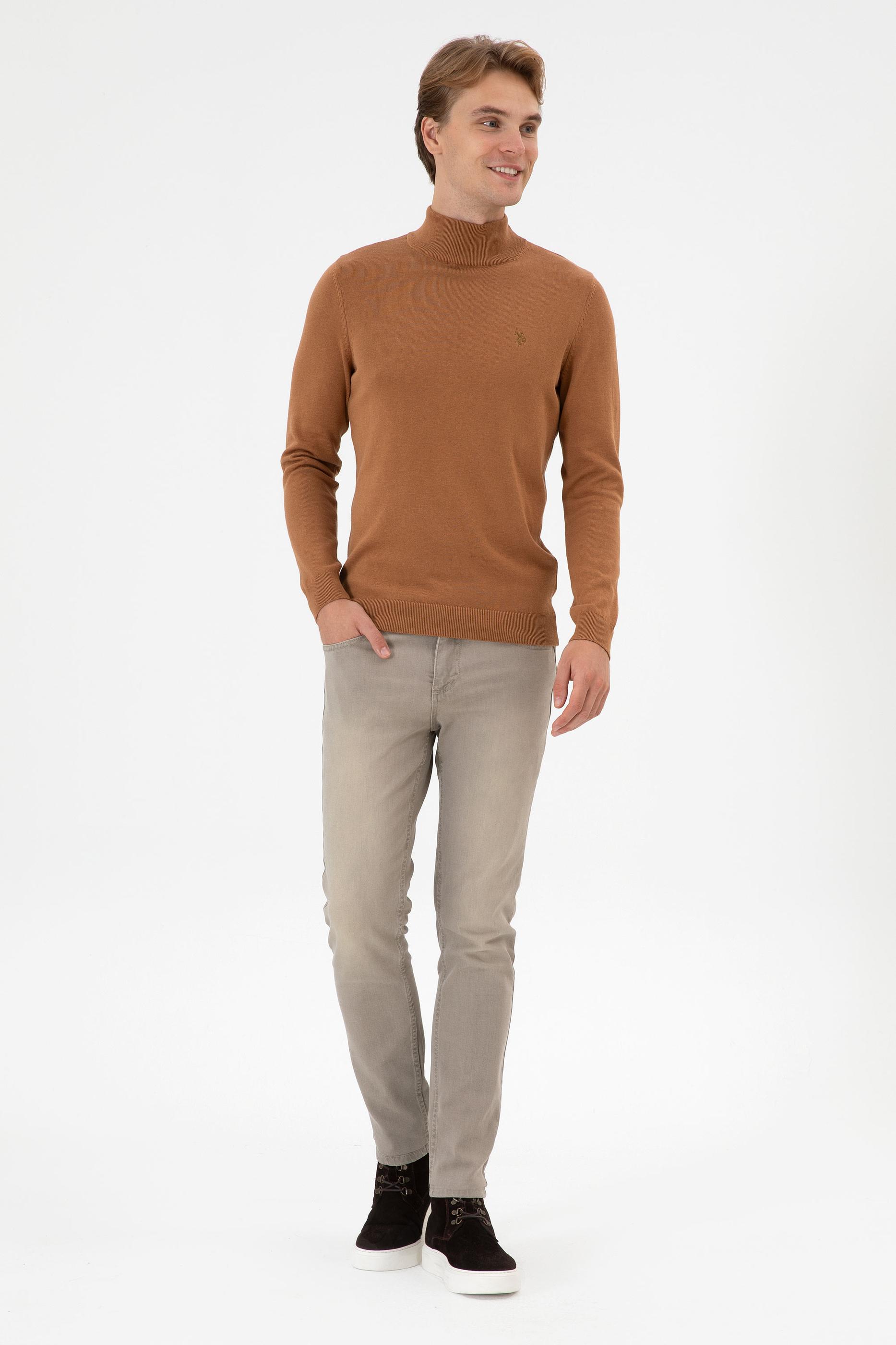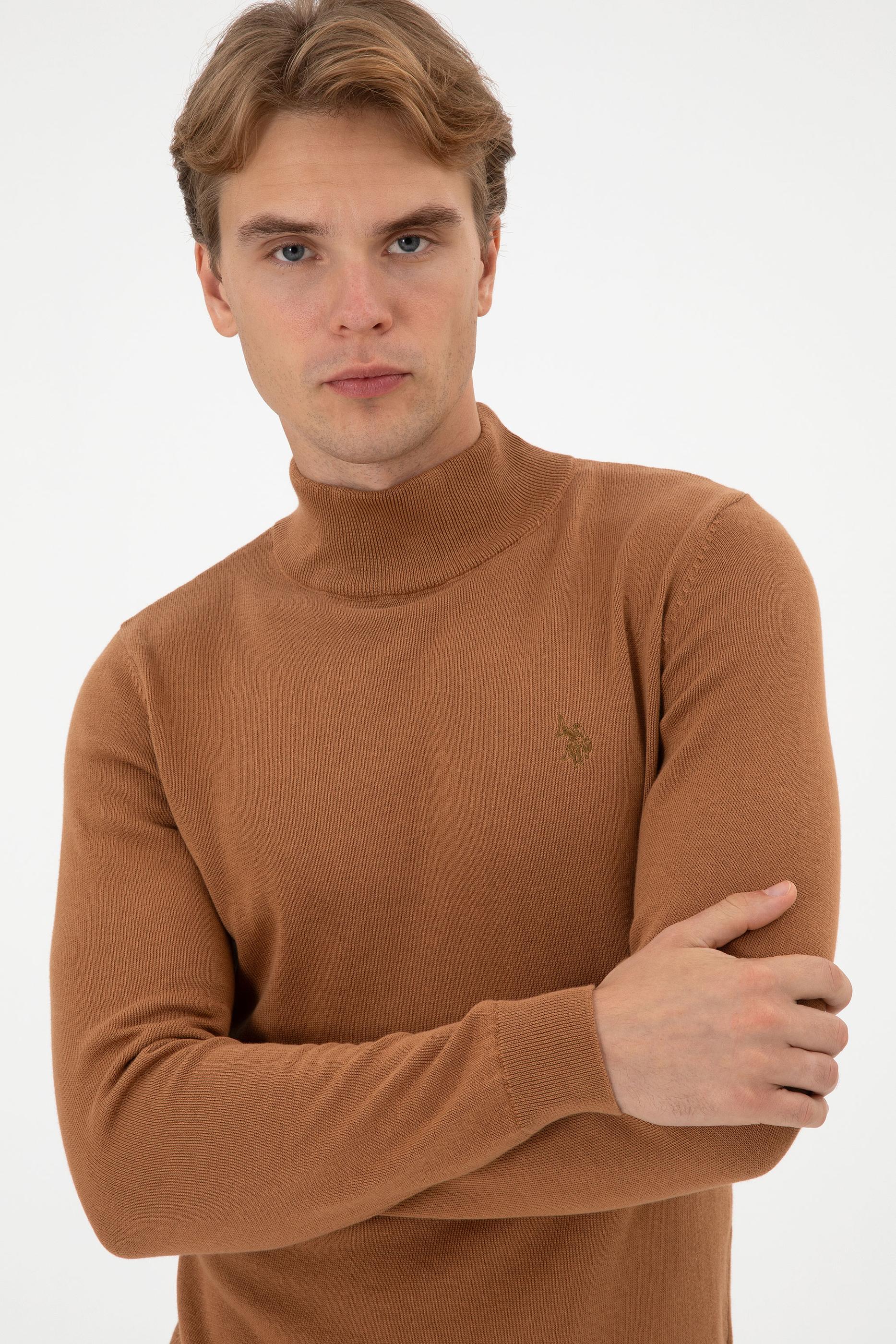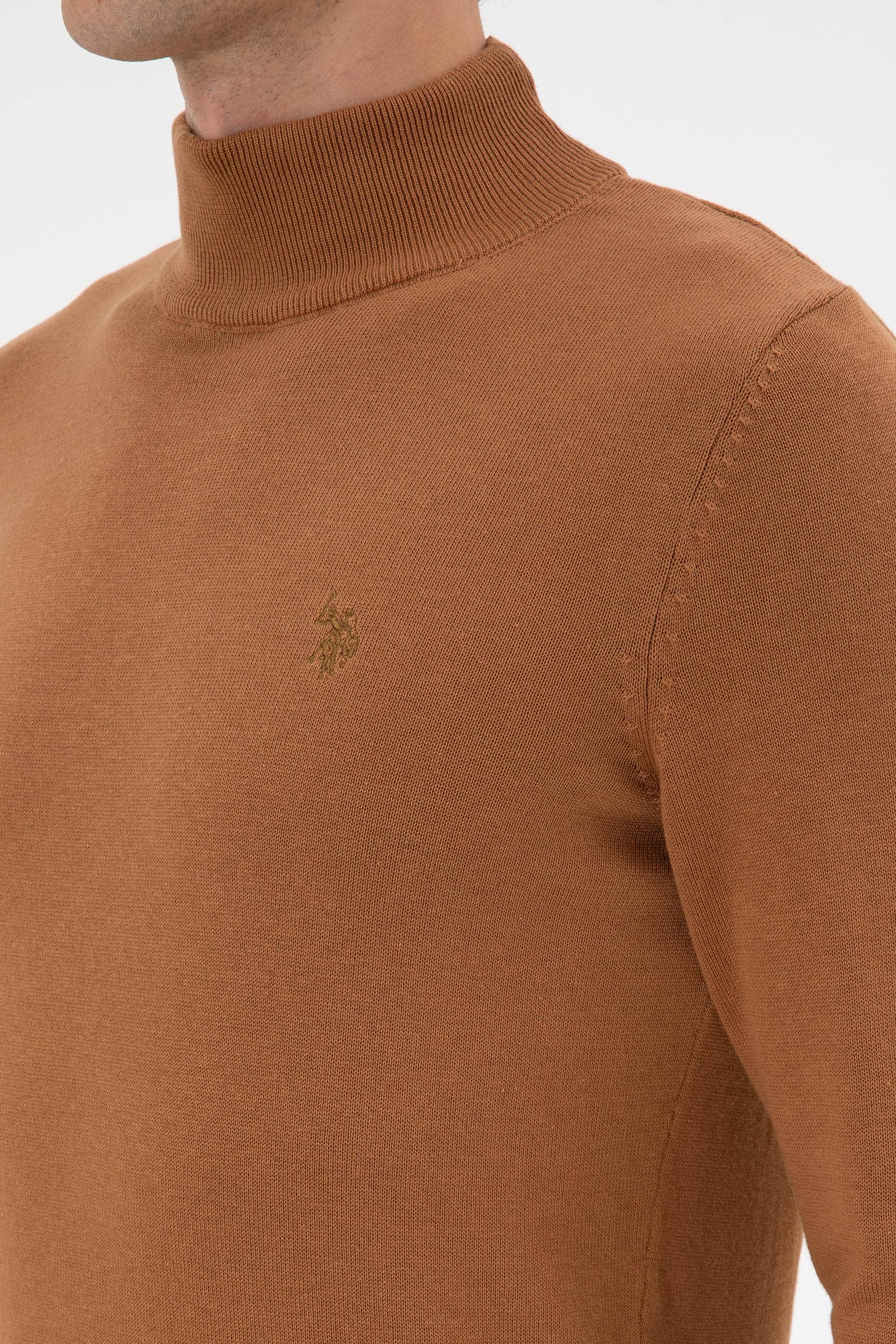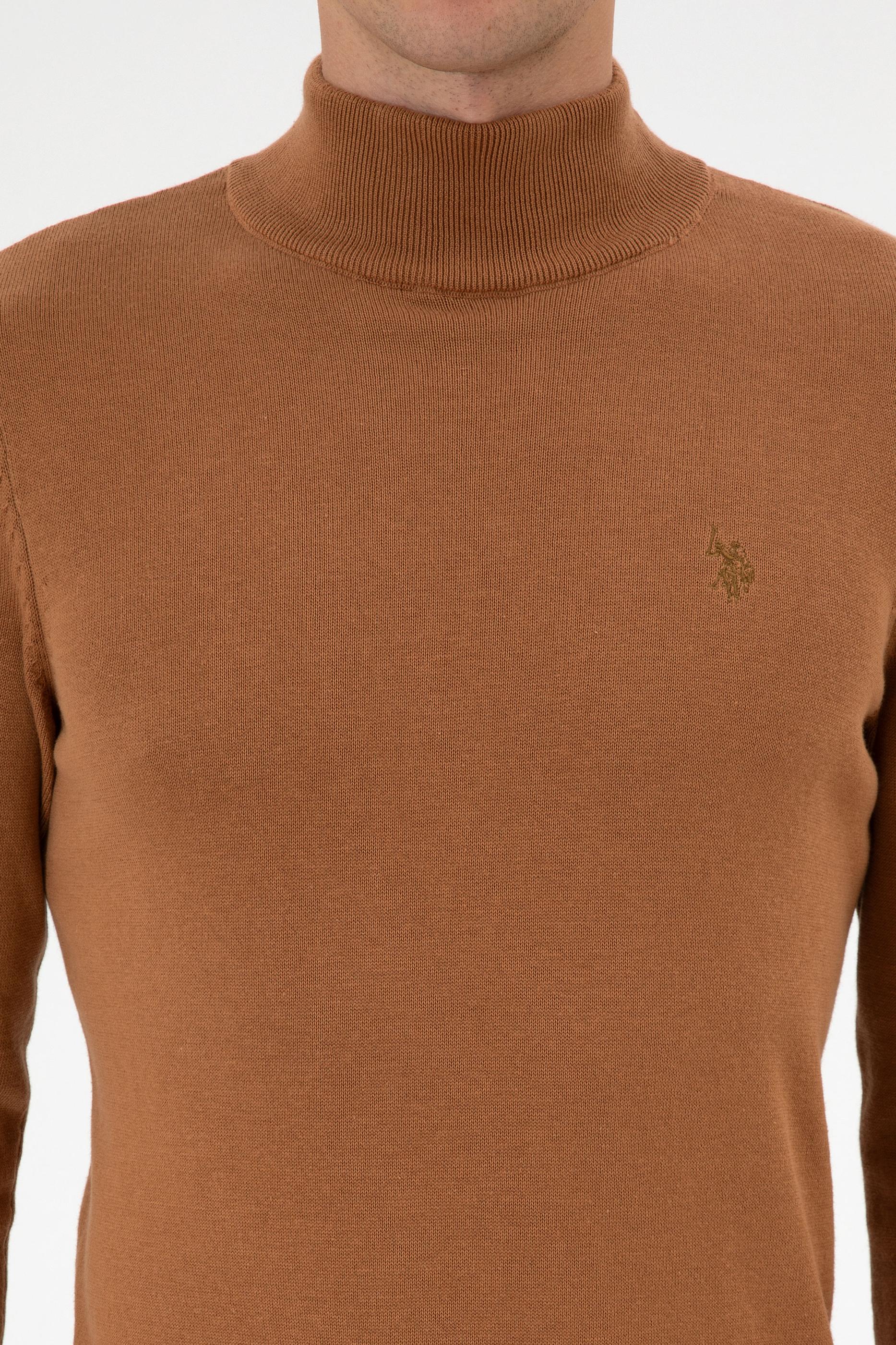 - Erkek Slim Fit Boğazlı Camel Basic Kazak
