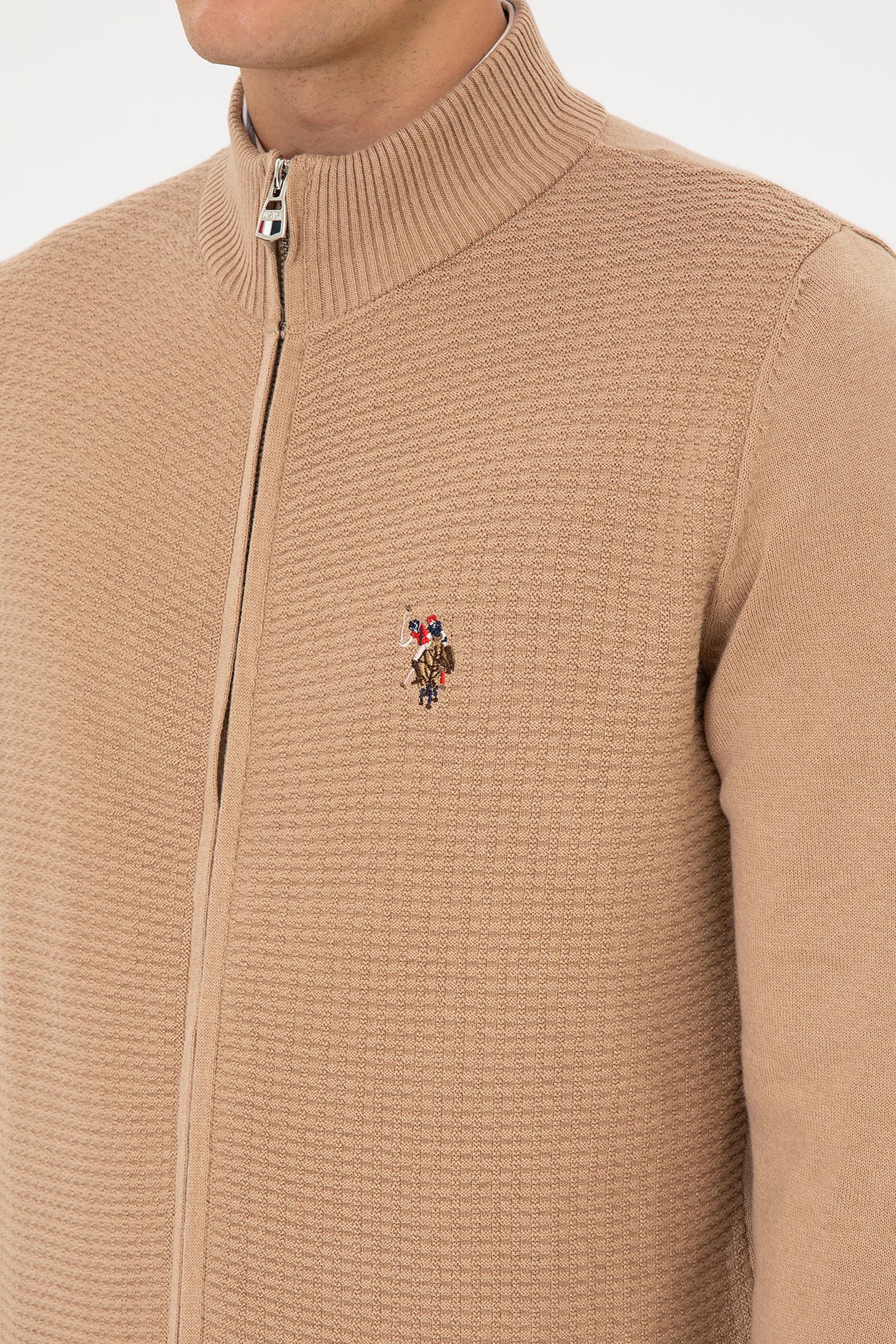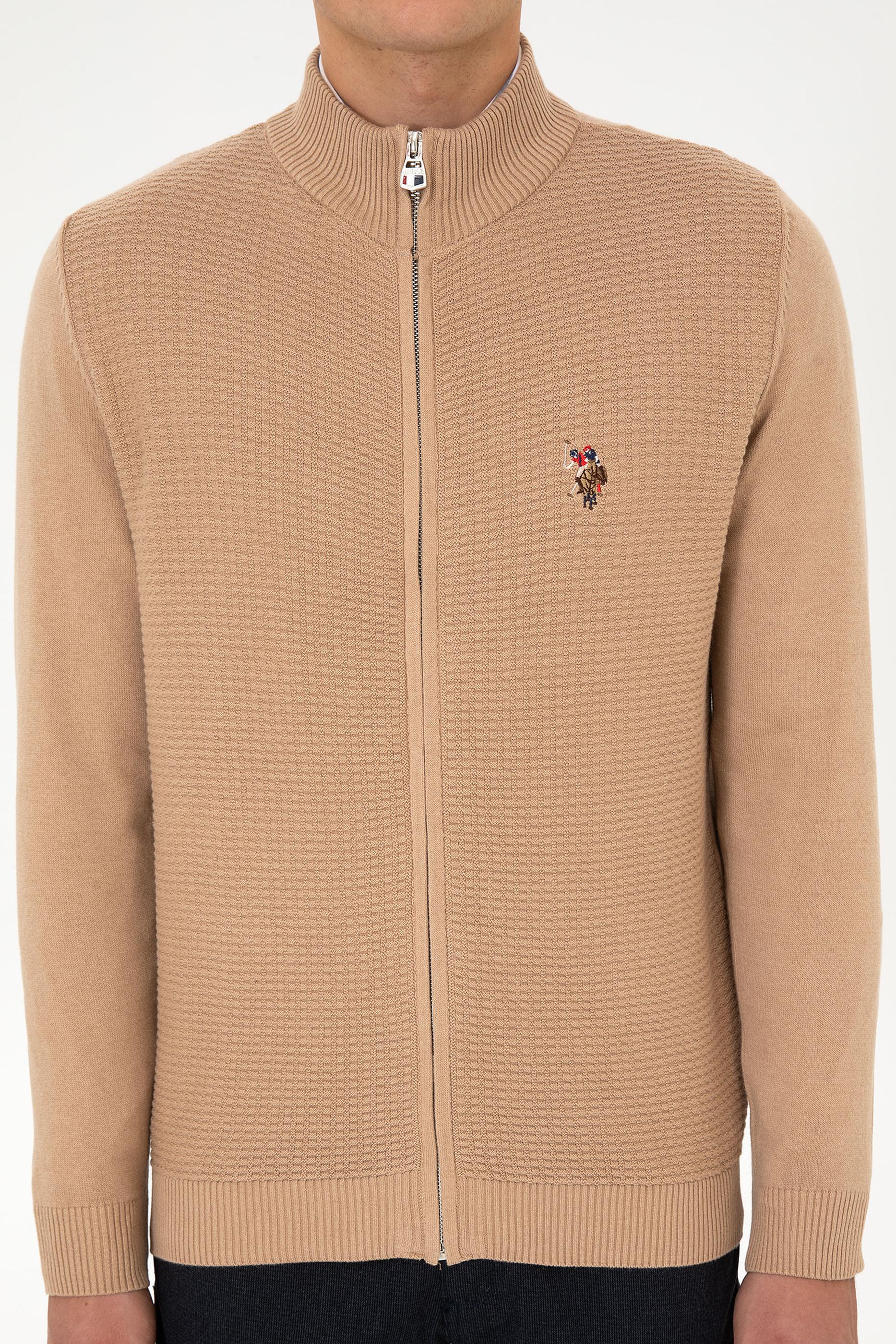 Erkek Camel Melanj Basic Triko Hırka