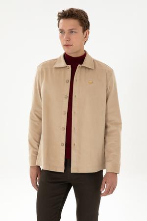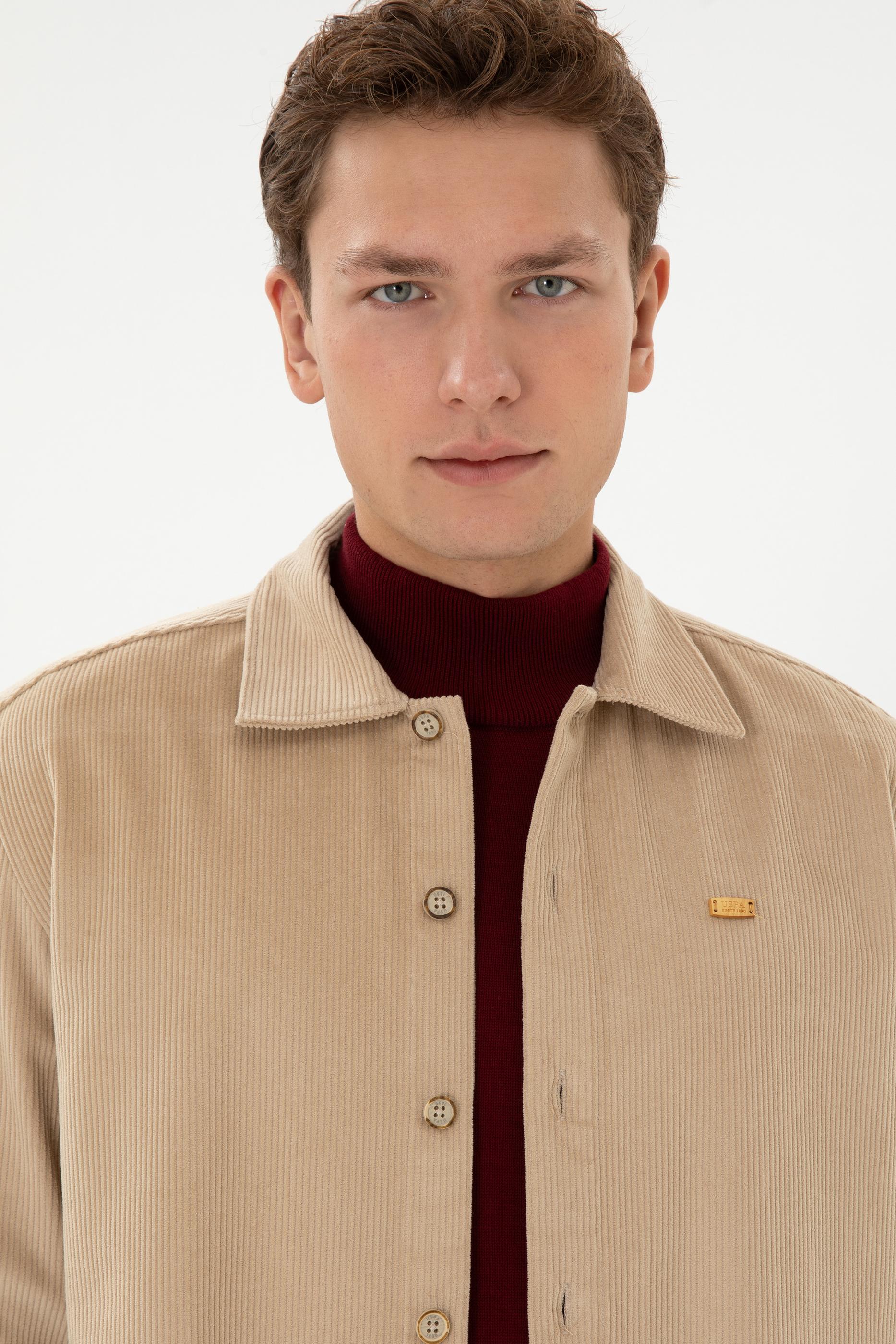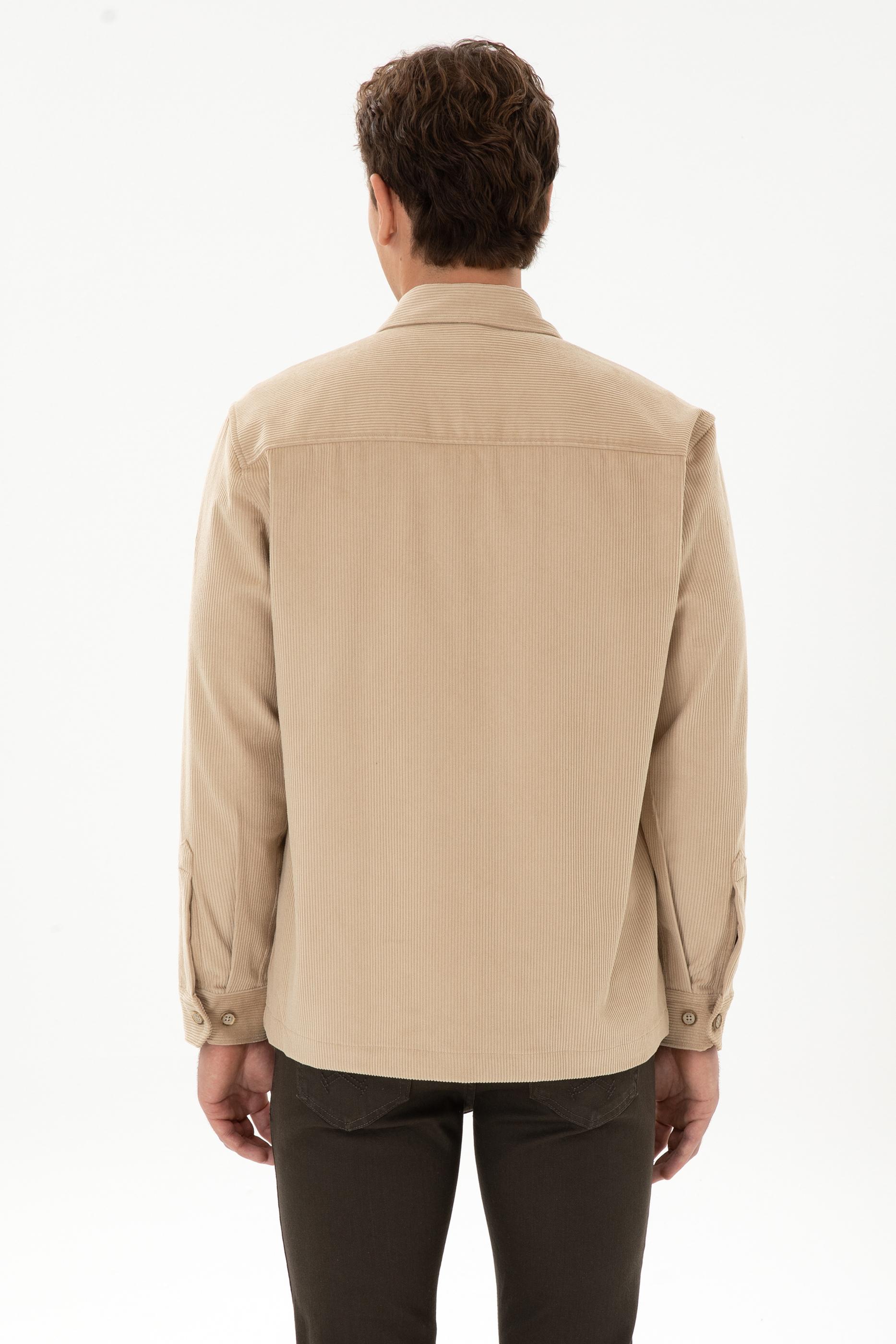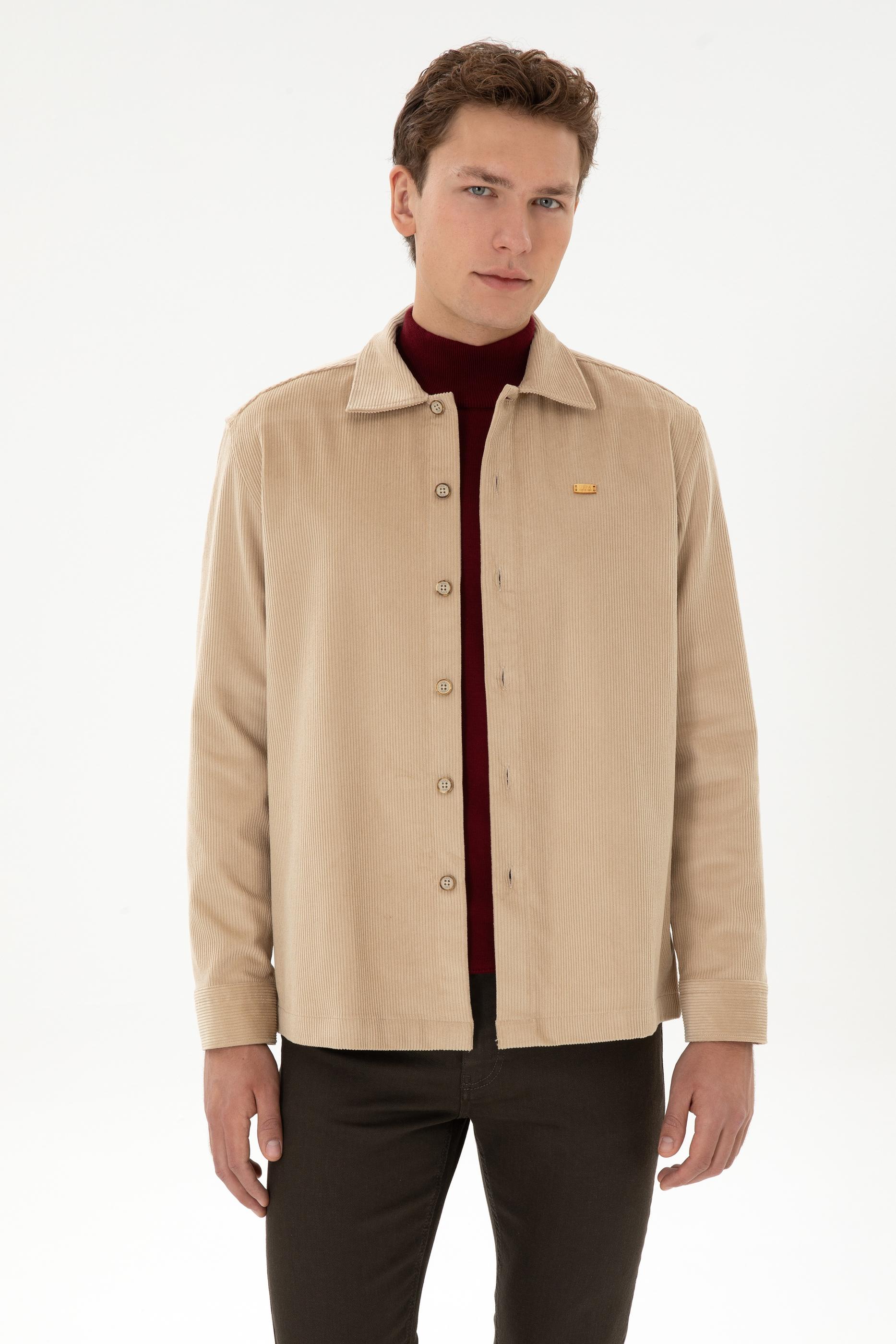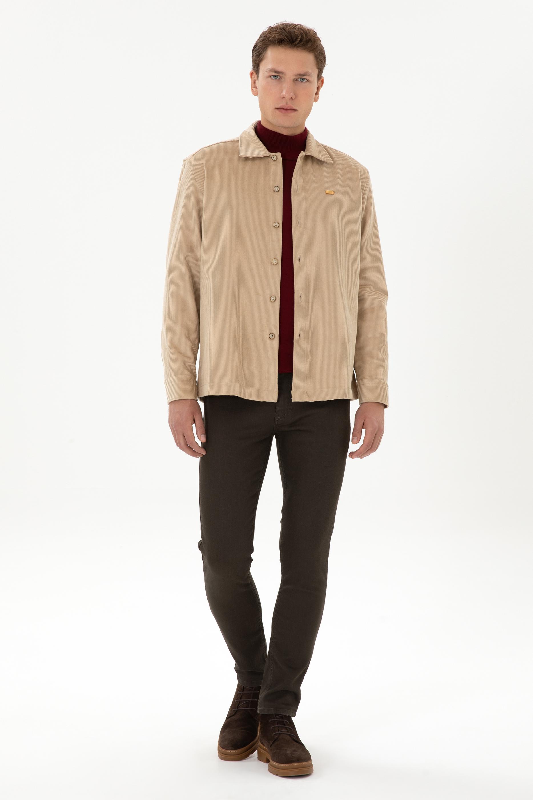 - Erkek Camel Uzun Kollu Kadife Gömlek
