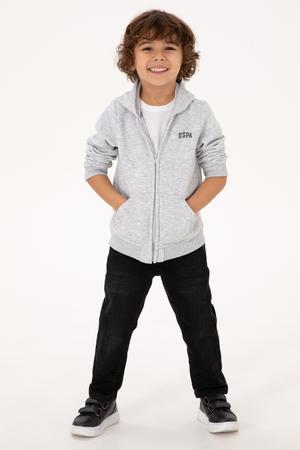 - Erkek Çocuk Açık Gri Fermuarlı Şardonlu Kapüşonlu Örme Hırka