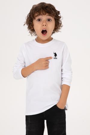 Erkek Çocuk Beyaz Basic Bisiklet Yaka Sweatshirt