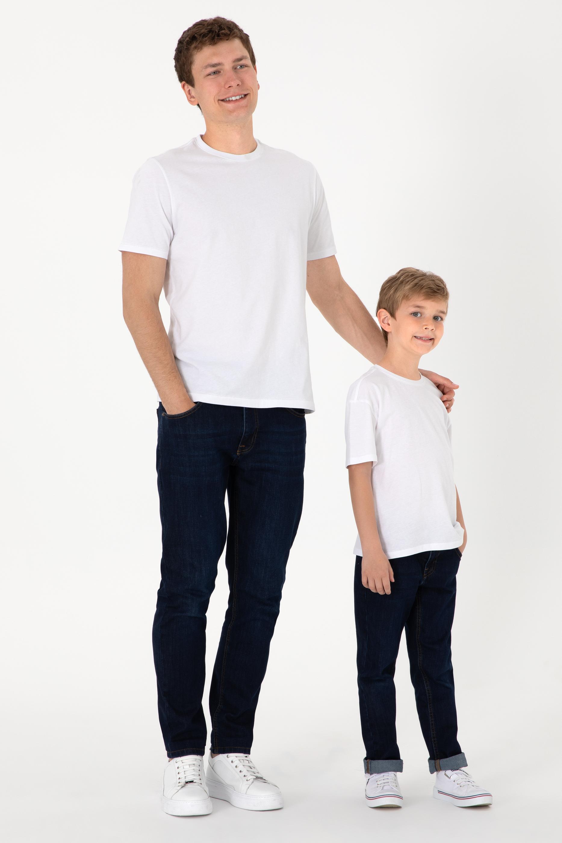 - Erkek Çocuk Beyaz Comfort Bisiklet Yaka Tişört