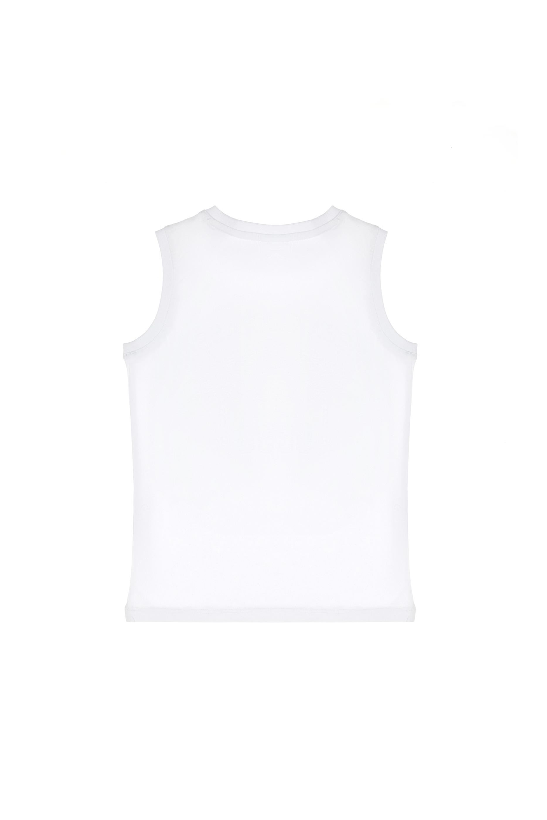 - Erkek Çocuk Beyaz Kolsuz Bisikelt Yaka Tişört