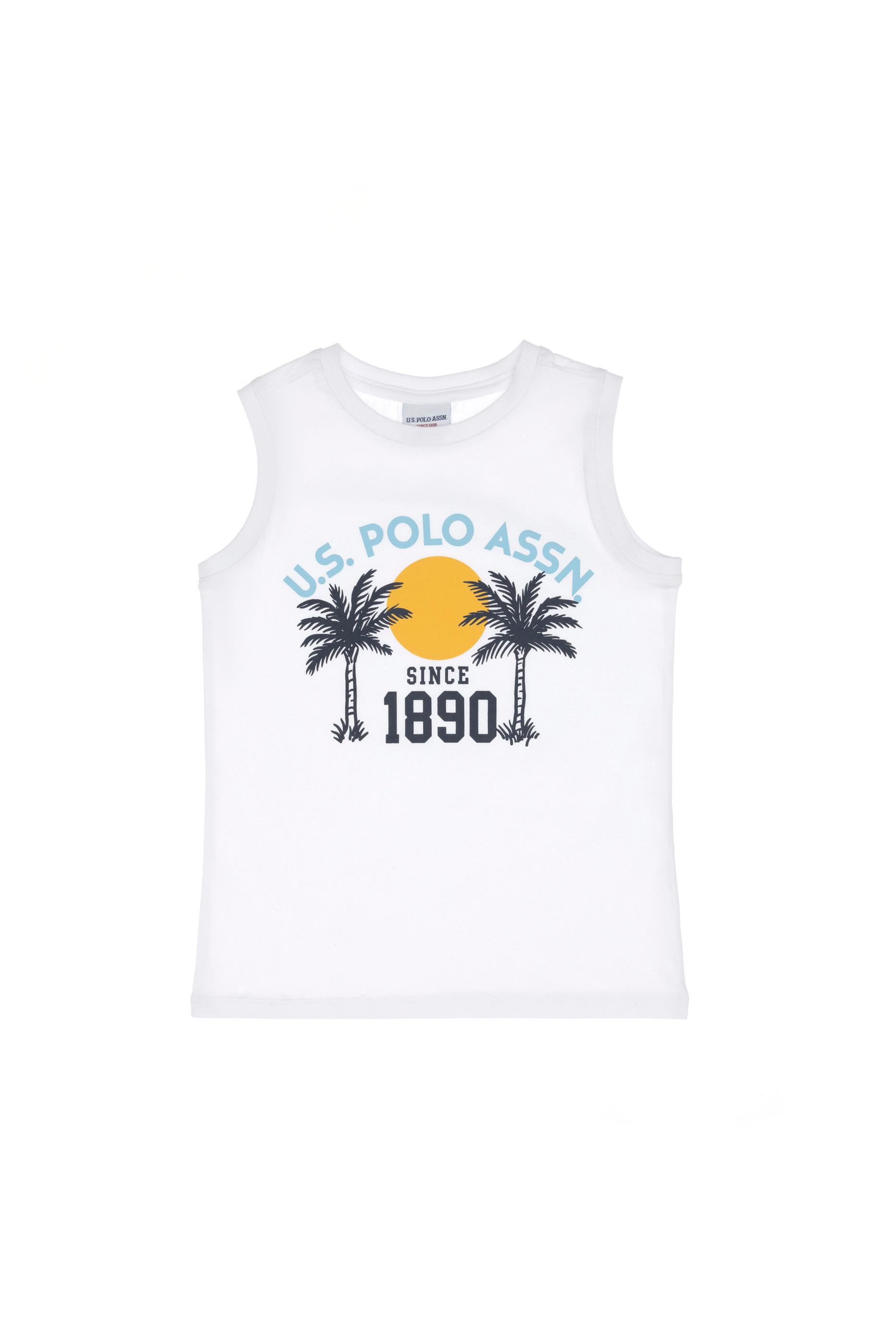 Erkek Çocuk Beyaz Kolsuz Bisikelt Yaka Tişört