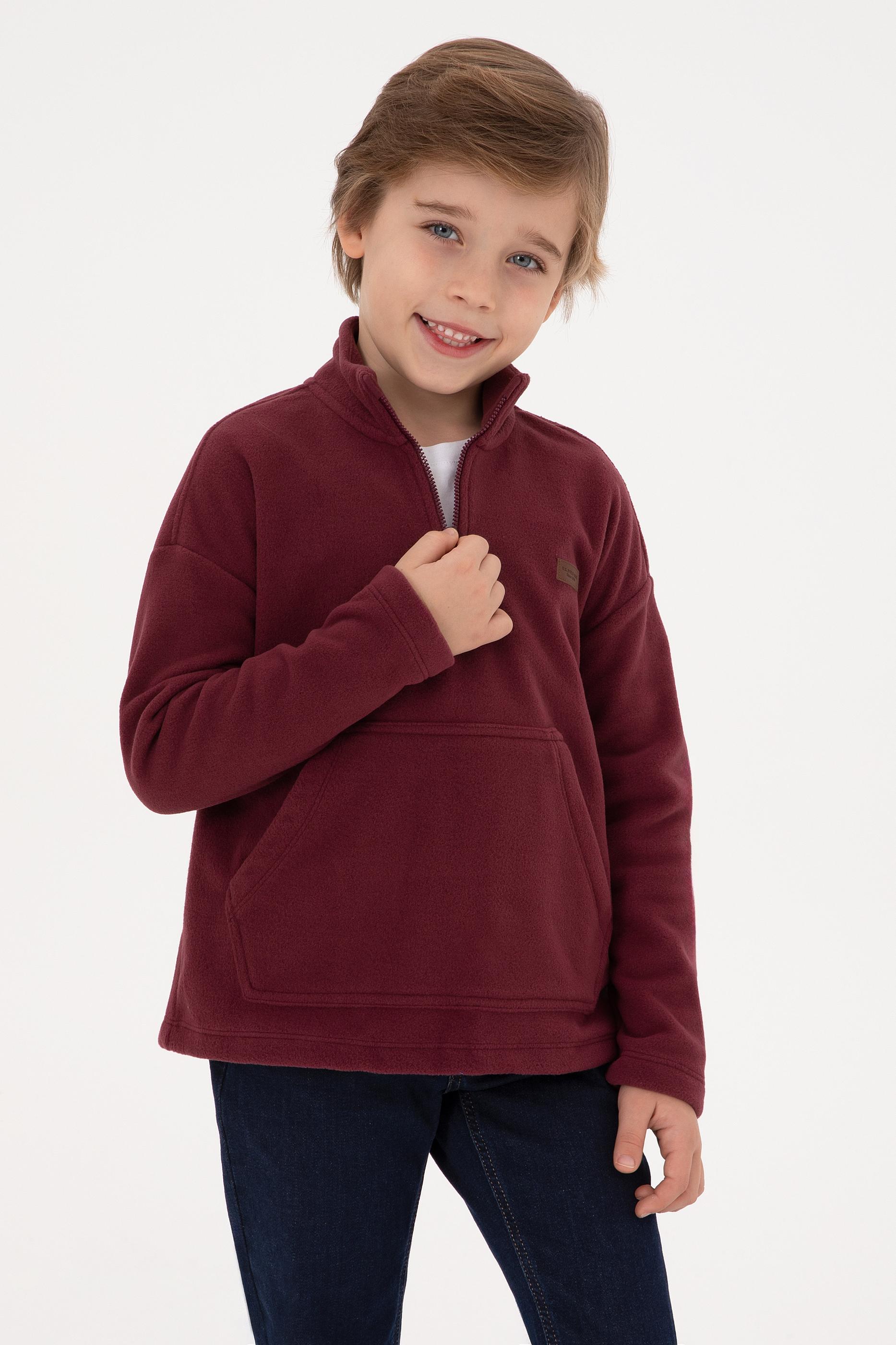 - Erkek Çocuk Bordo Yarım Fermuarlı Polar Sweatshirt