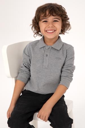 - Erkek Çocuk Gri Melanj Basic Polo Yaka Sweatshirt
