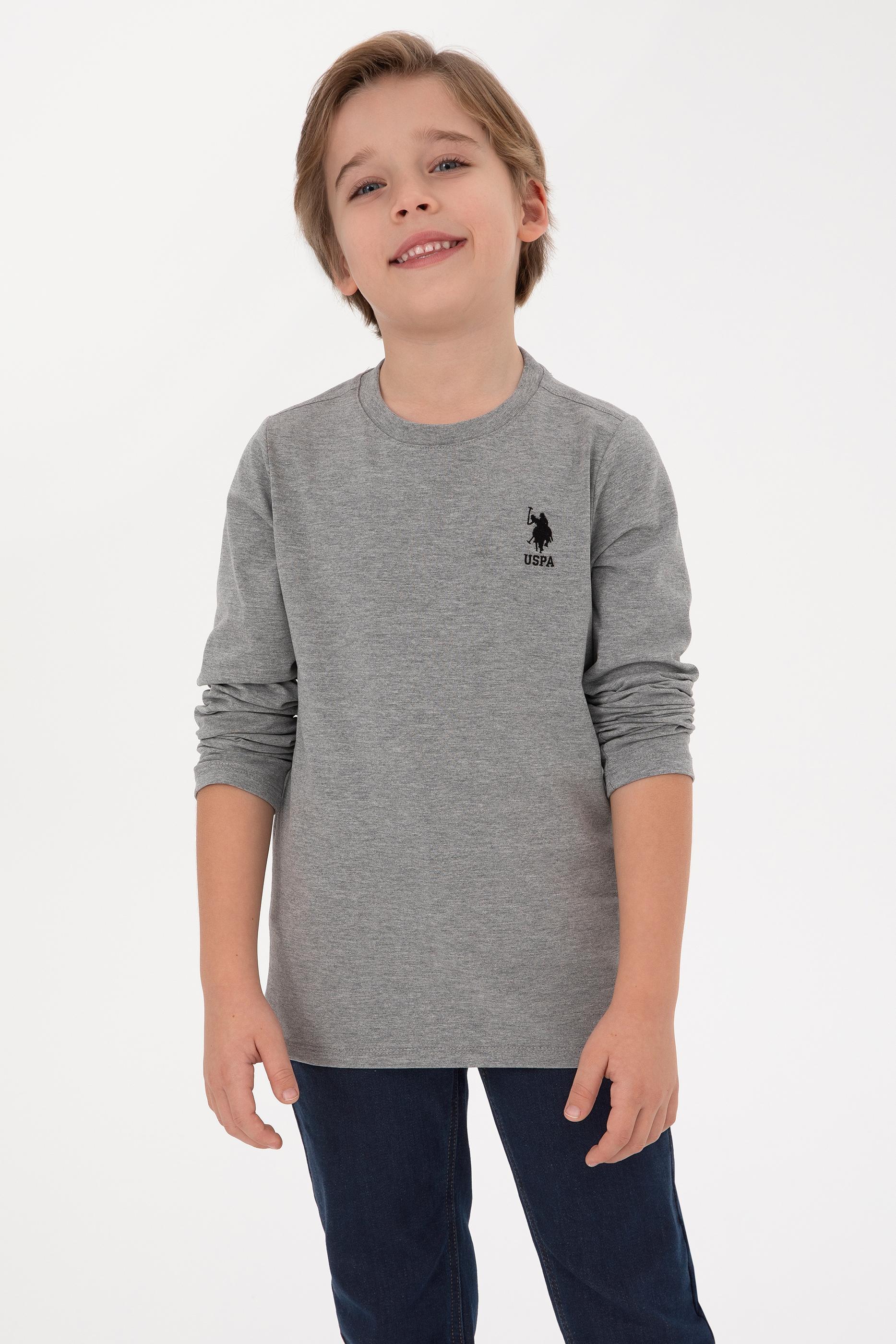 Erkek Çocuk Gri Melanj Basic Bisiklet Yaka Sweatshirt