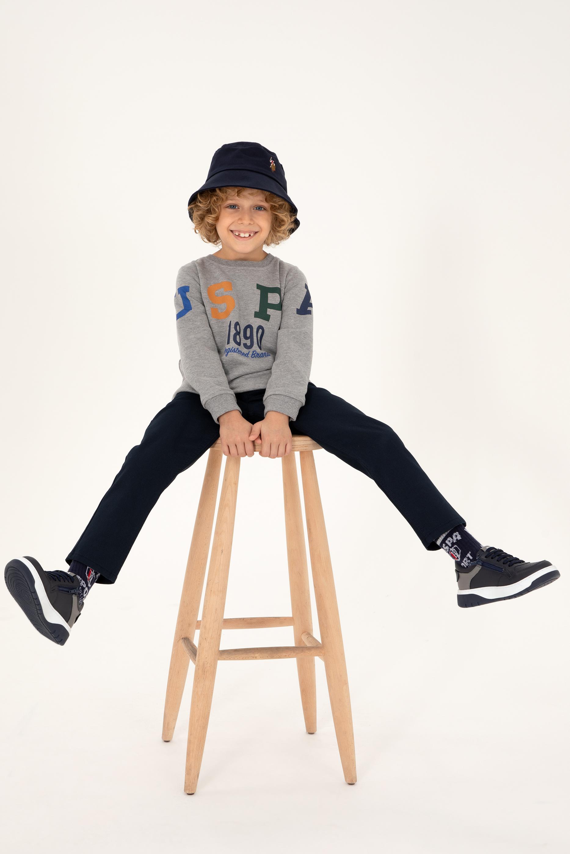 - Erkek Çocuk Gri Melanj Bisiklet Yaka Sweathsirt