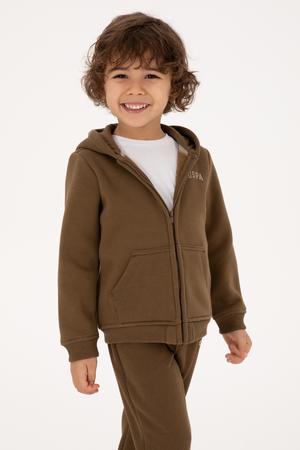 - Erkek Çocuk Haki Fermuarlı Şardonlu Kapüşonlu Örme Hırka