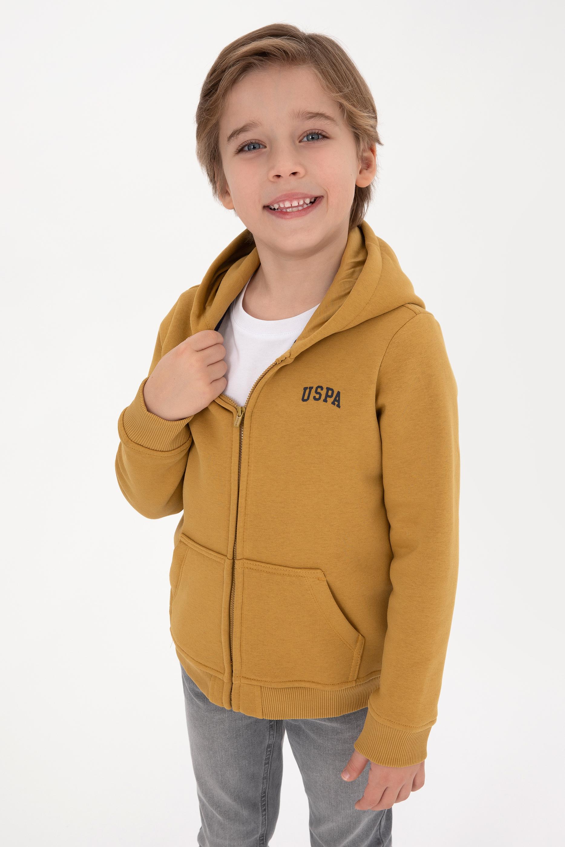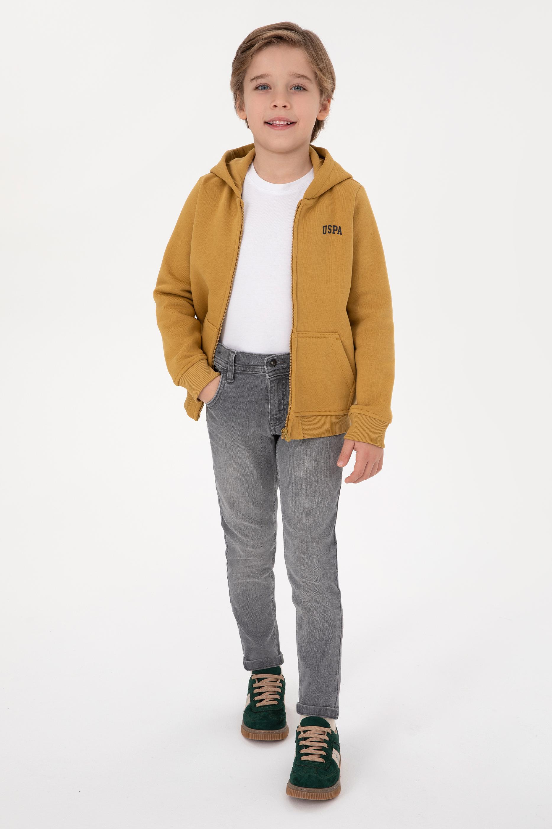 - Erkek Çocuk Hardal Fermuarlı Şardonlu Kapüşonlu Örme Hırka