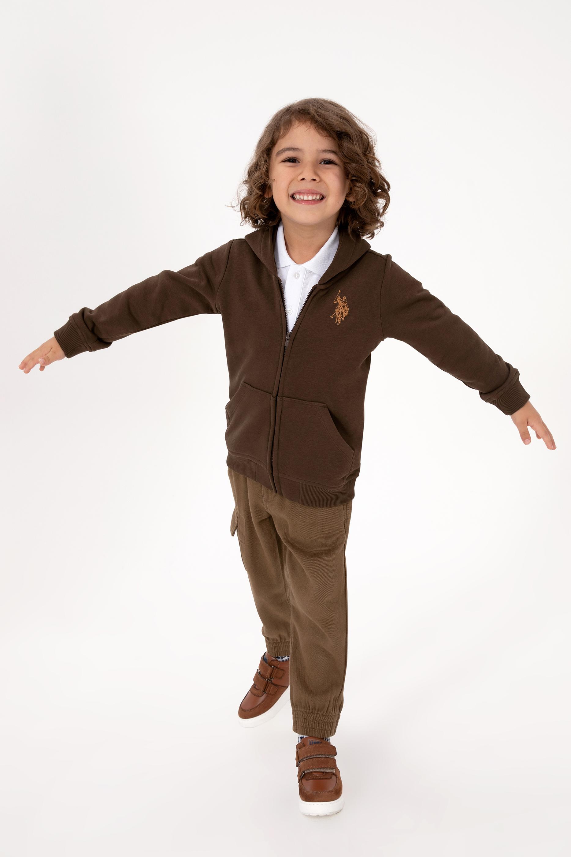 - Erkek Çocuk Kahverengi Fermuarlı Kapüşonlu Sweatshirt