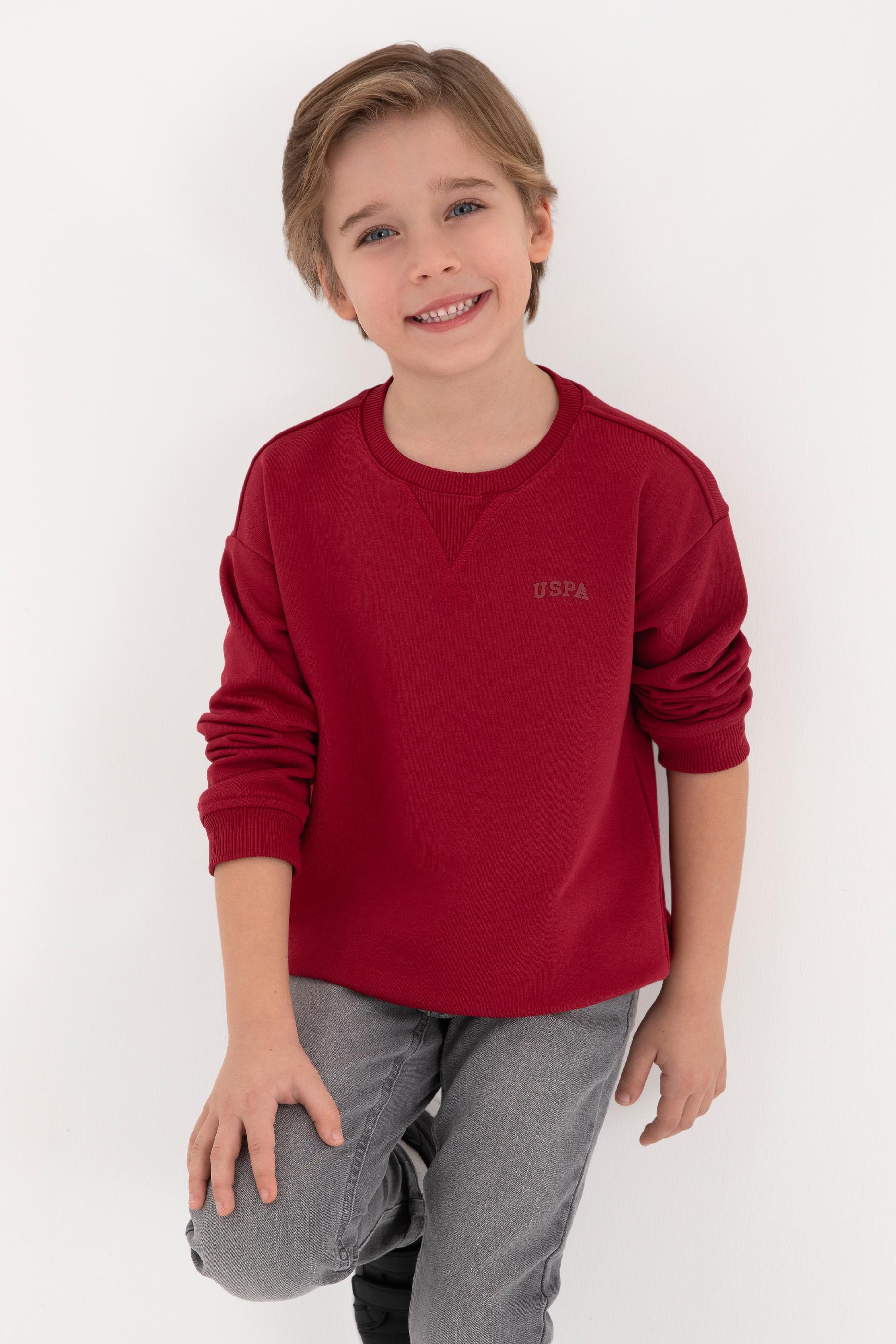 - Erkek Çocuk Koyu Frambuaz Bisiklet Yaka Basic Sweatshirt