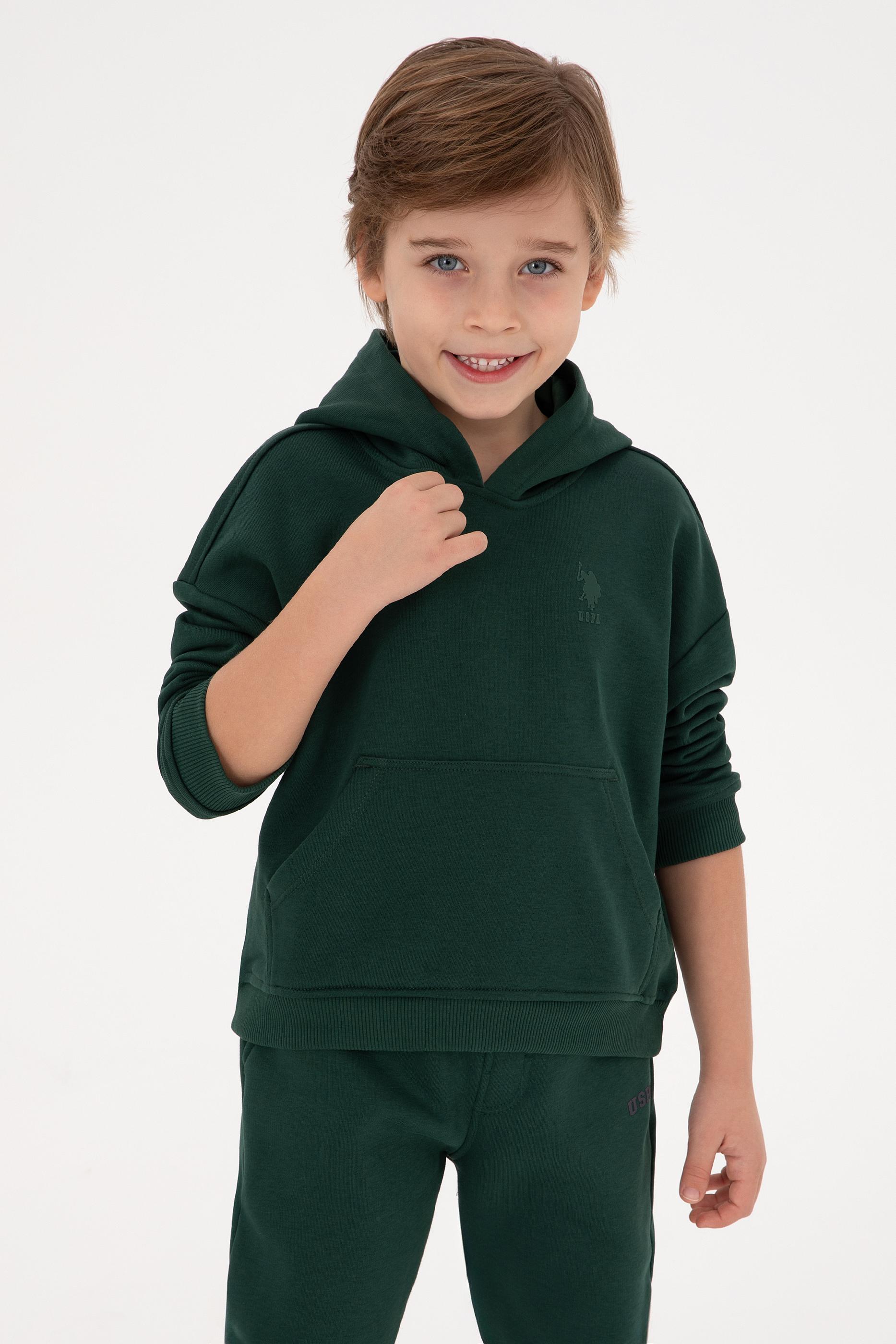 - Erkek Çocuk Koyu Yeşil Kapüşonlu Basic Sweatshirt