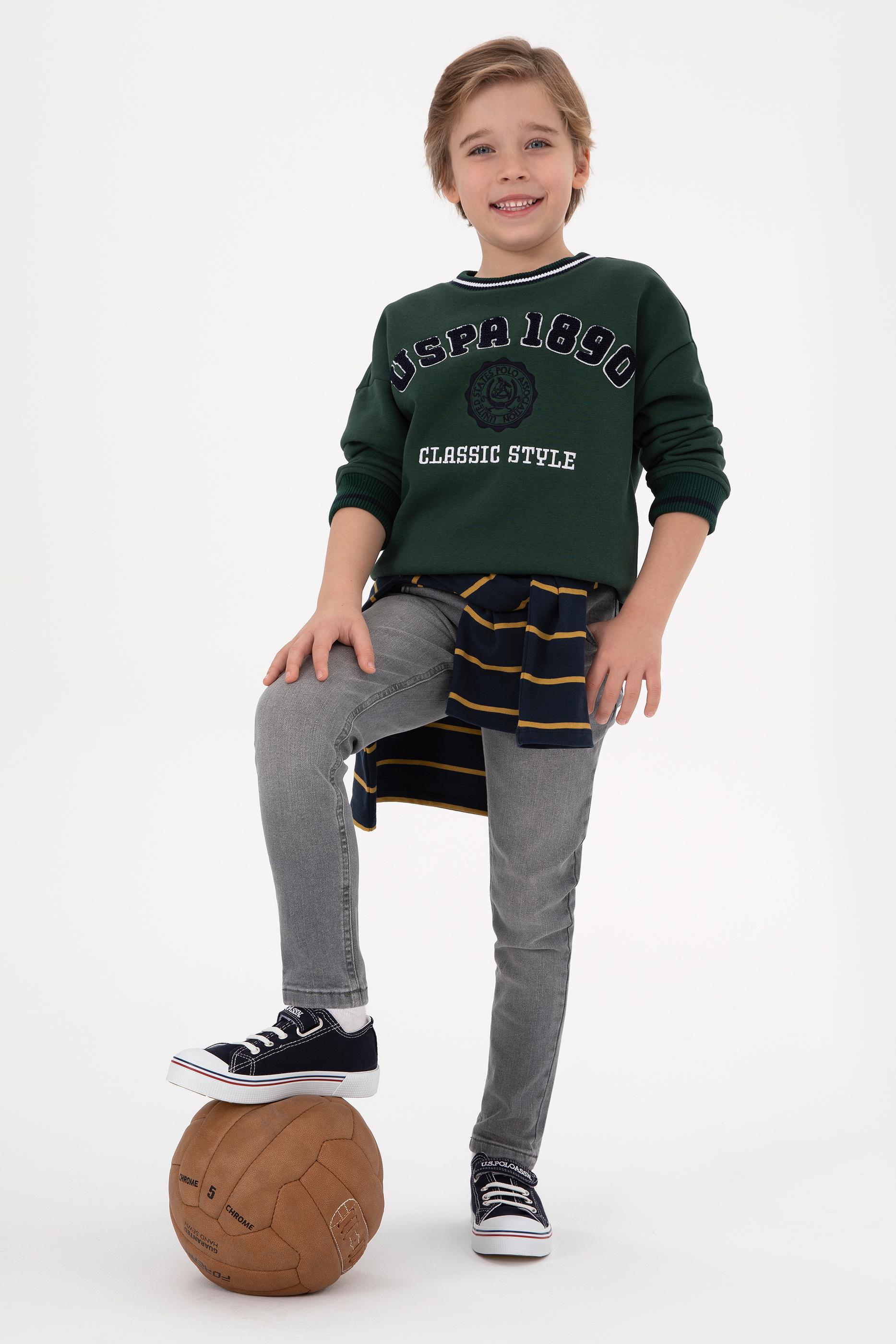 Erkek Çocuk Koyu Yeşil Bisiklet Yaka Şardonlu Sweatshirt