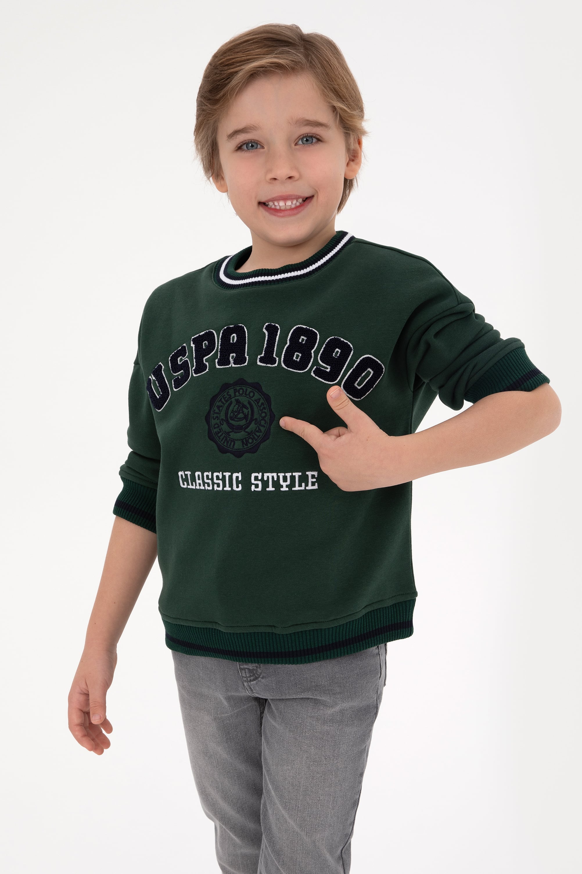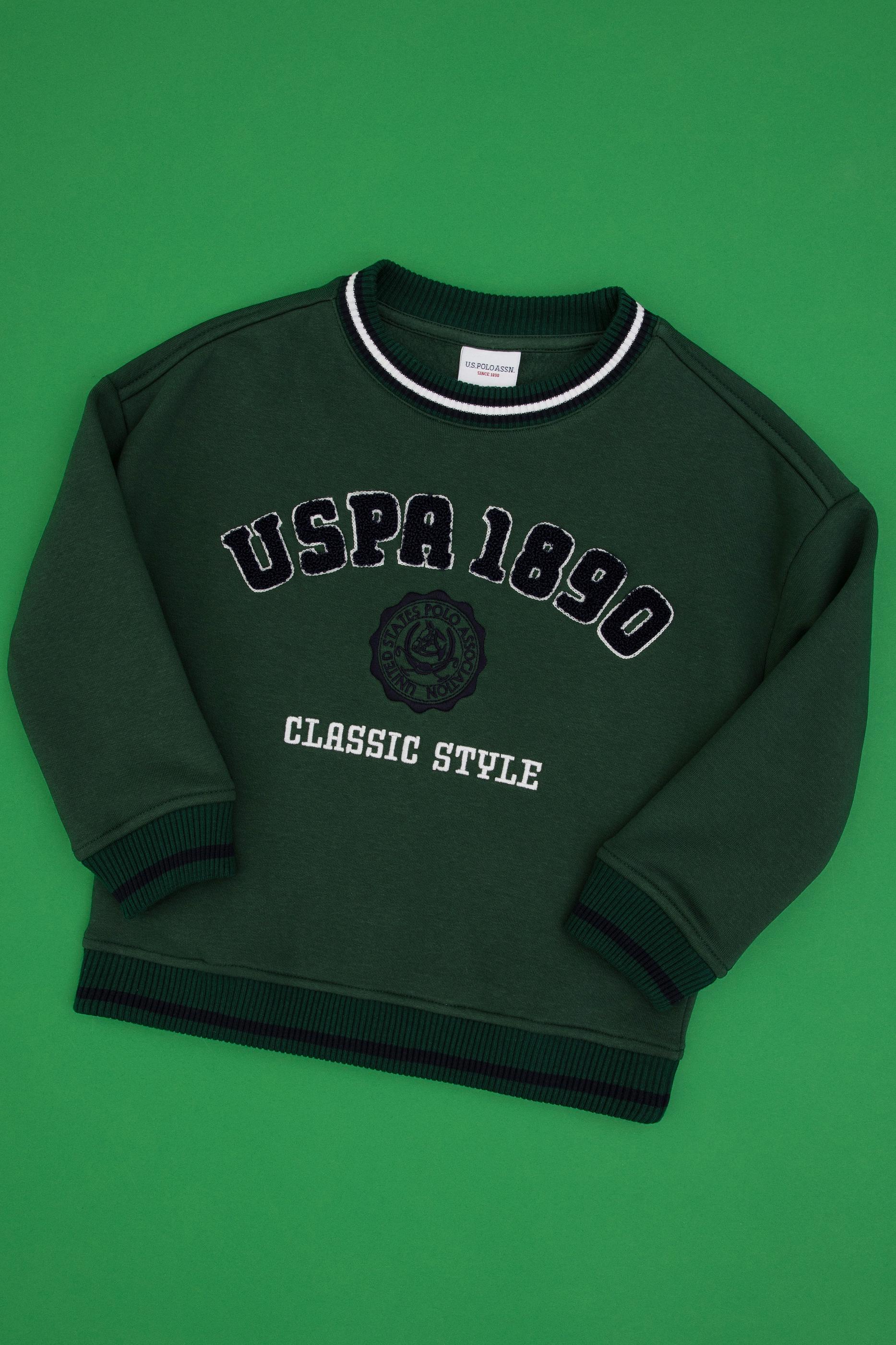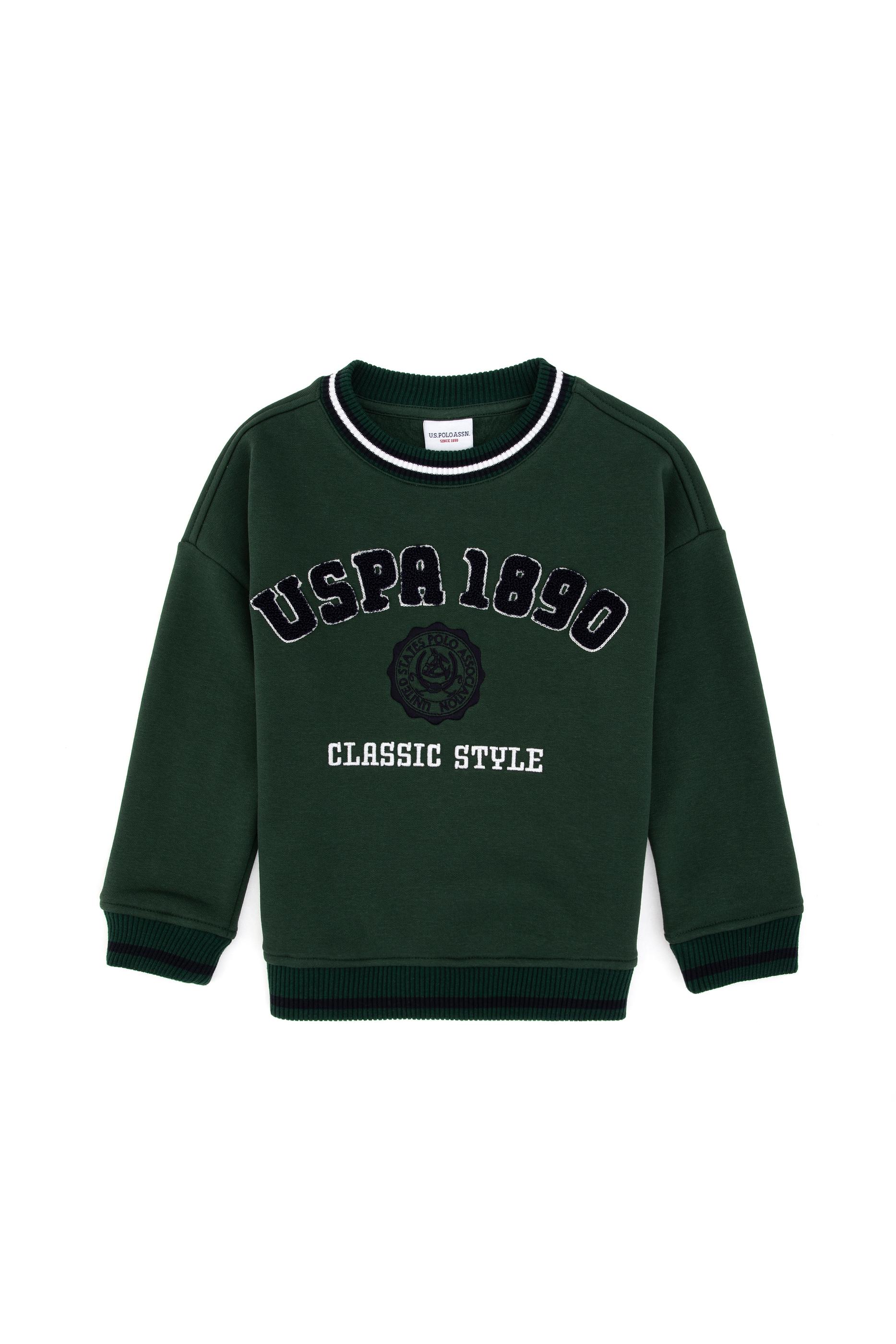 - Erkek Çocuk Koyu Yeşil Bisiklet Yaka Şardonlu Sweatshirt
