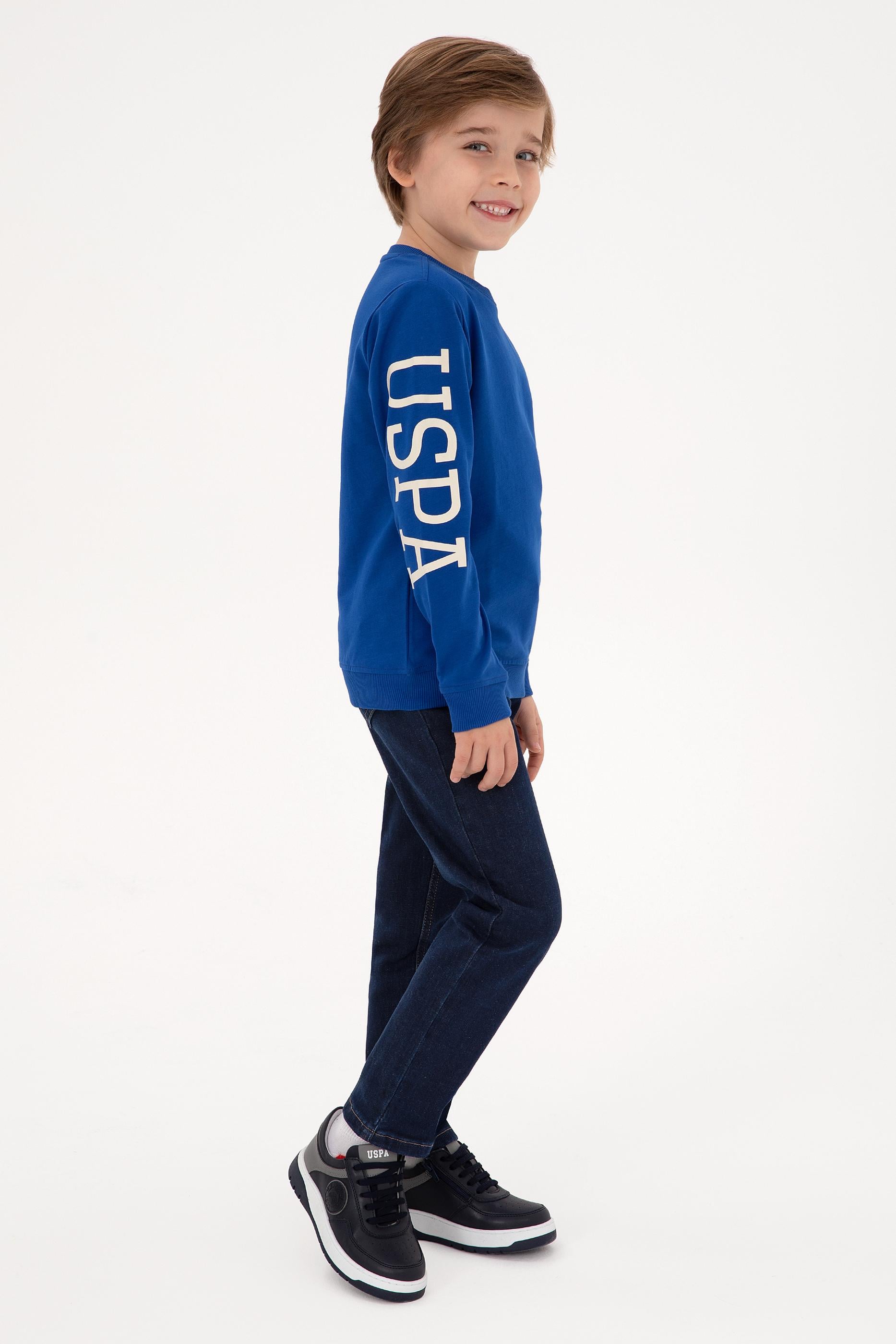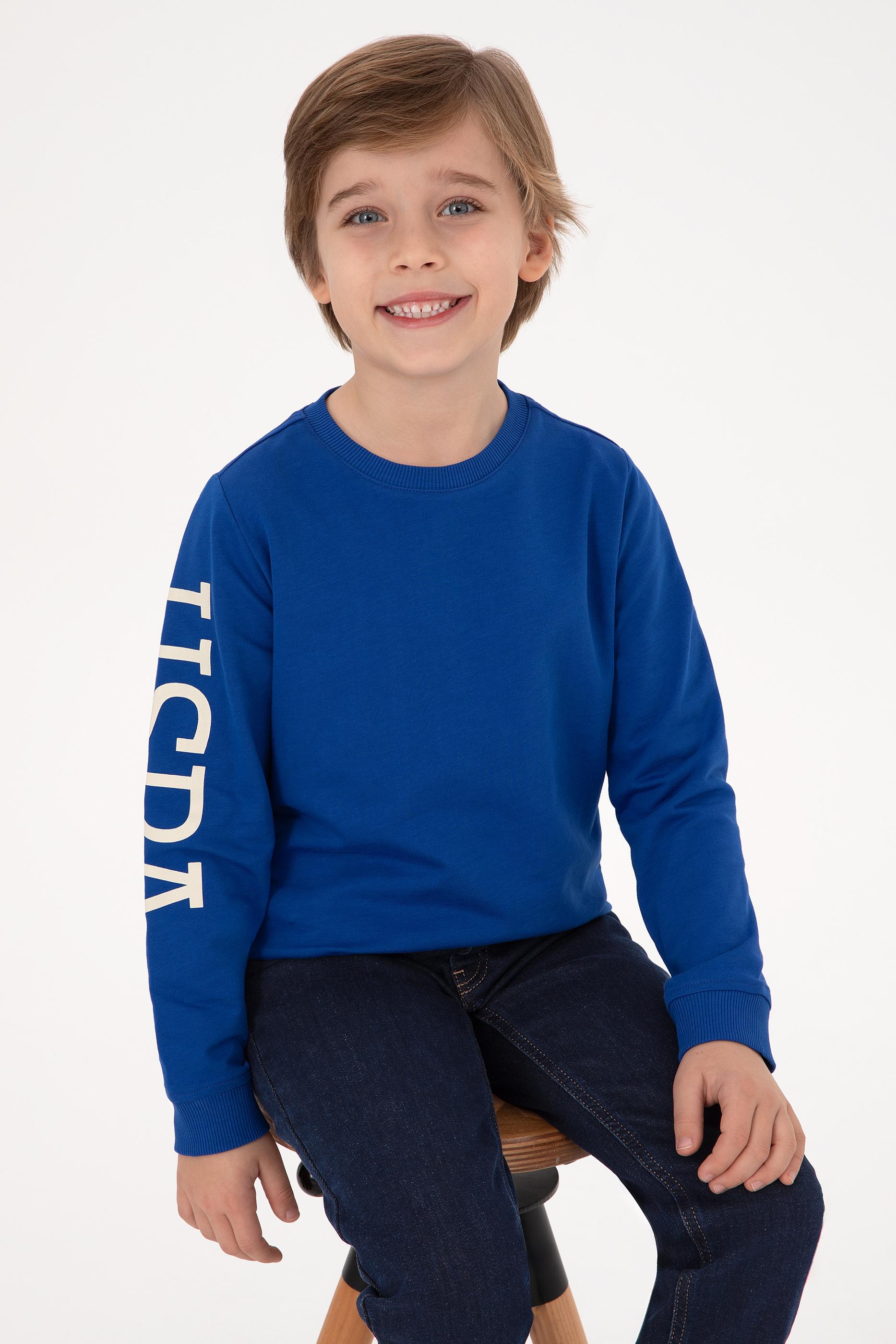 Erkek Çocuk Mavi Basic Bisiklet Yaka Sweatshirt