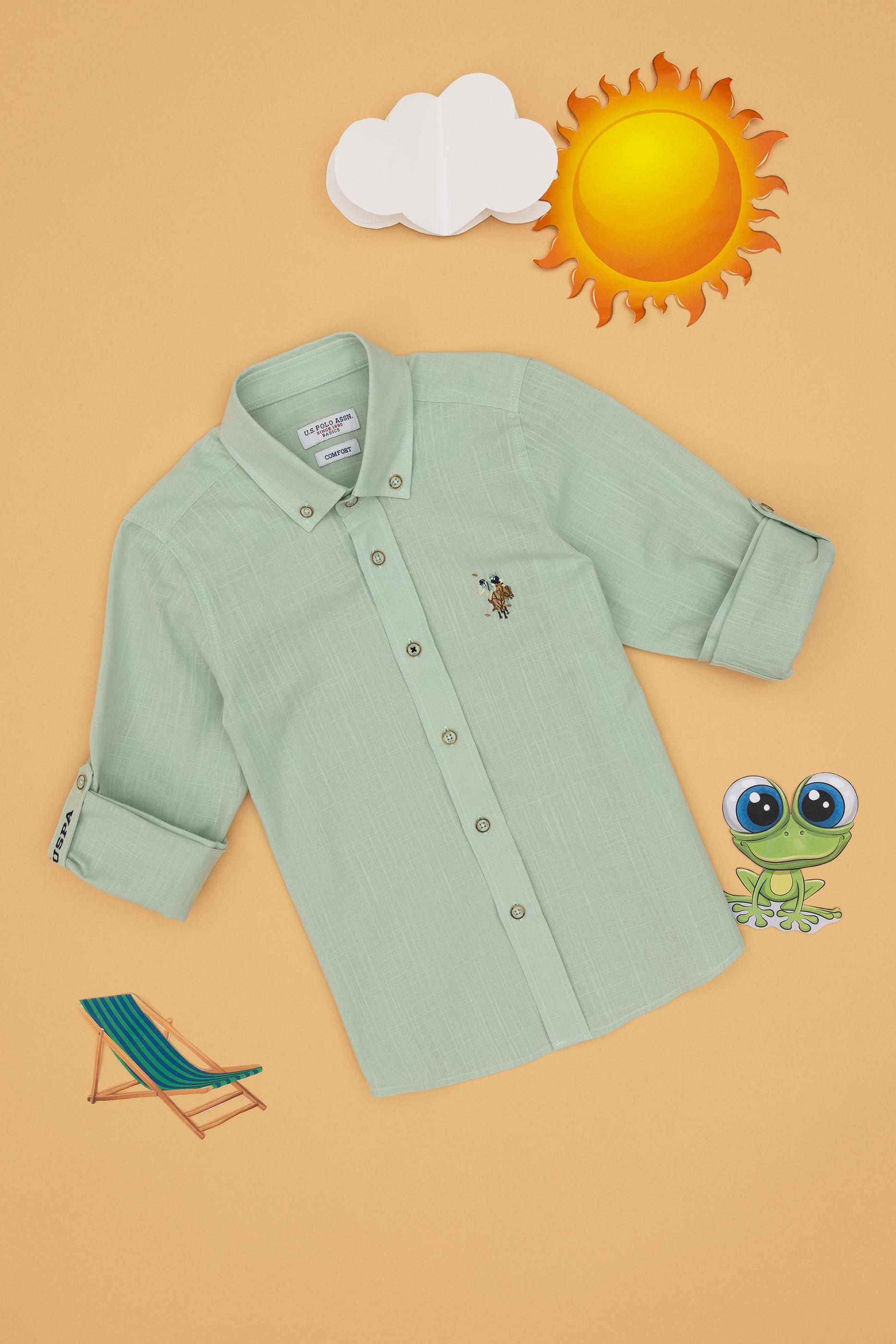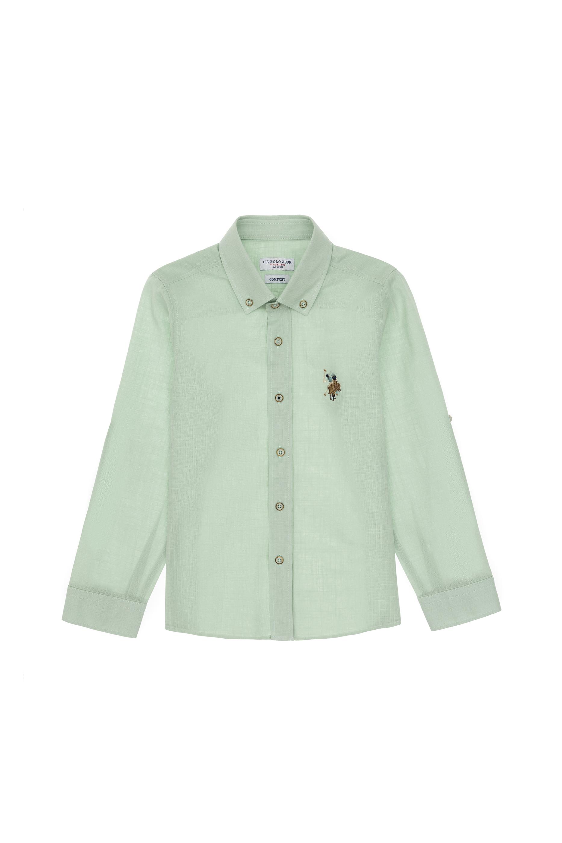 - Erkek Çocuk Su Yeşili Uzun Kollu Basic Gömlek